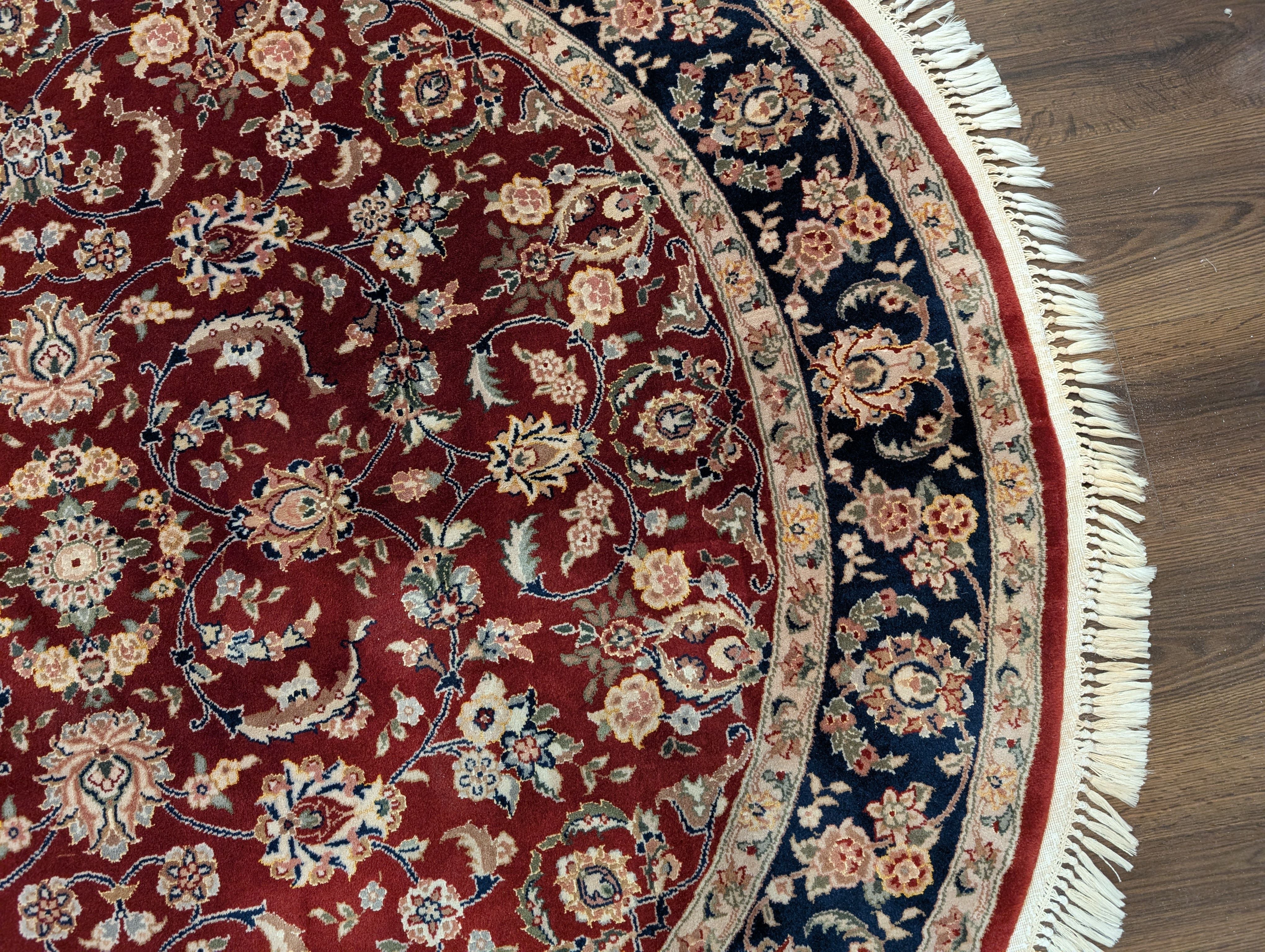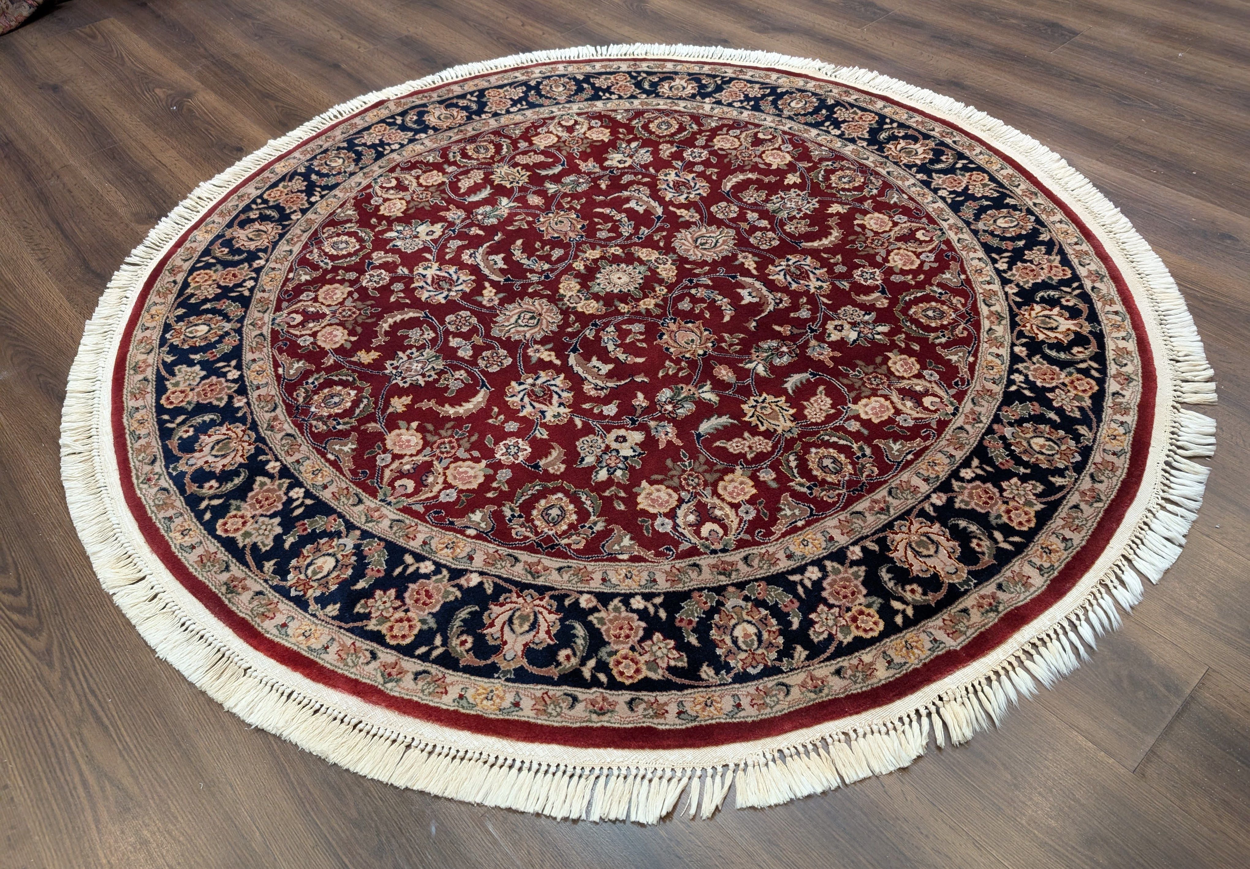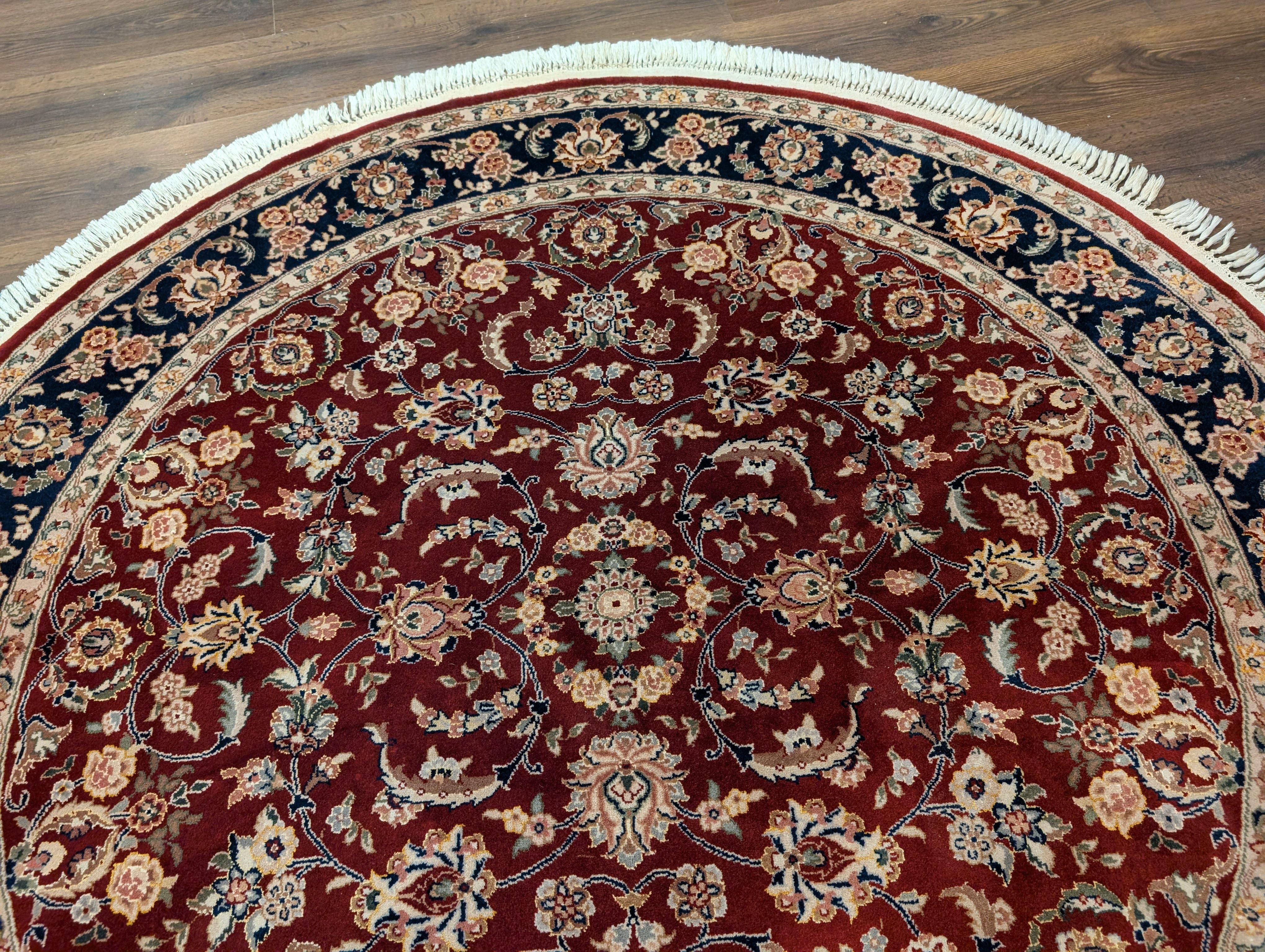 Round Indo Persian Rug 6x6, Fine 210 KPSI, Hand Knotted, Wool