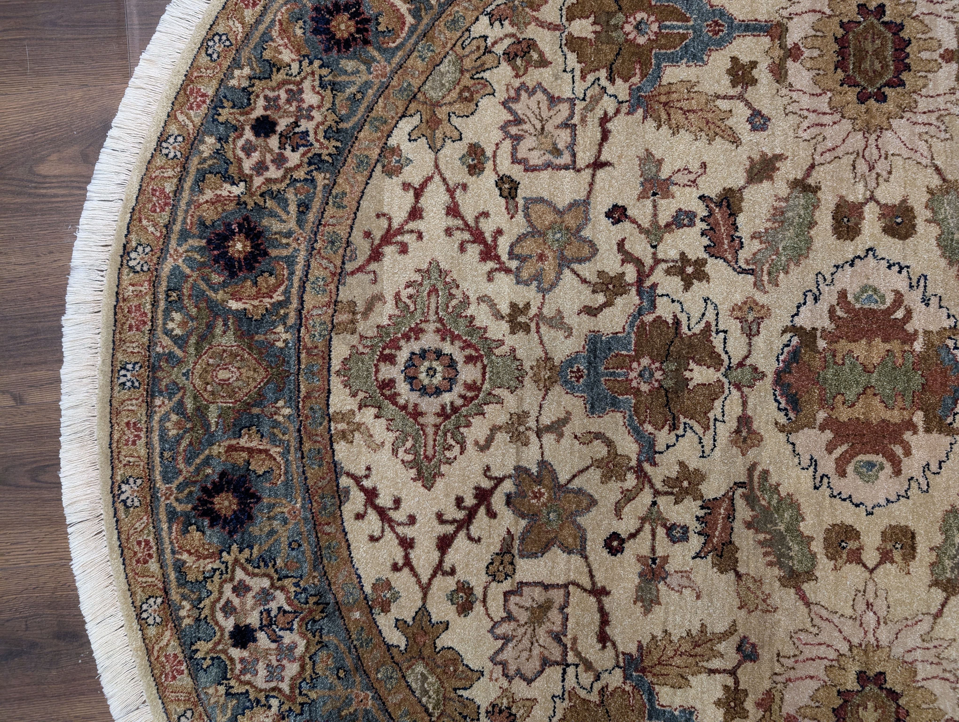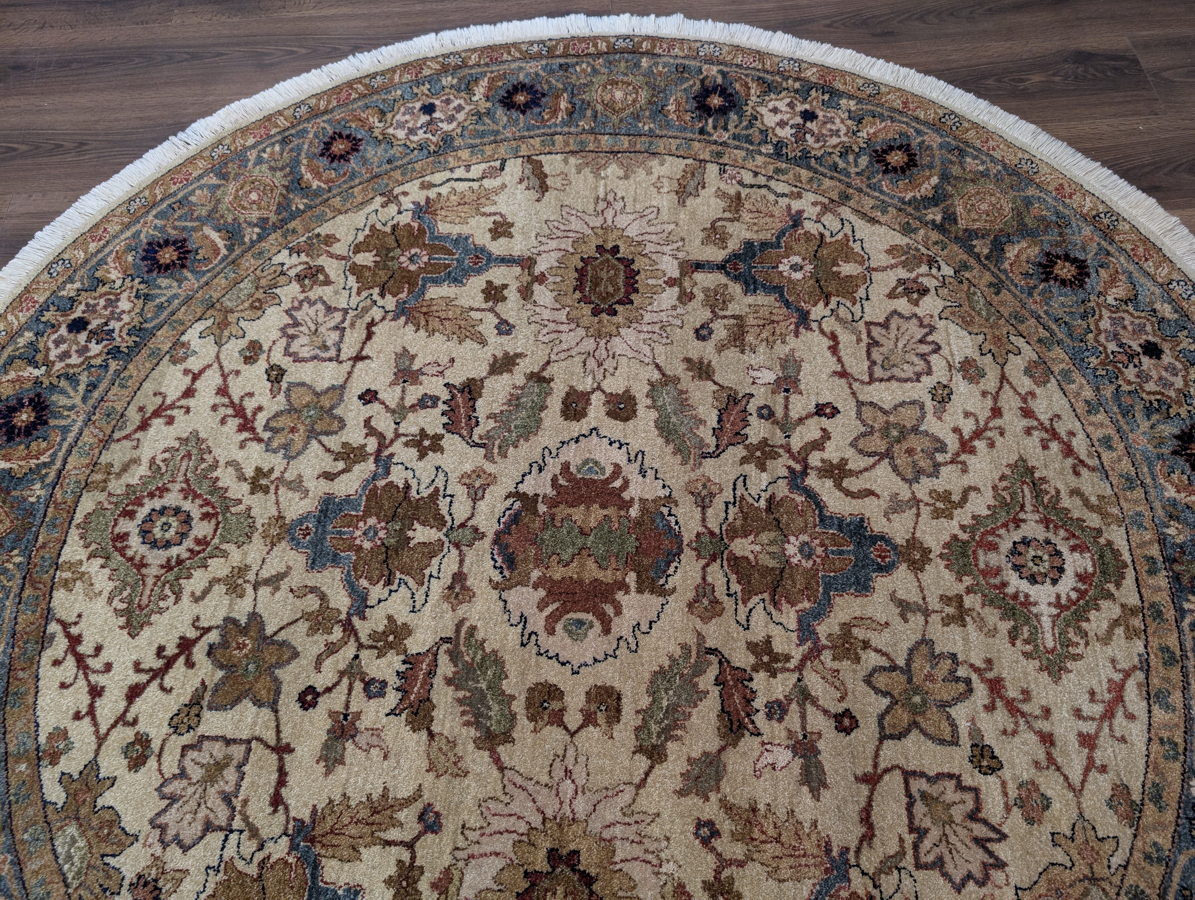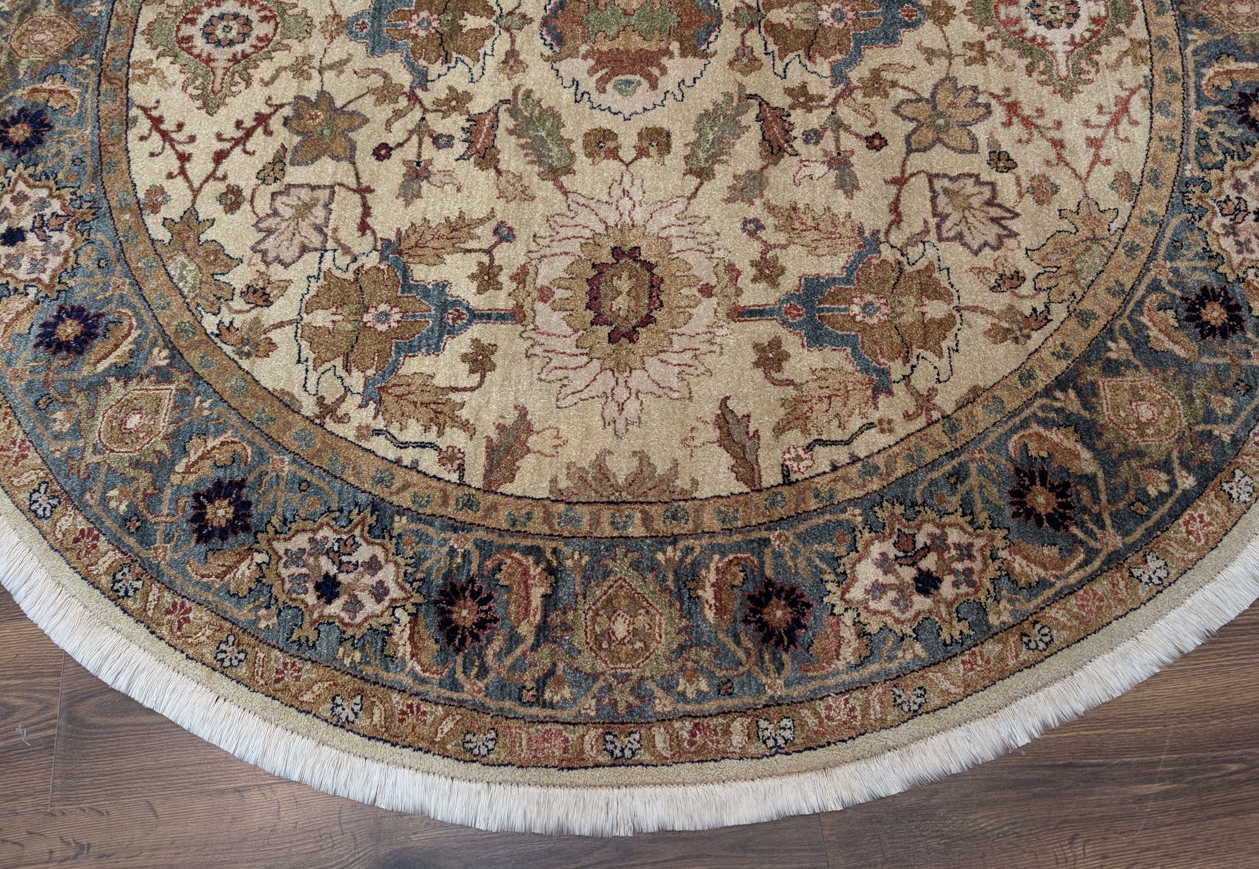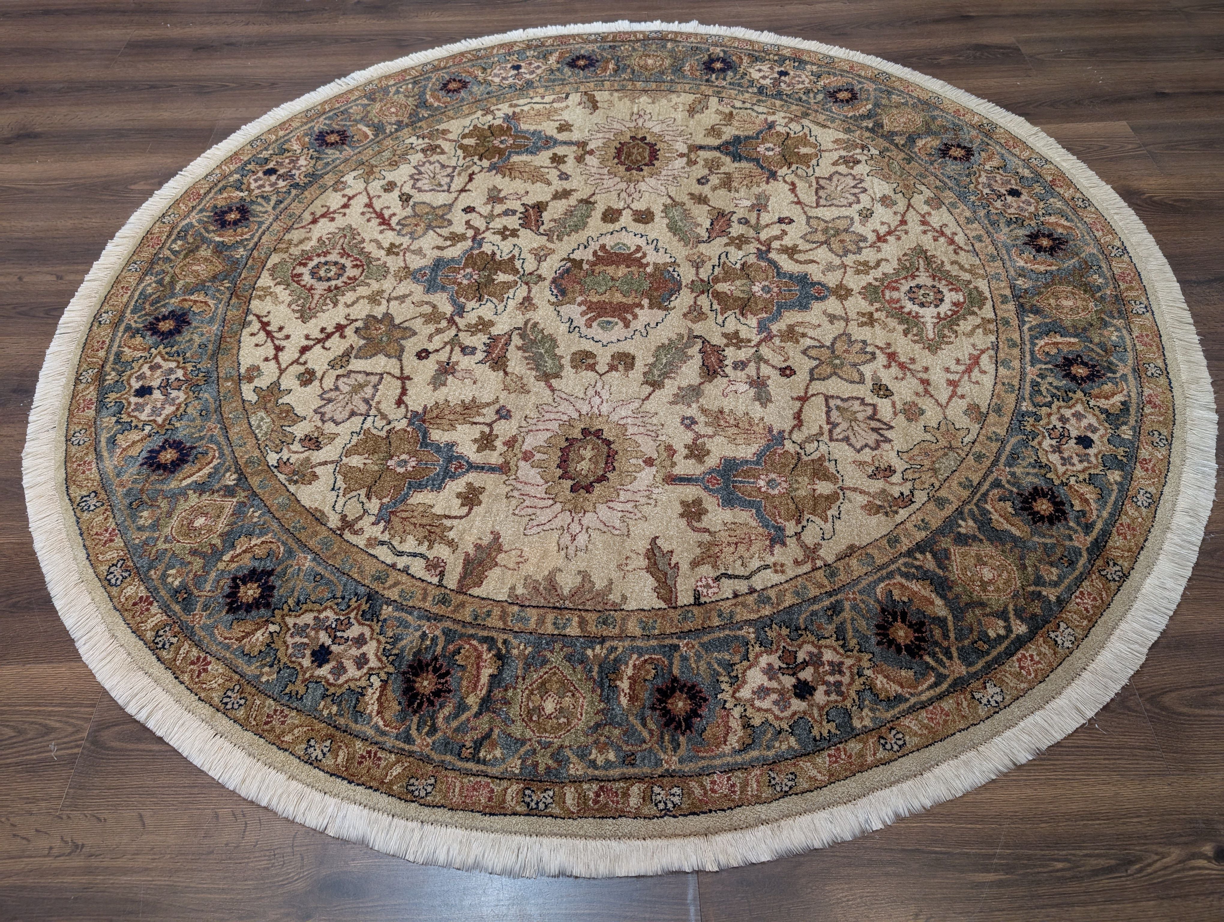 Round Indo Persian Rug 6x6, Wool Hand Knotted