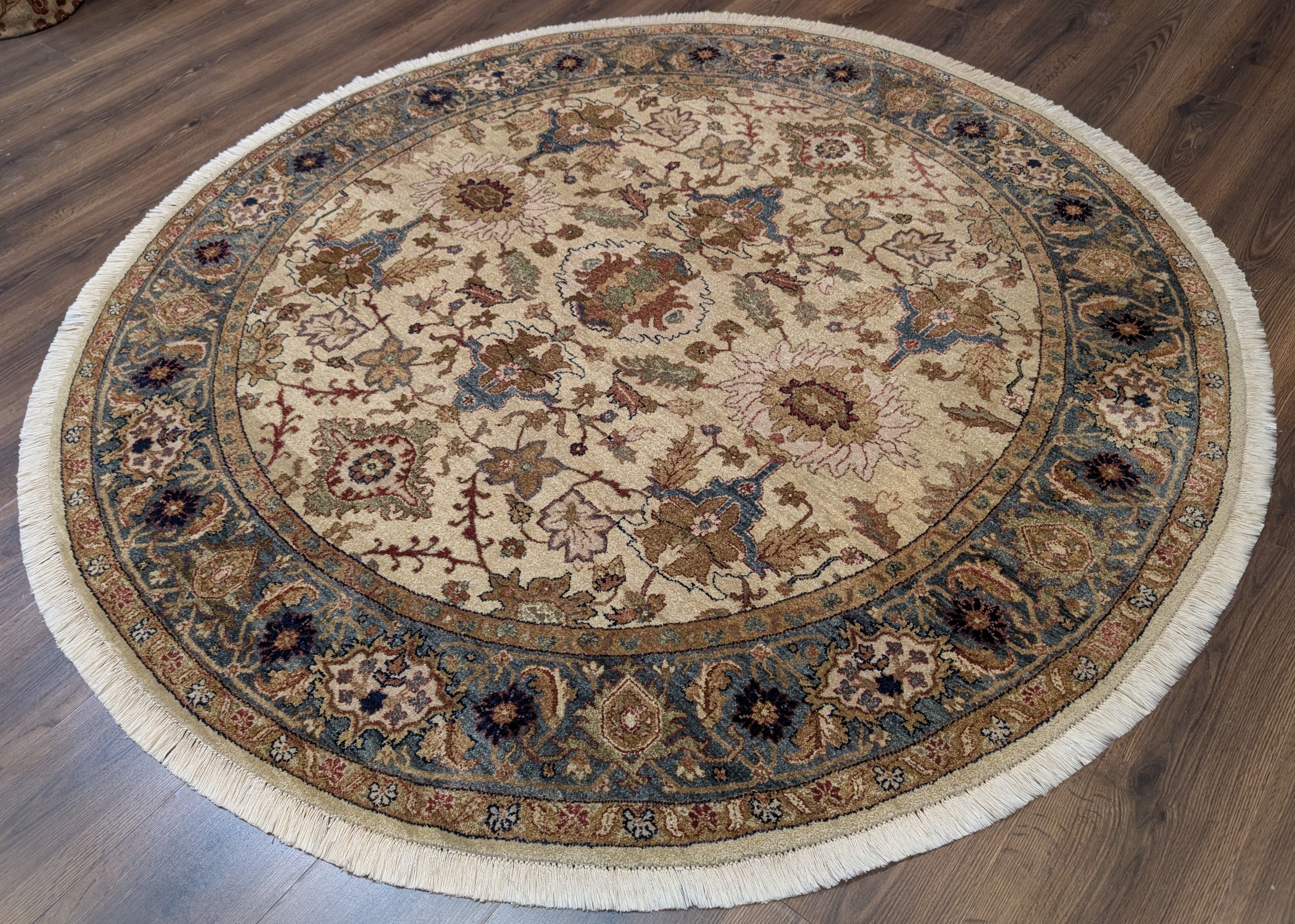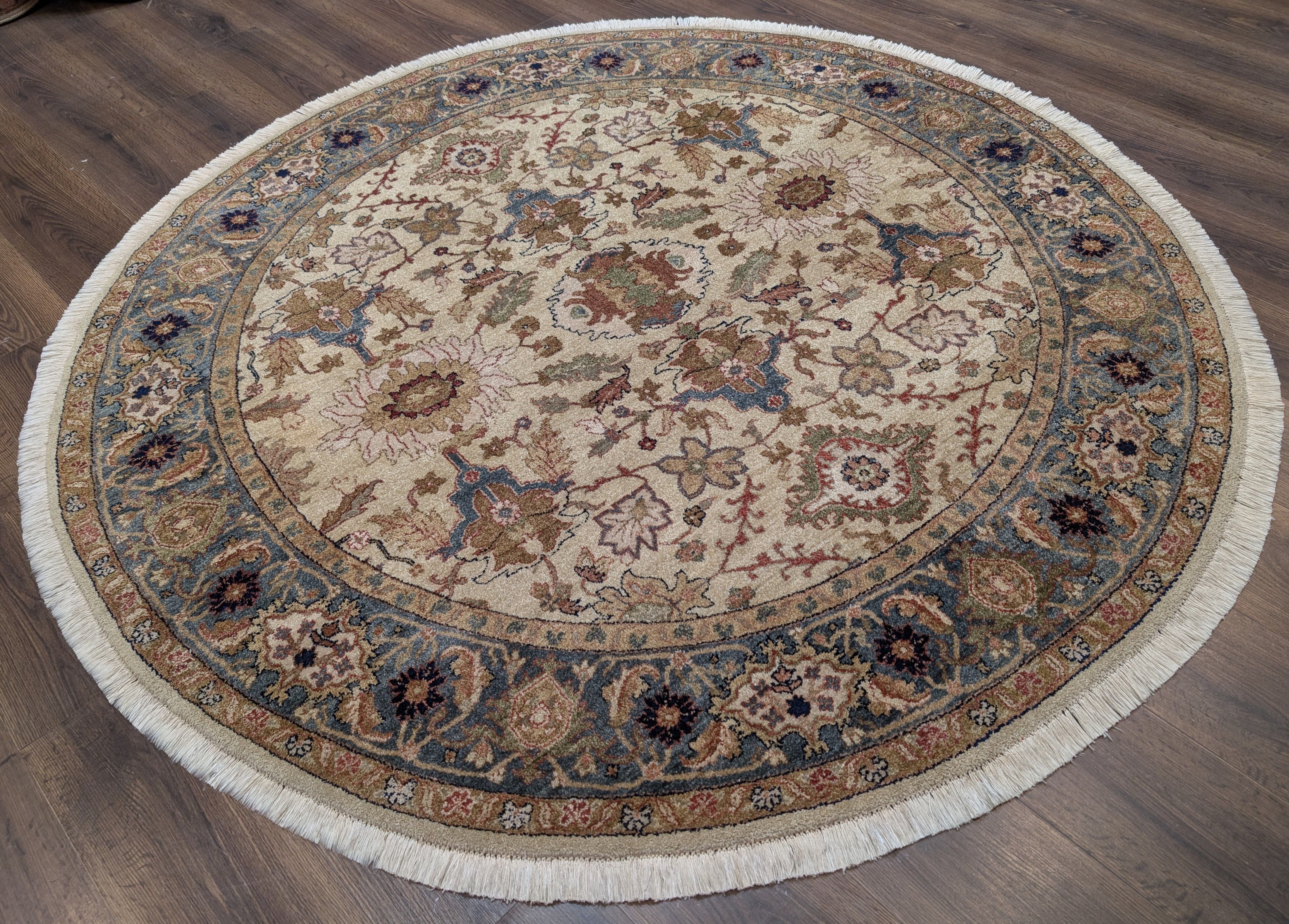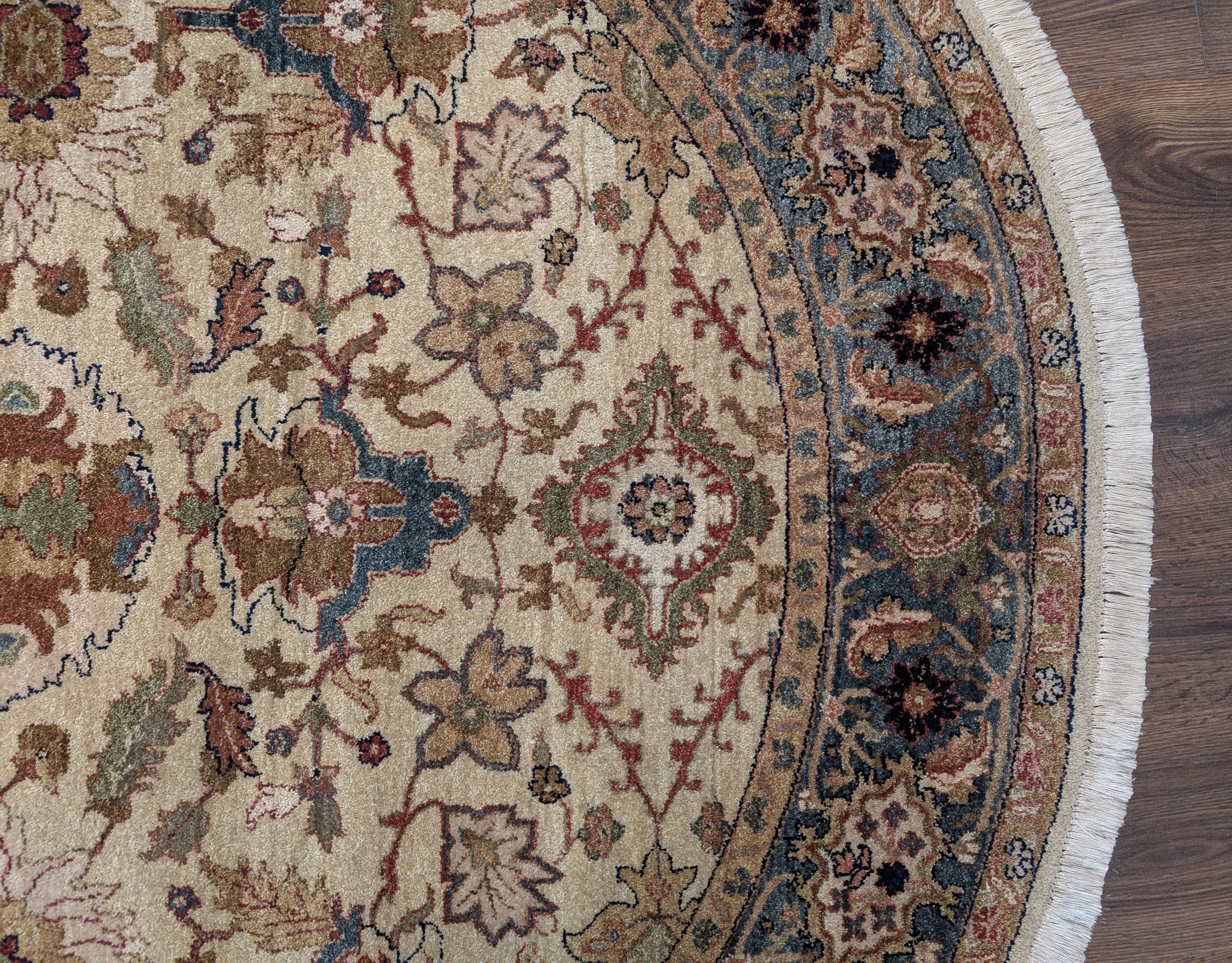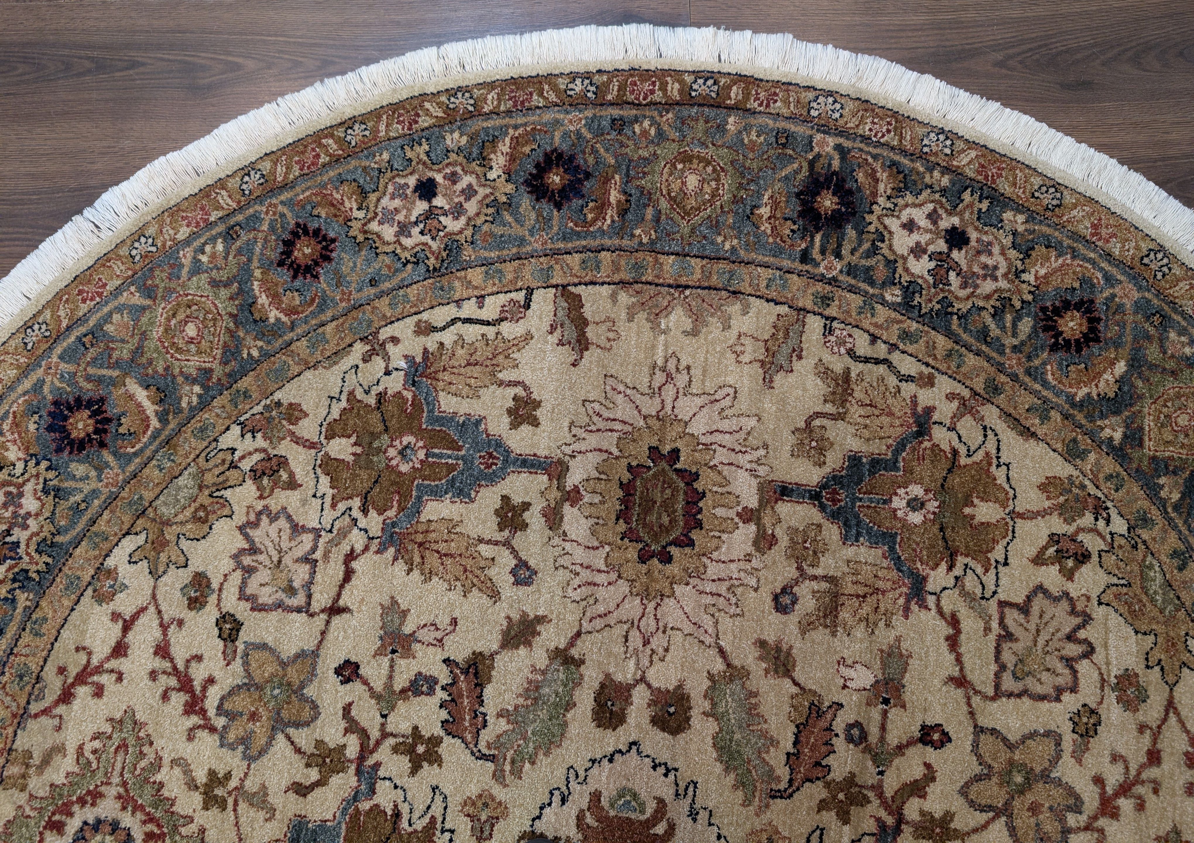Round Indo Persian Rug 6x6, Wool Hand Knotted