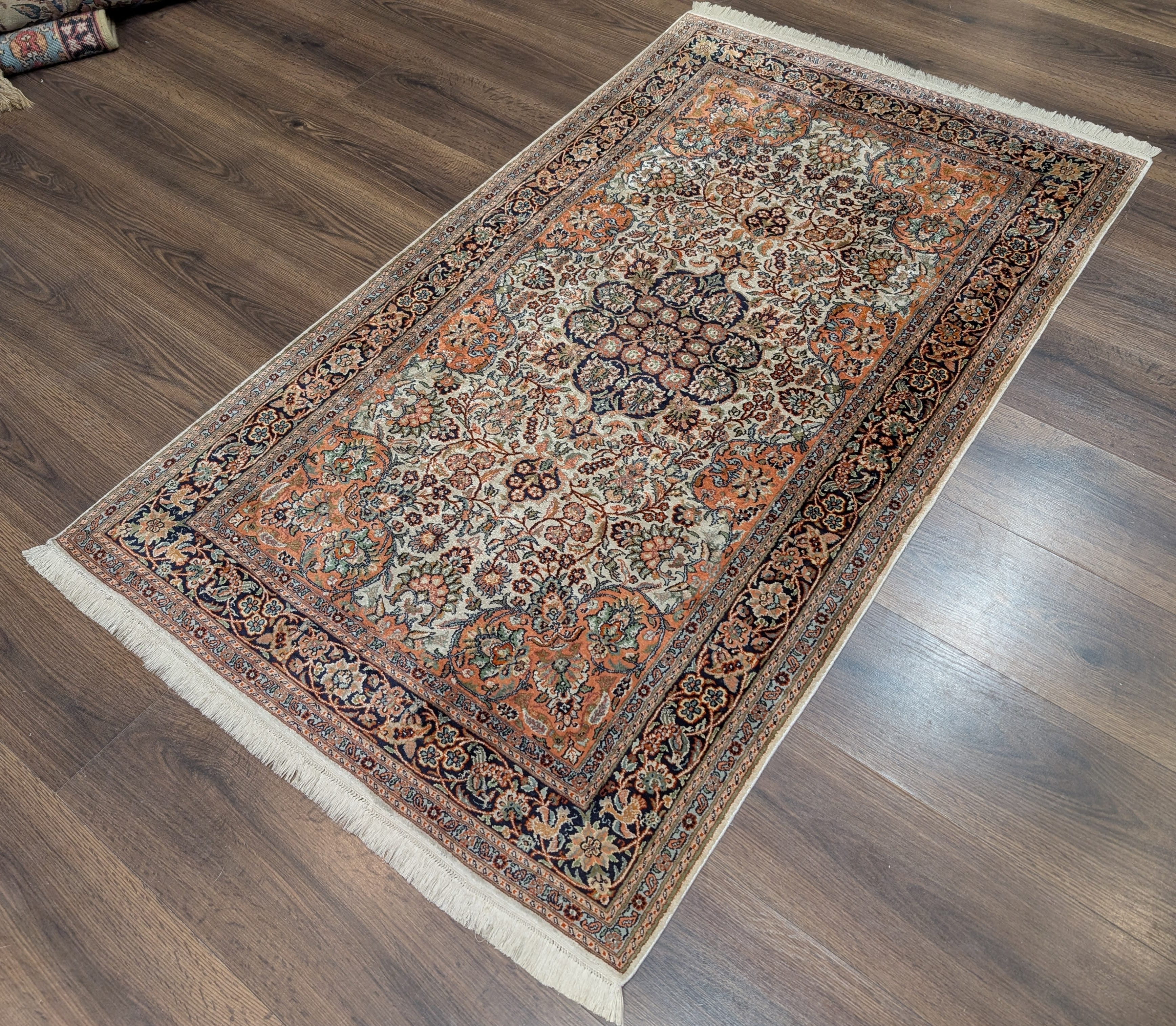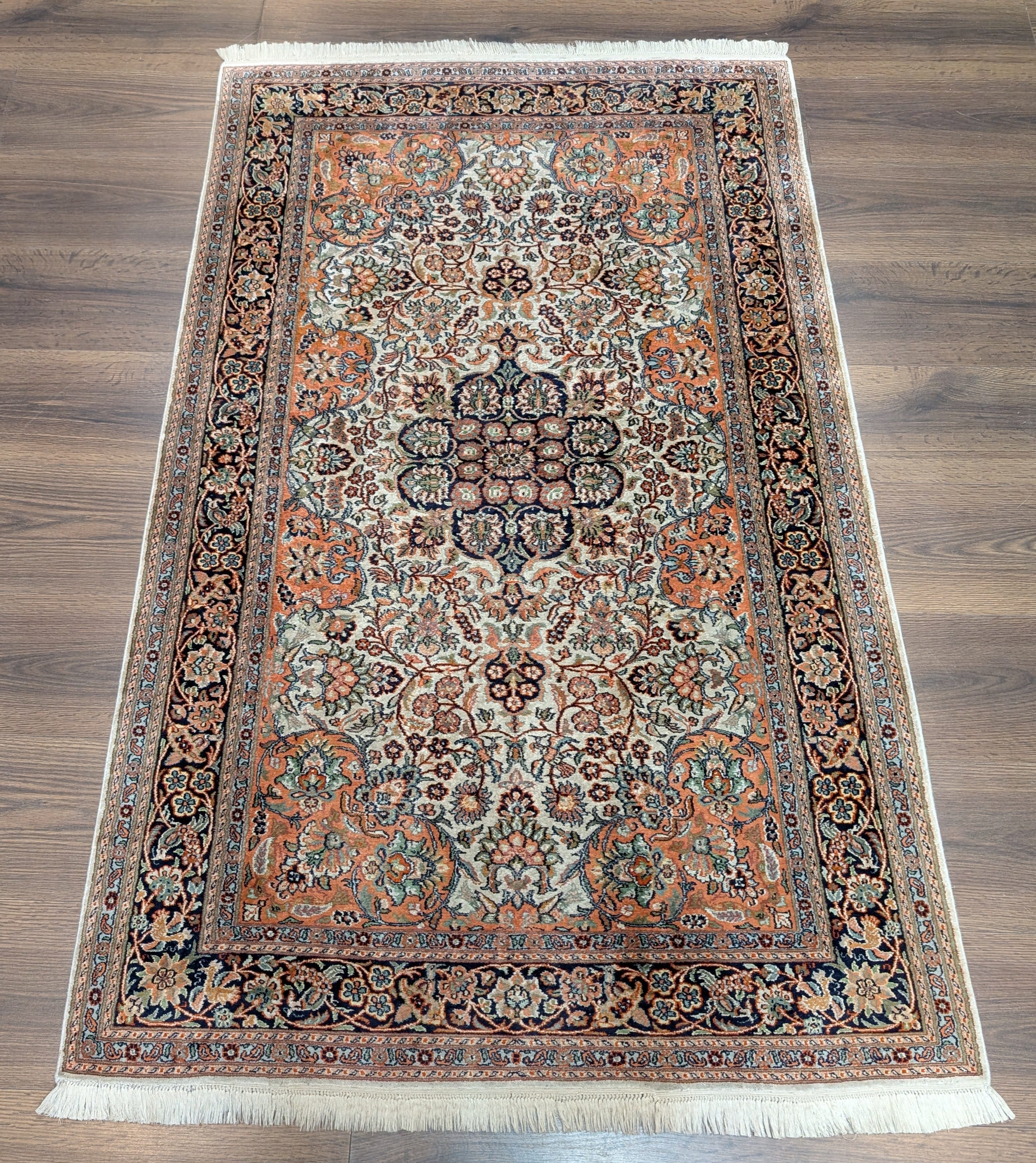 Silk Indian Kashmiri Rug 3x5, Bird Pictorials, Super Fine 650 KPSI