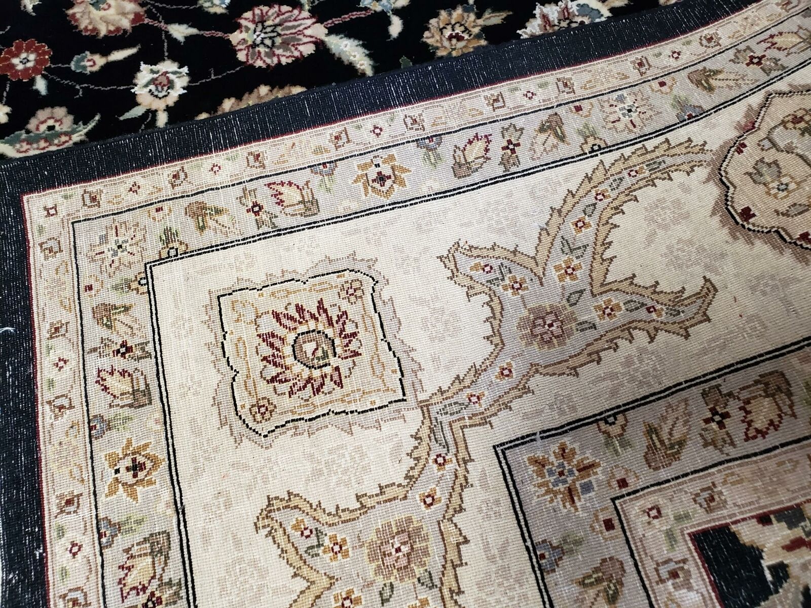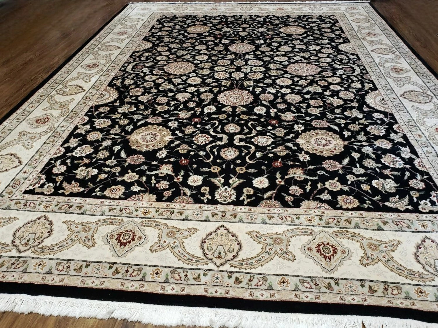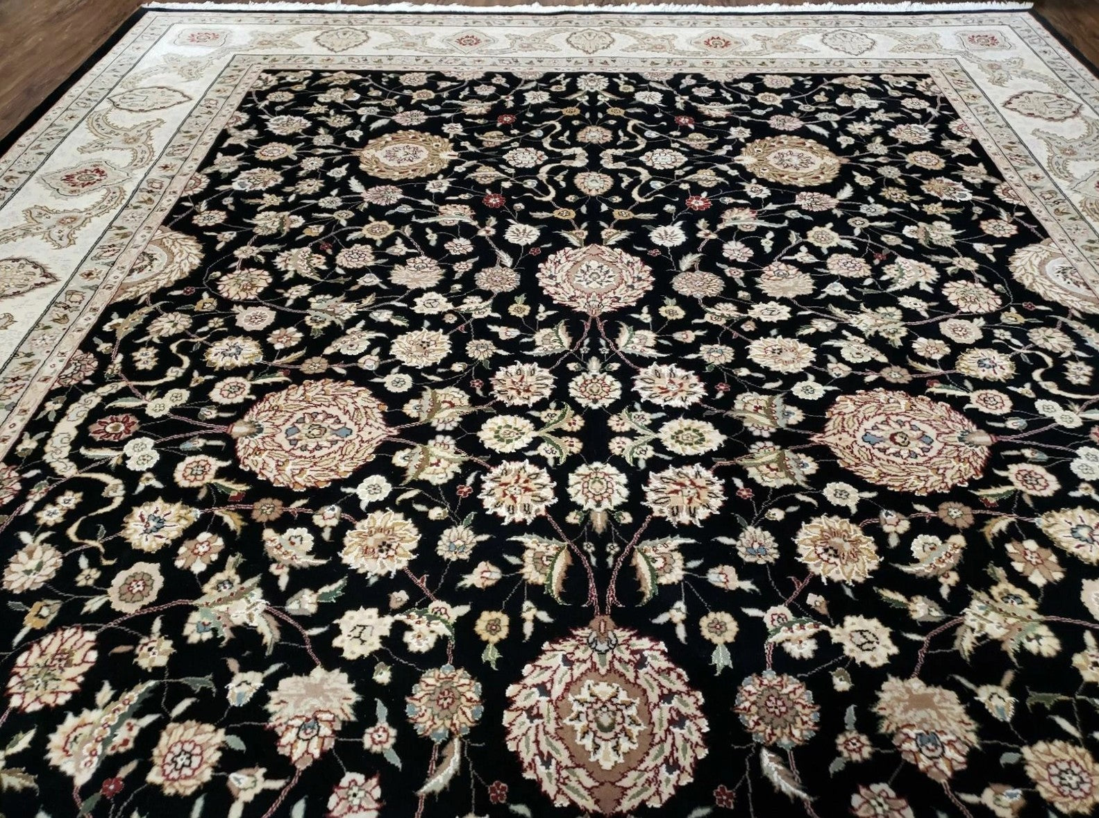 Sino Persian Rug 8.5 x 11.6, Black and Ivory, Allover Pattern, Wool & Silk