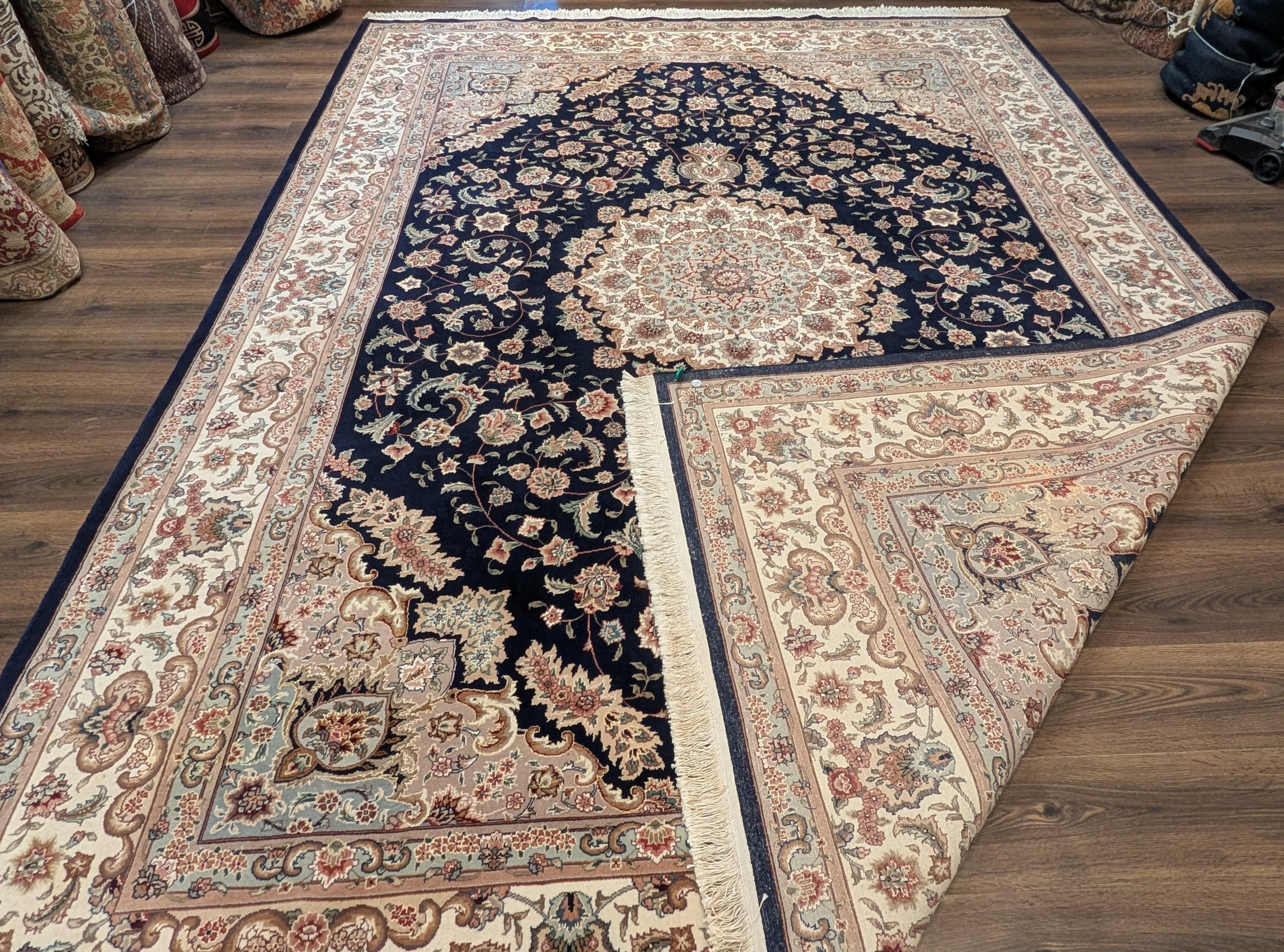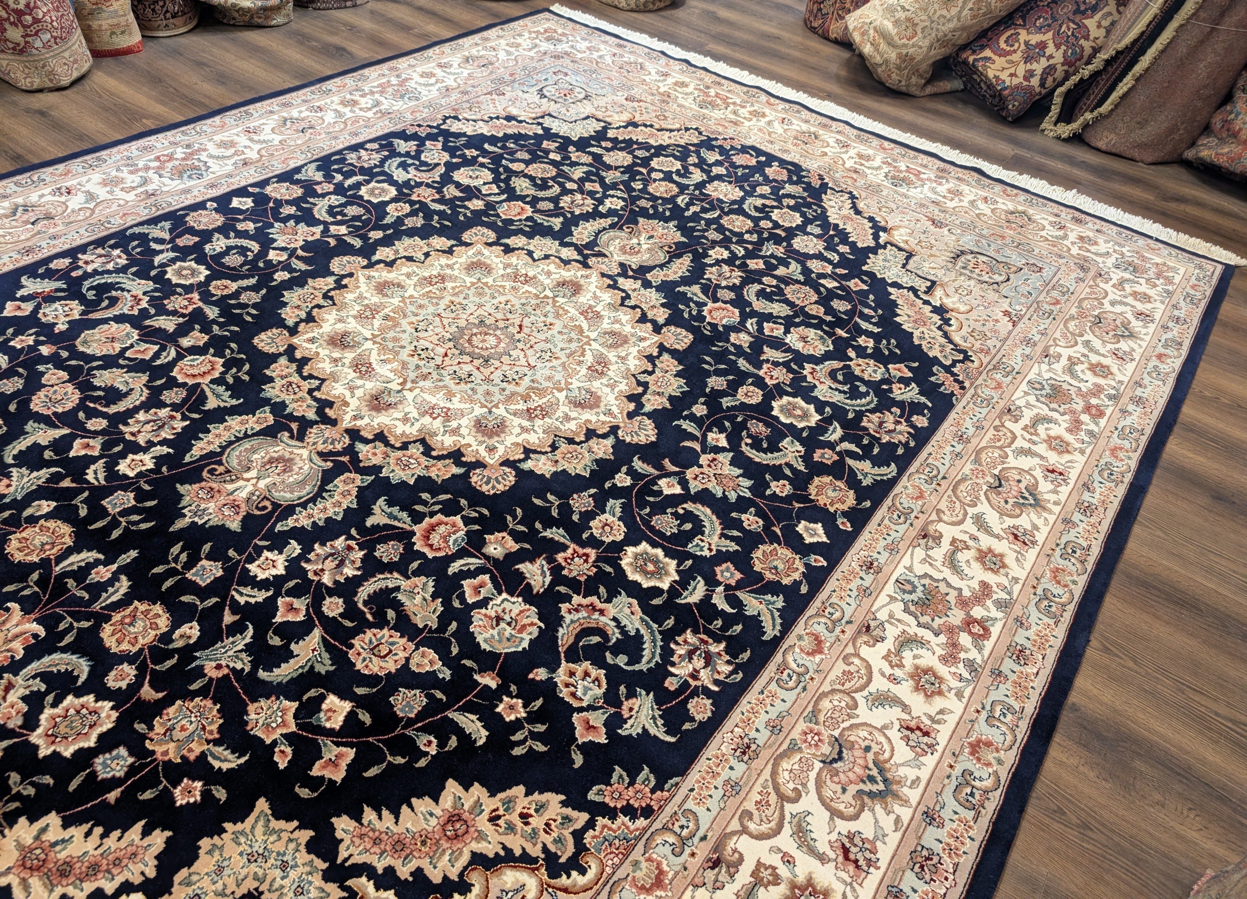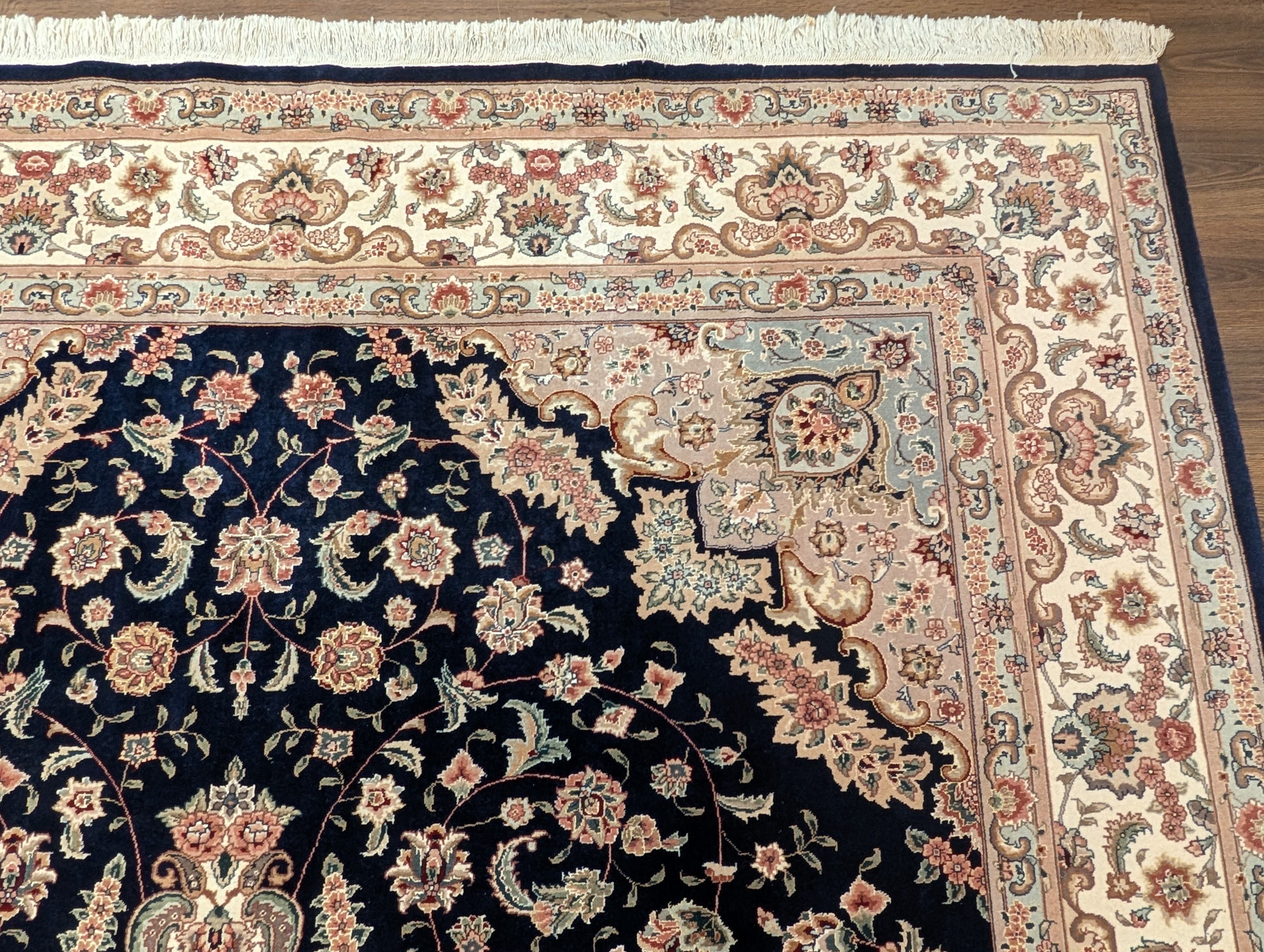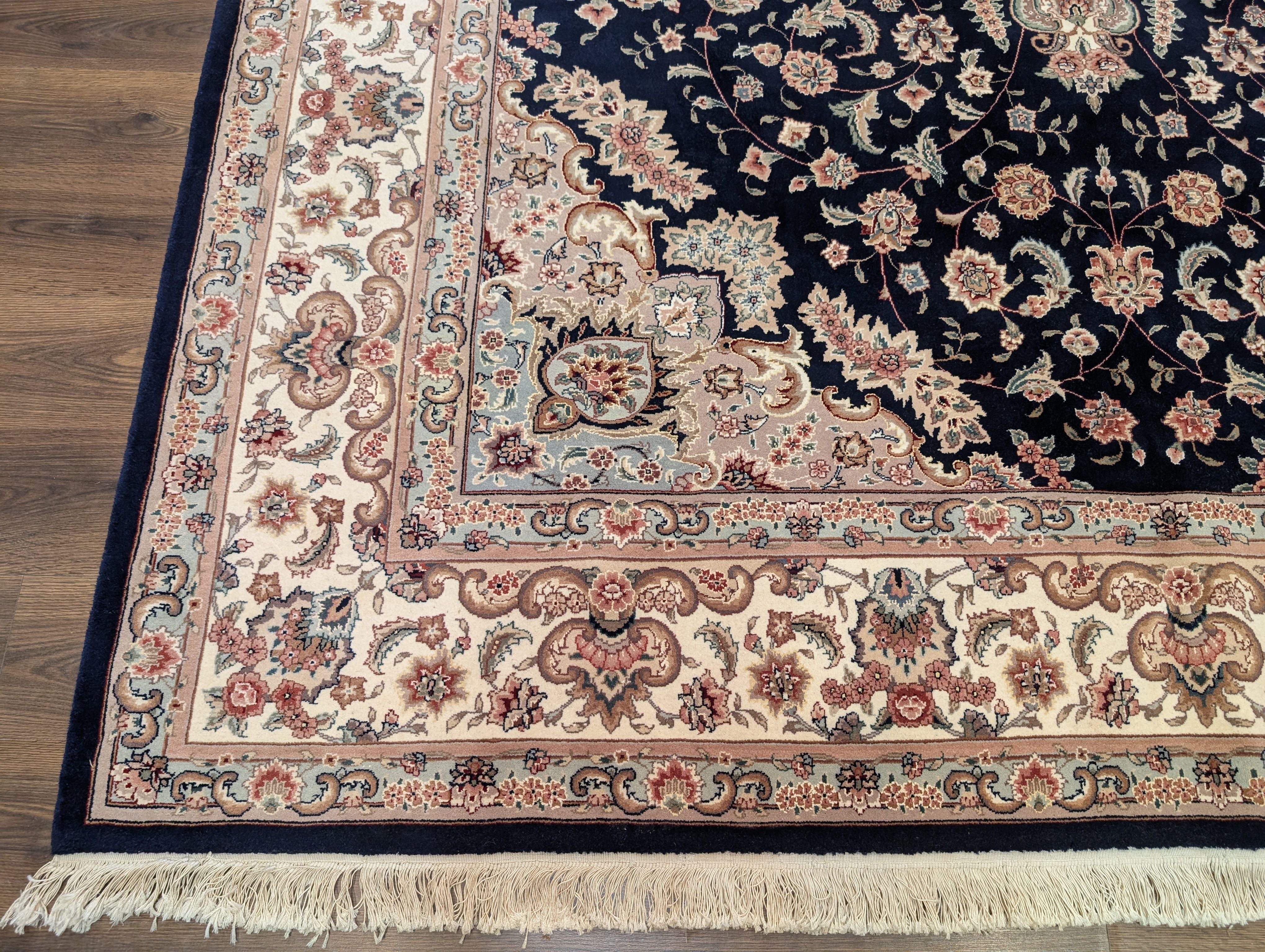 Sino Persian Rug 9x12, Navy Blue, Fine, Floral Medallion, Handmade