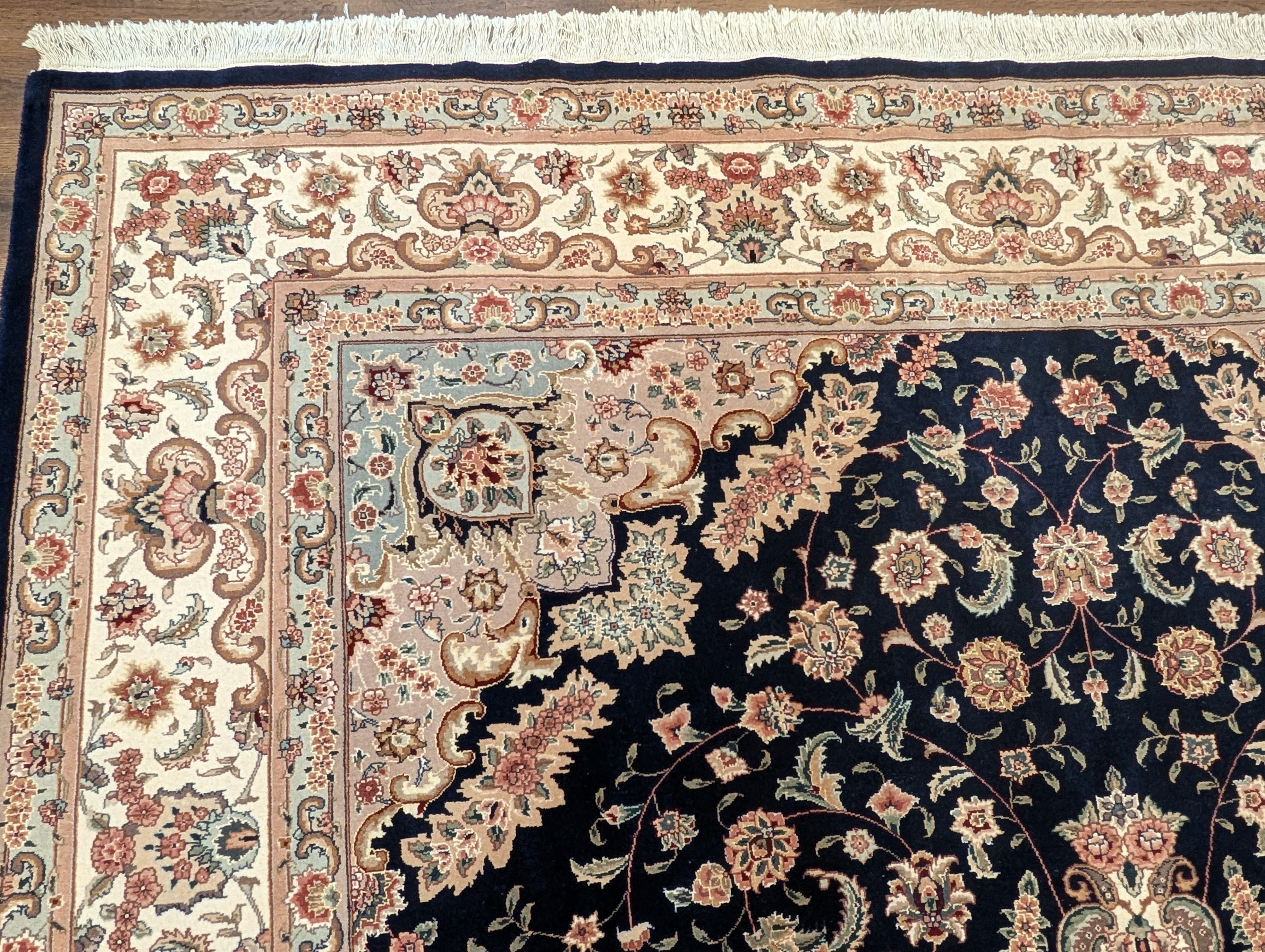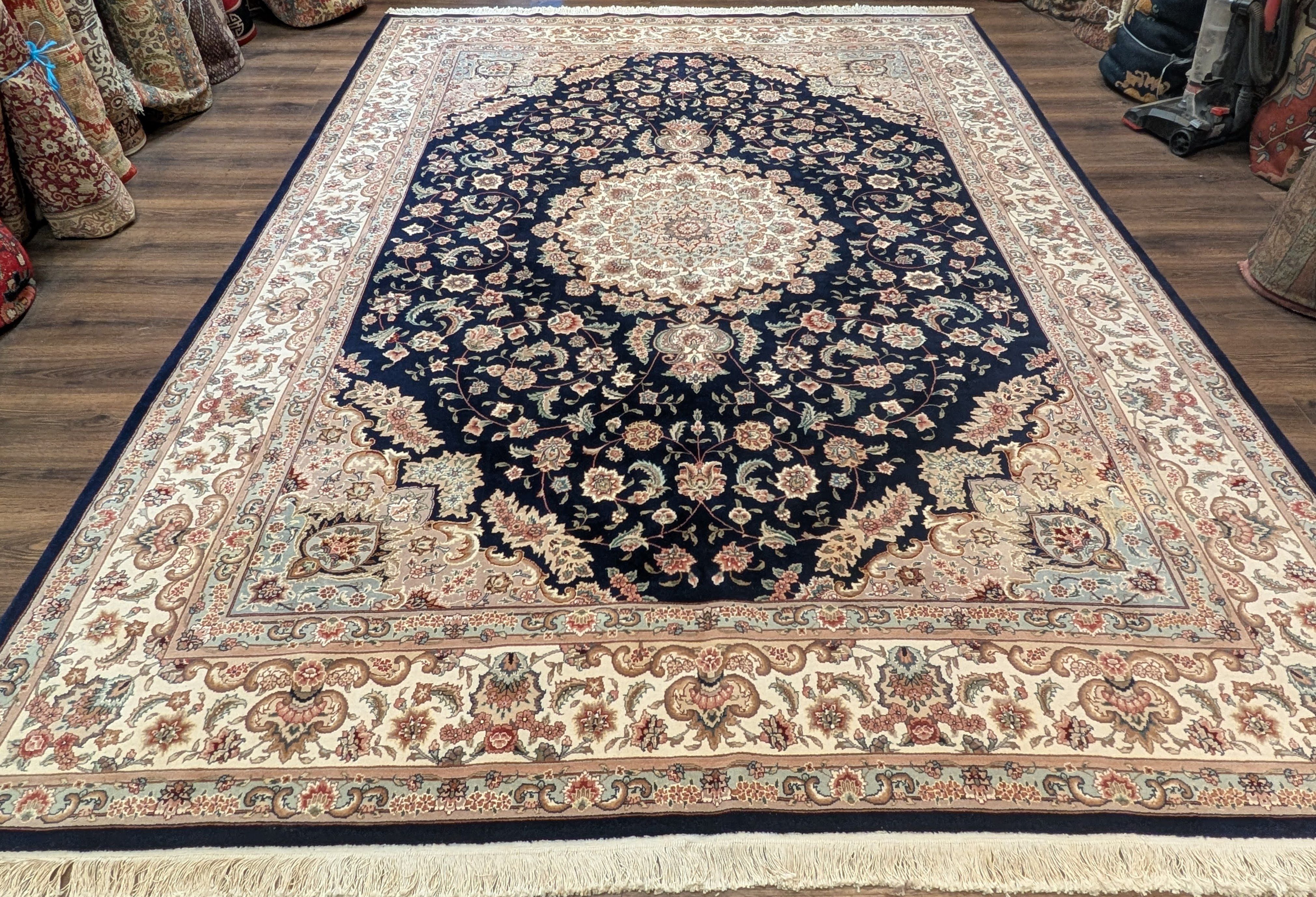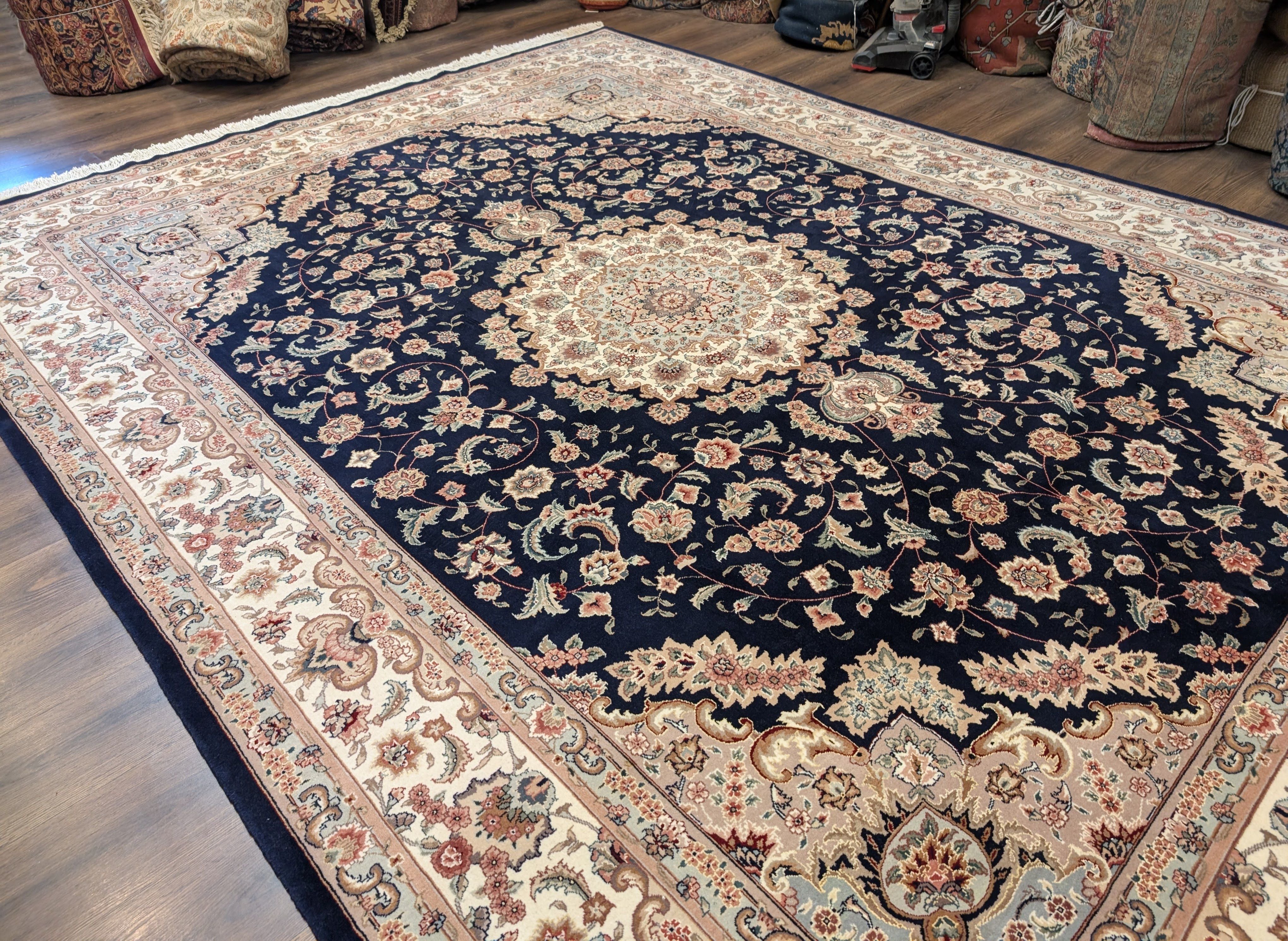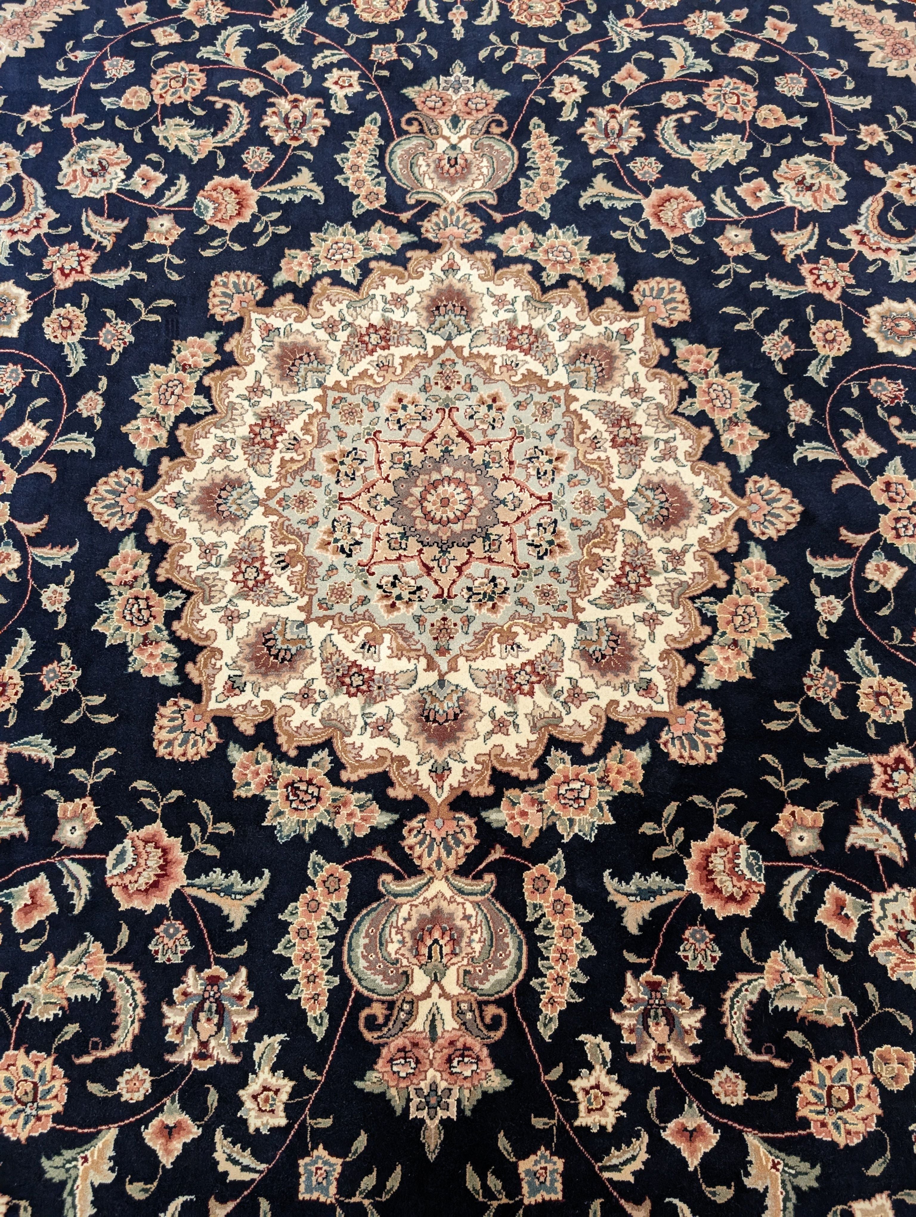 Sino Persian Rug 9x12, Navy Blue, Fine, Floral Medallion, Handmade