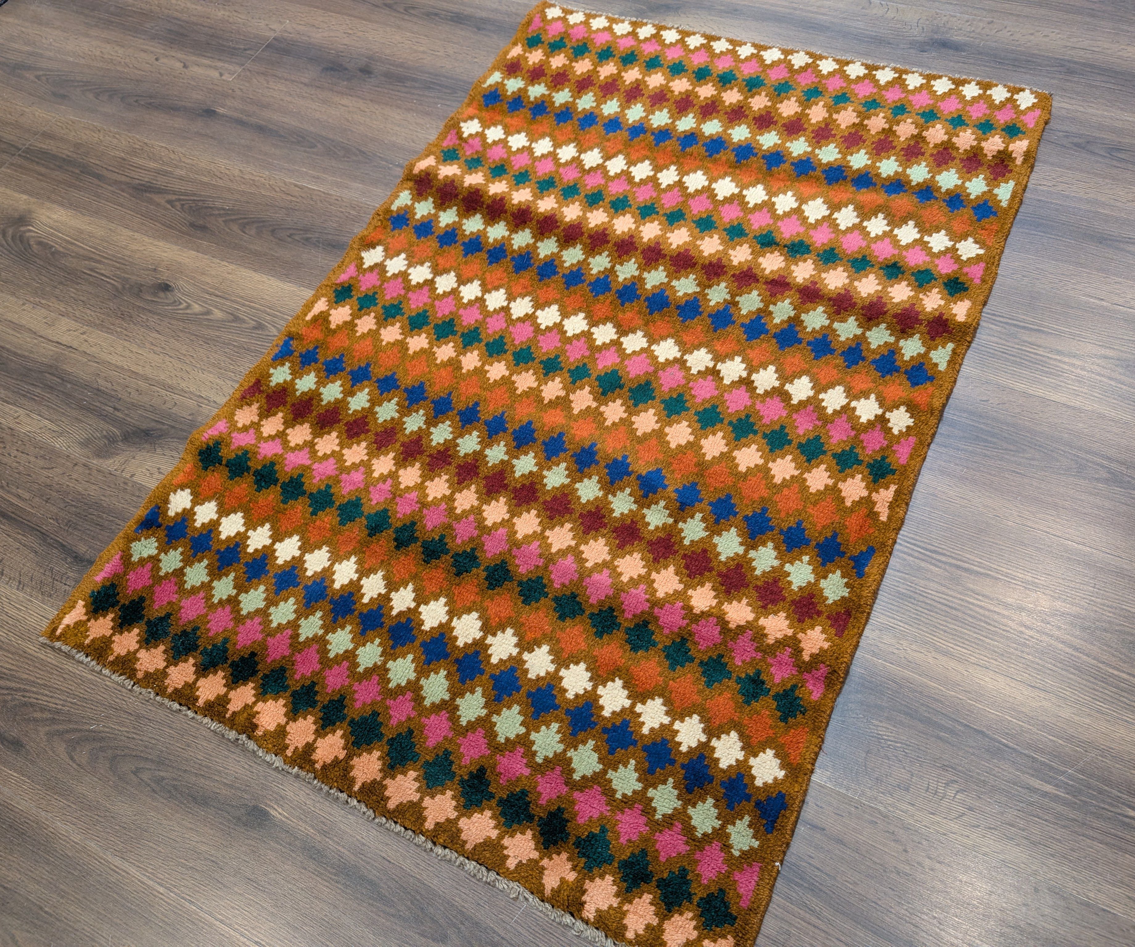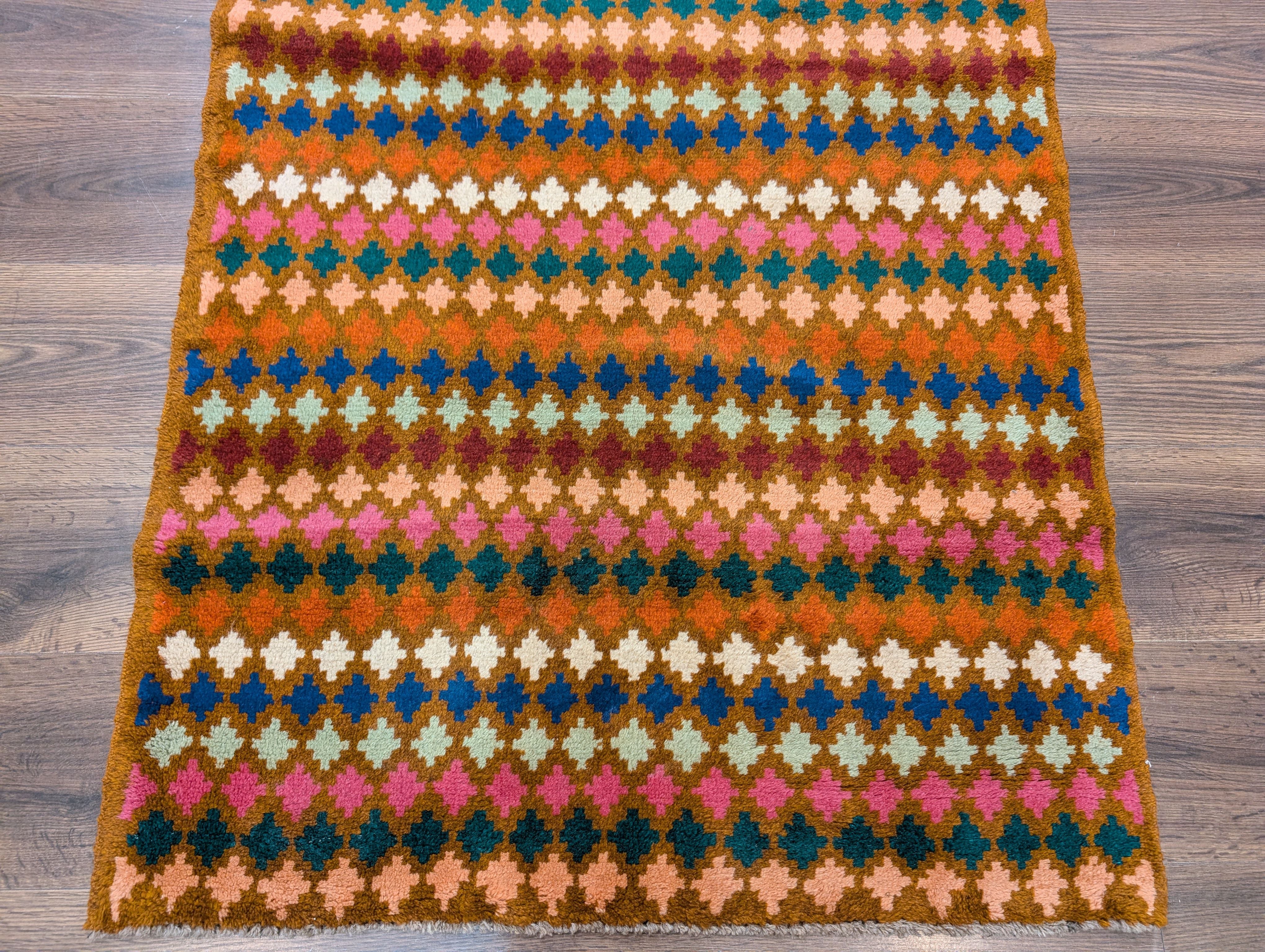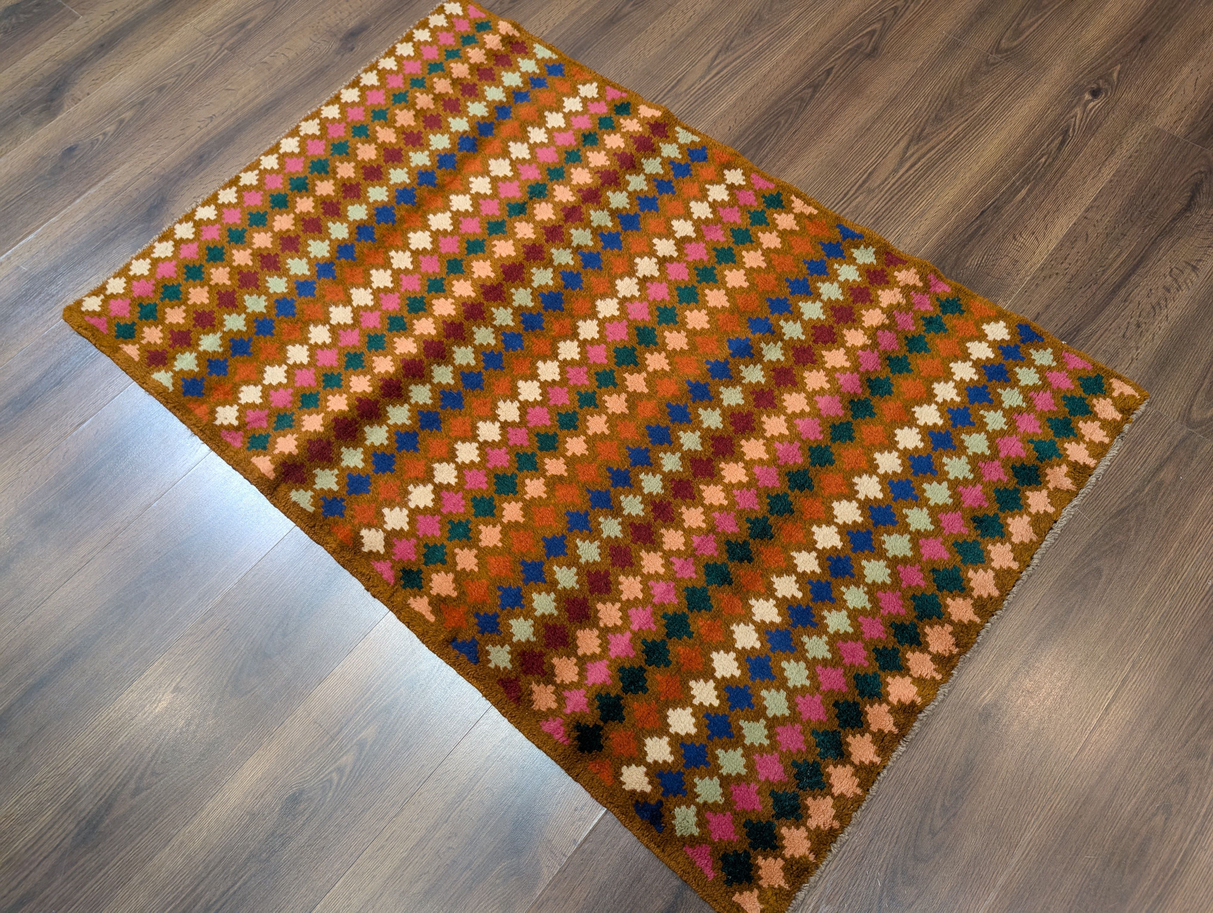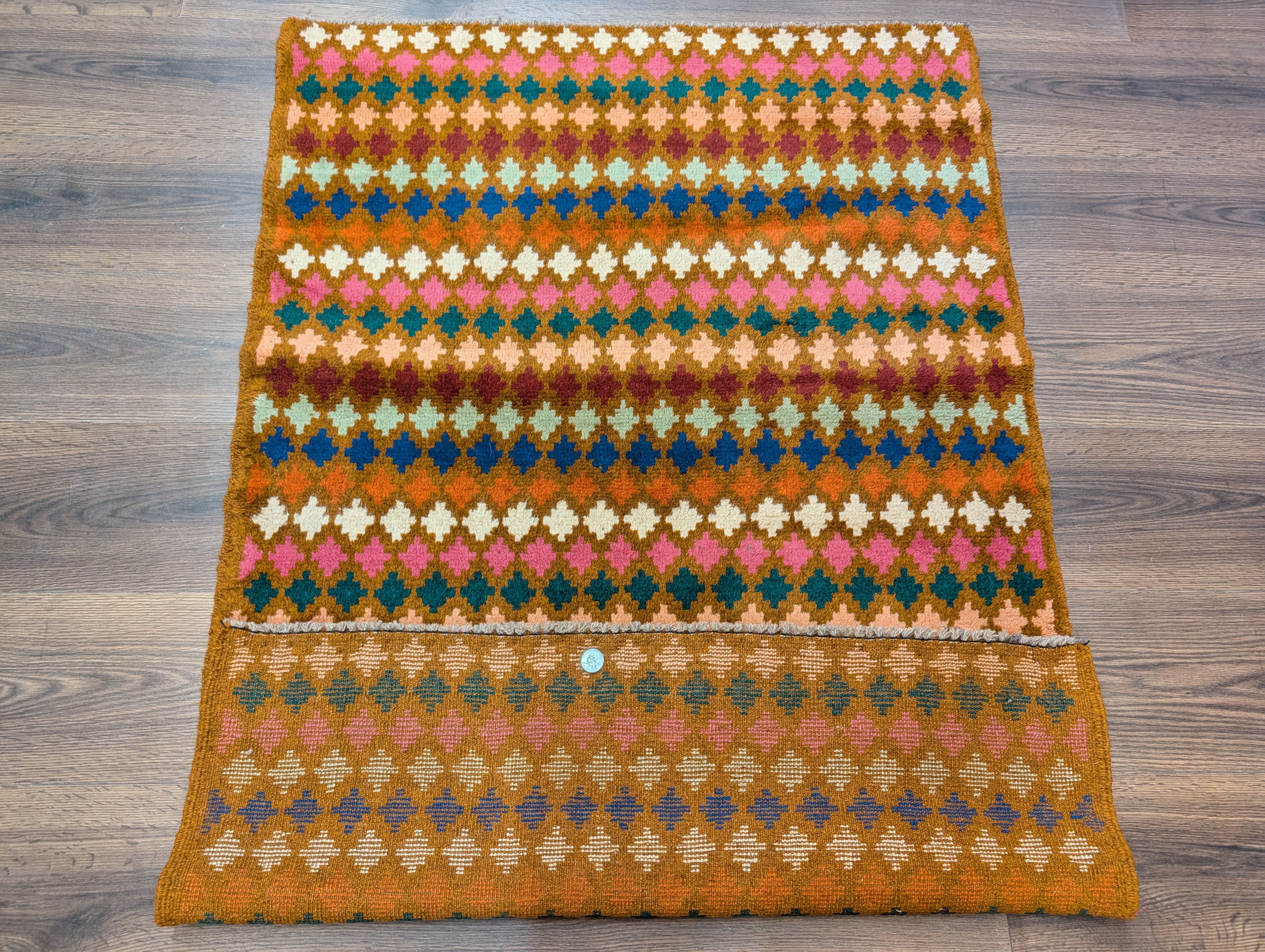 Small Afghan Balouch Rug 3x5, Multicolor, Diamond Pattern, Tribal, Wool