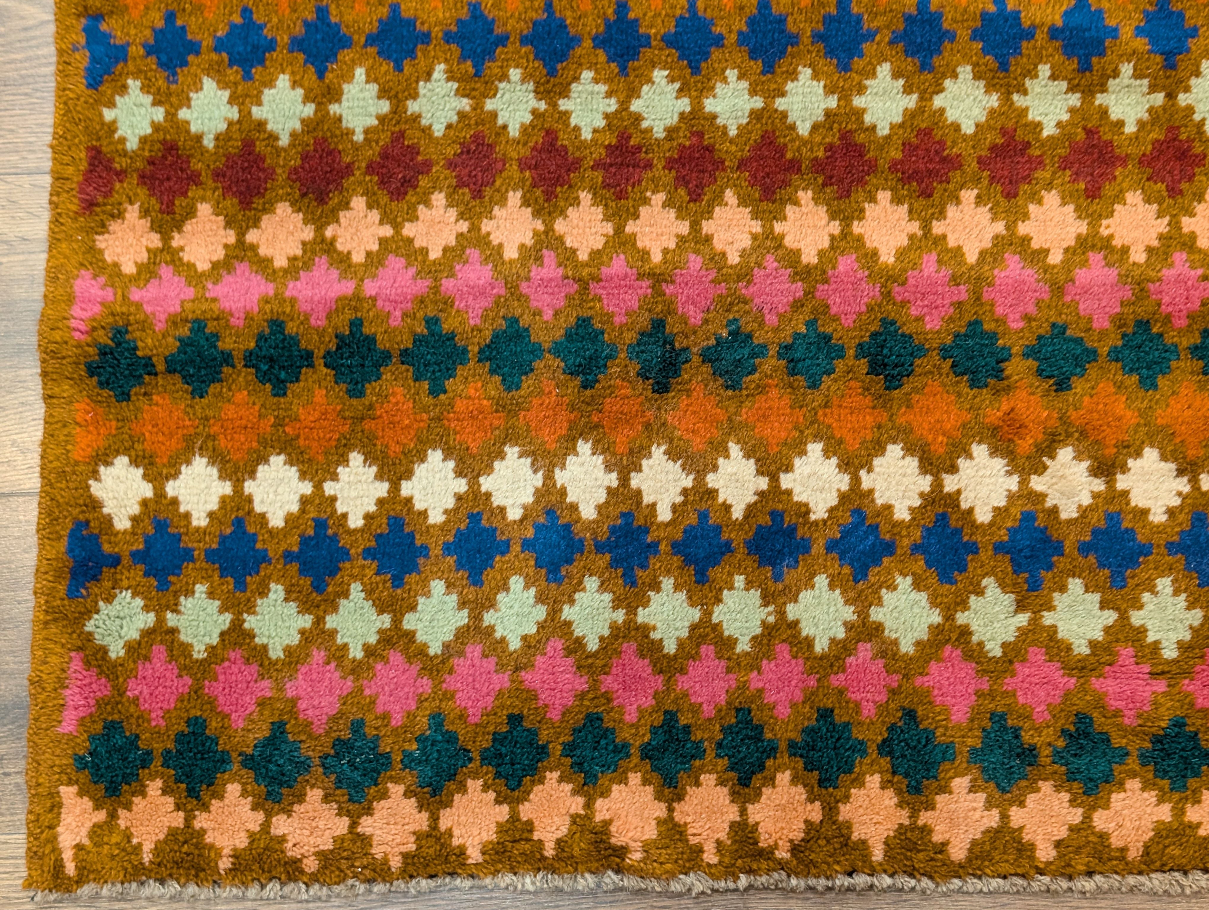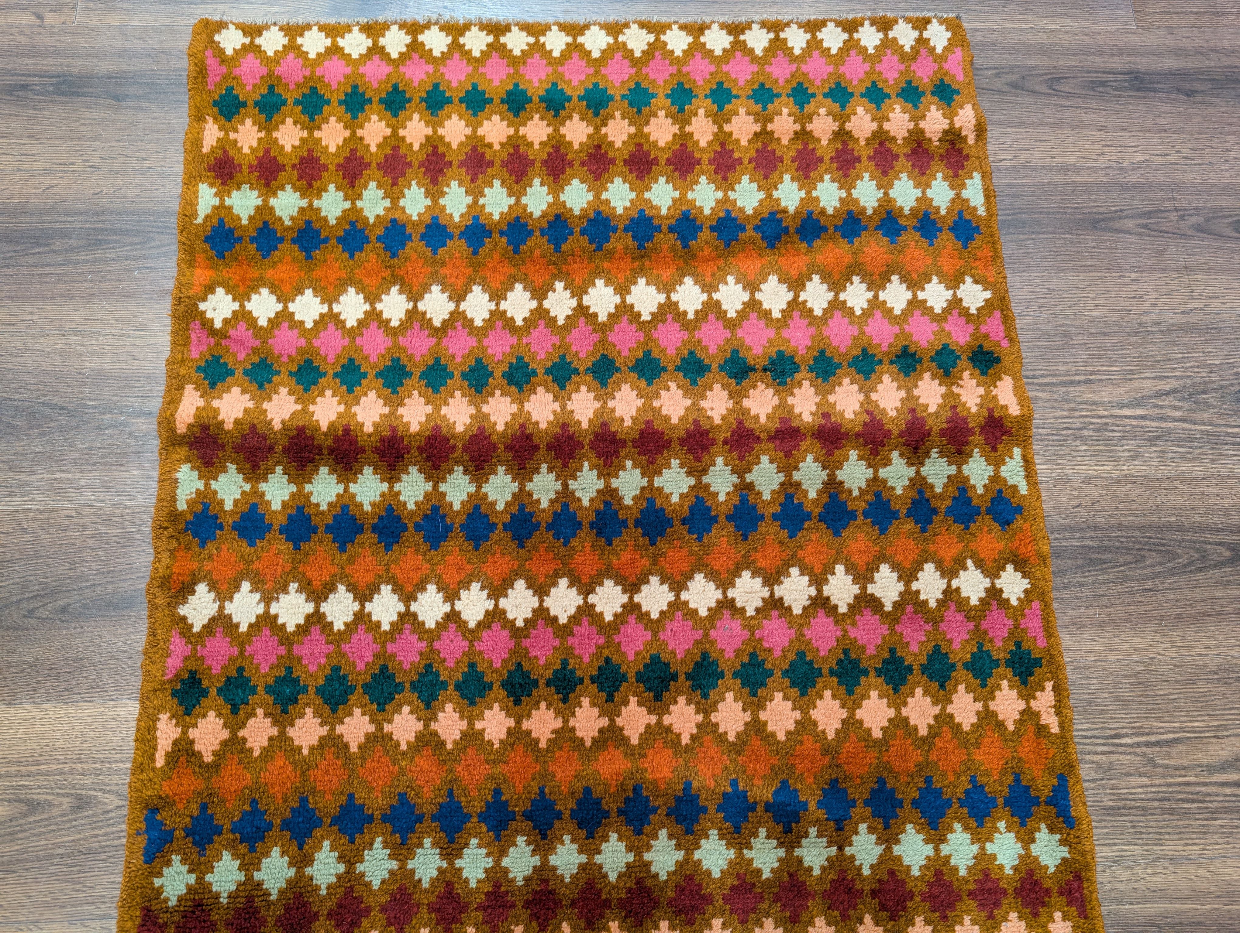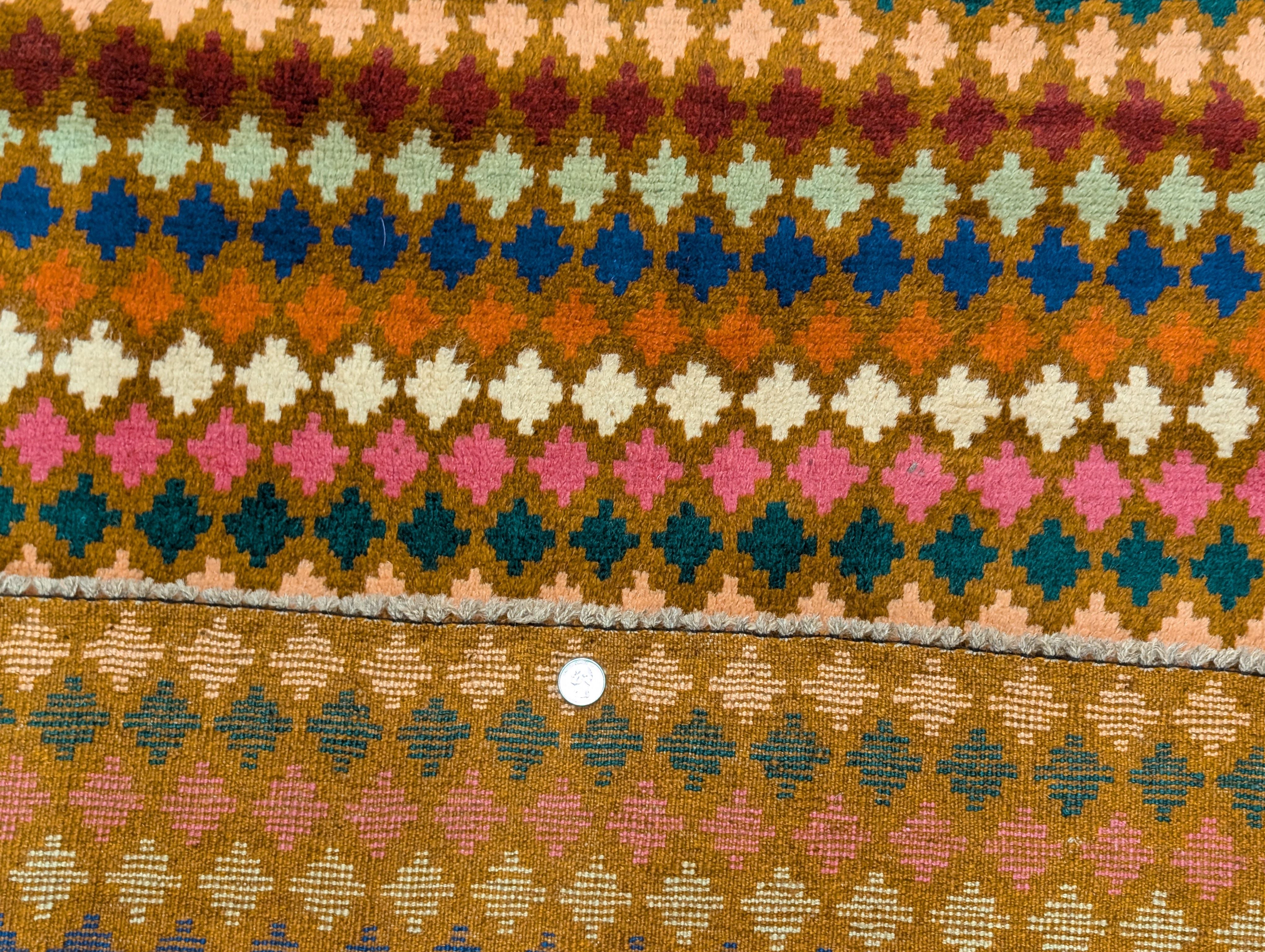 Small Afghan Balouch Rug 3x5, Multicolor, Diamond Pattern, Tribal, Wool