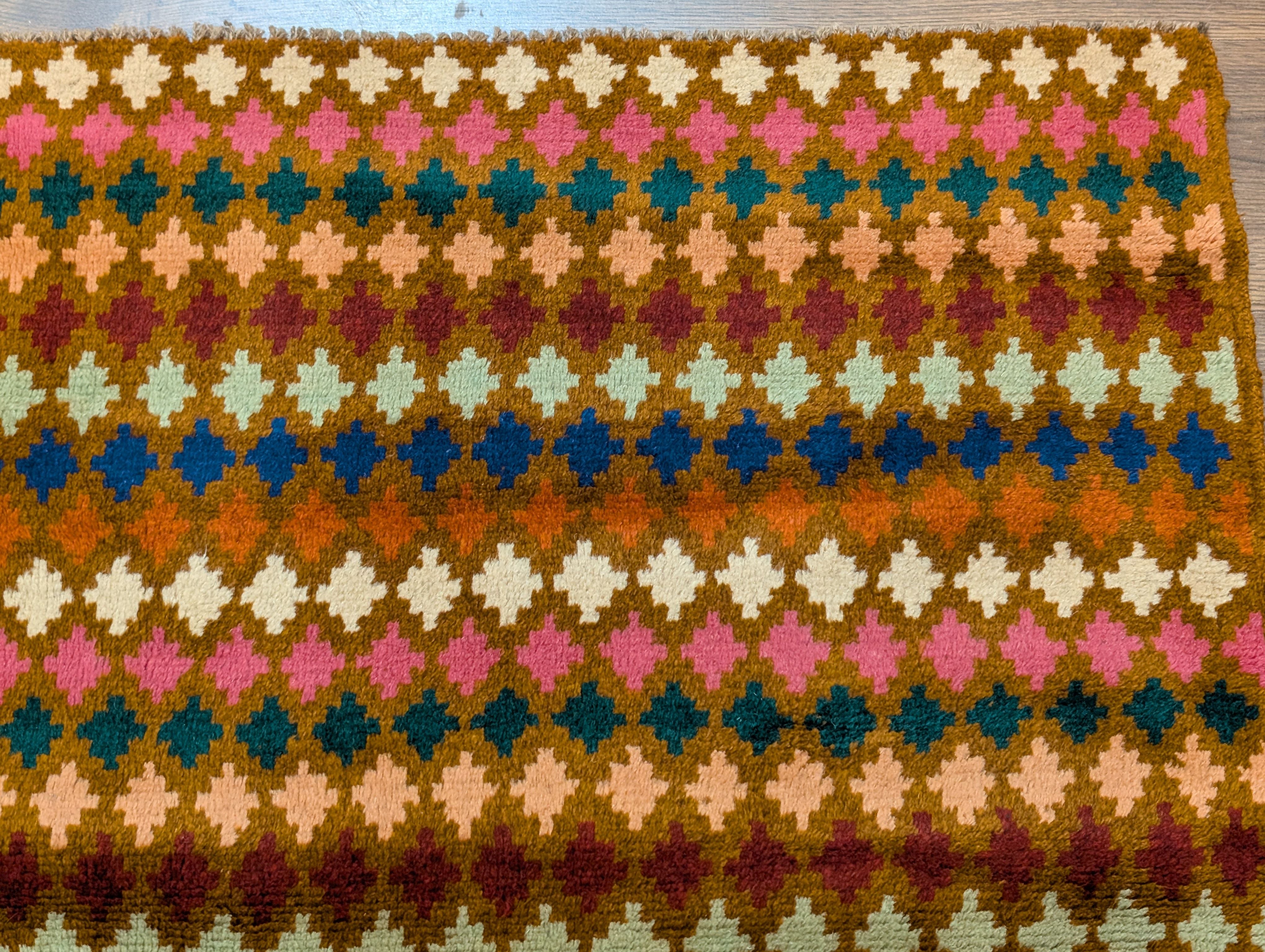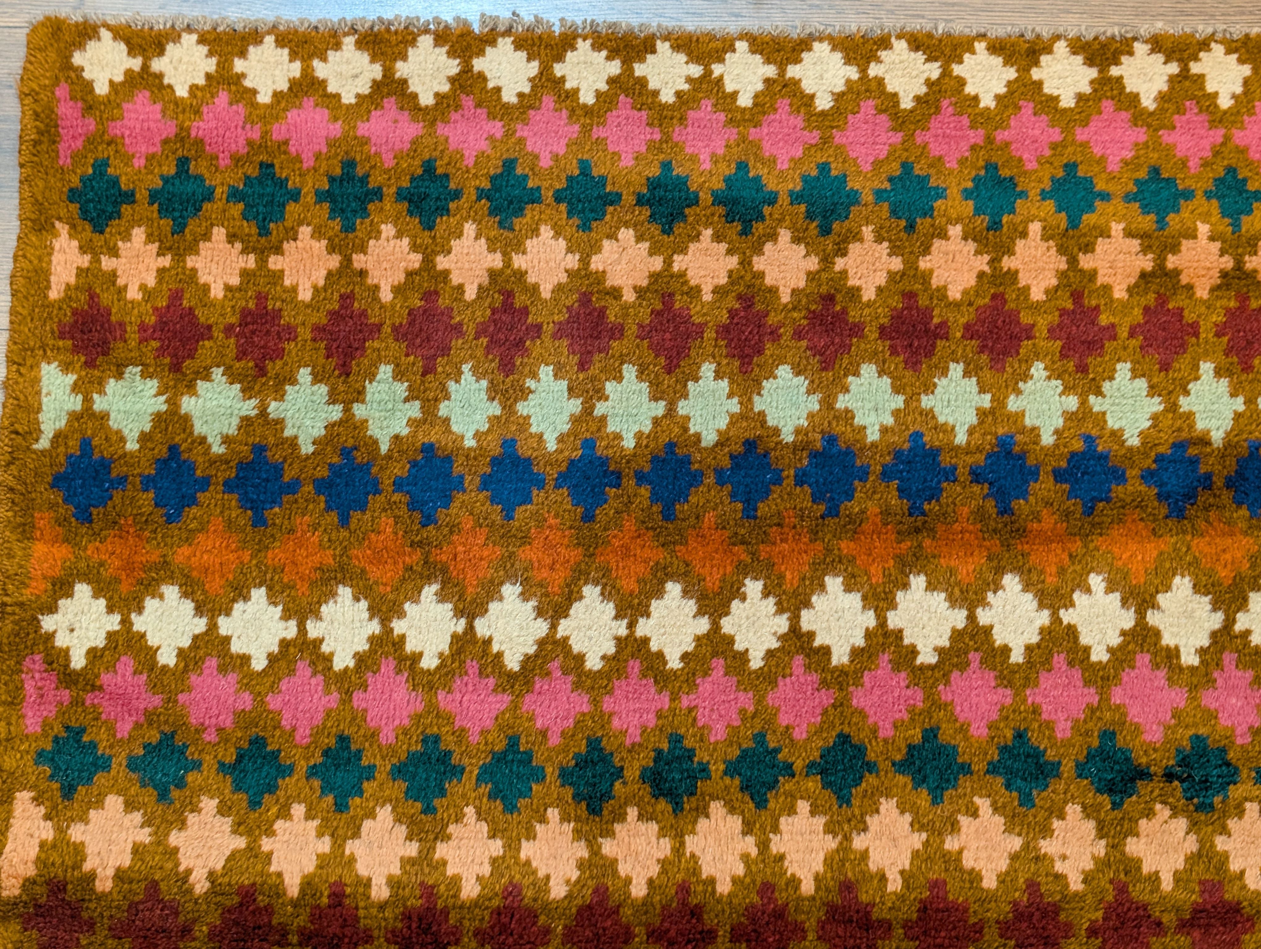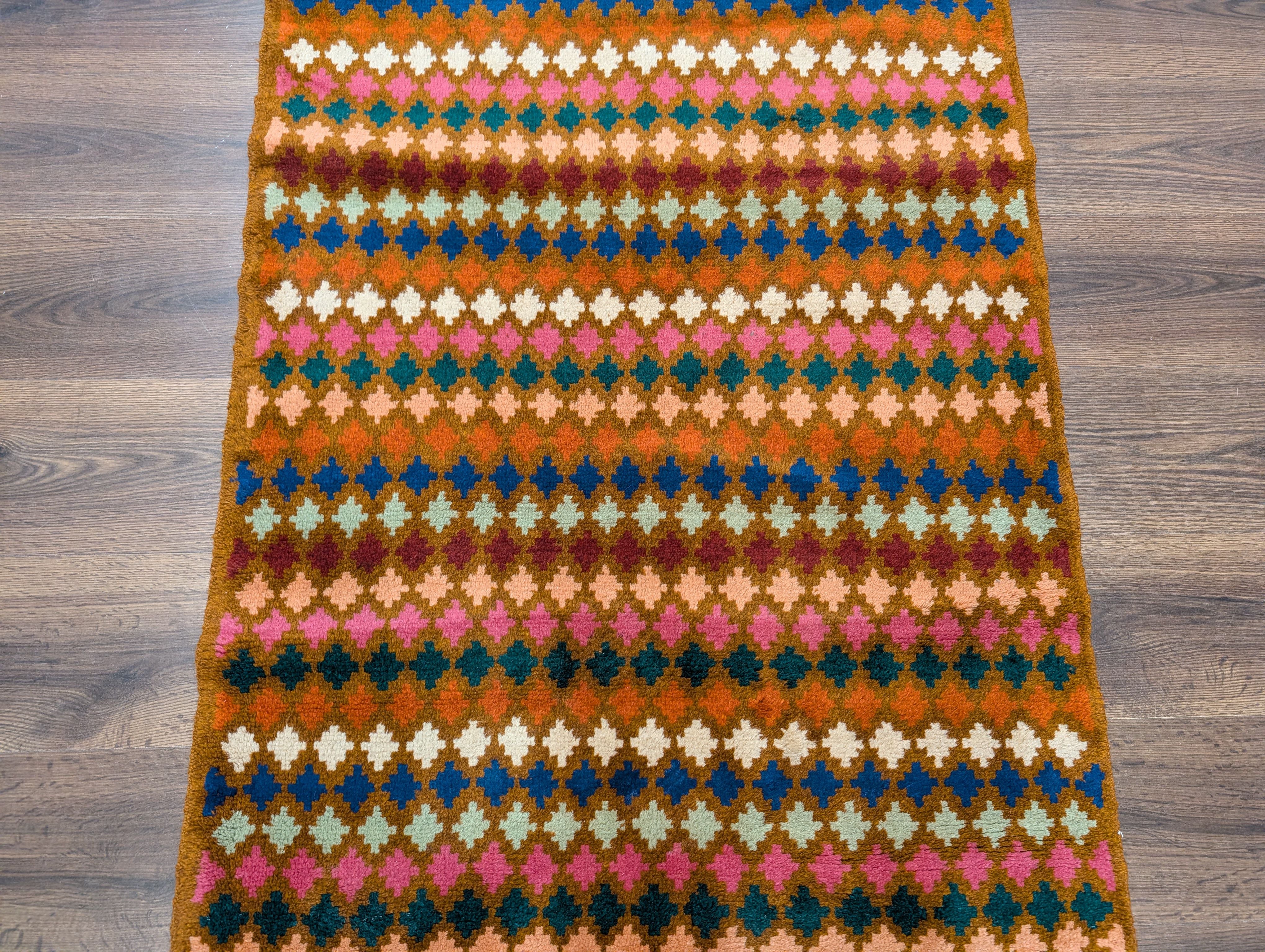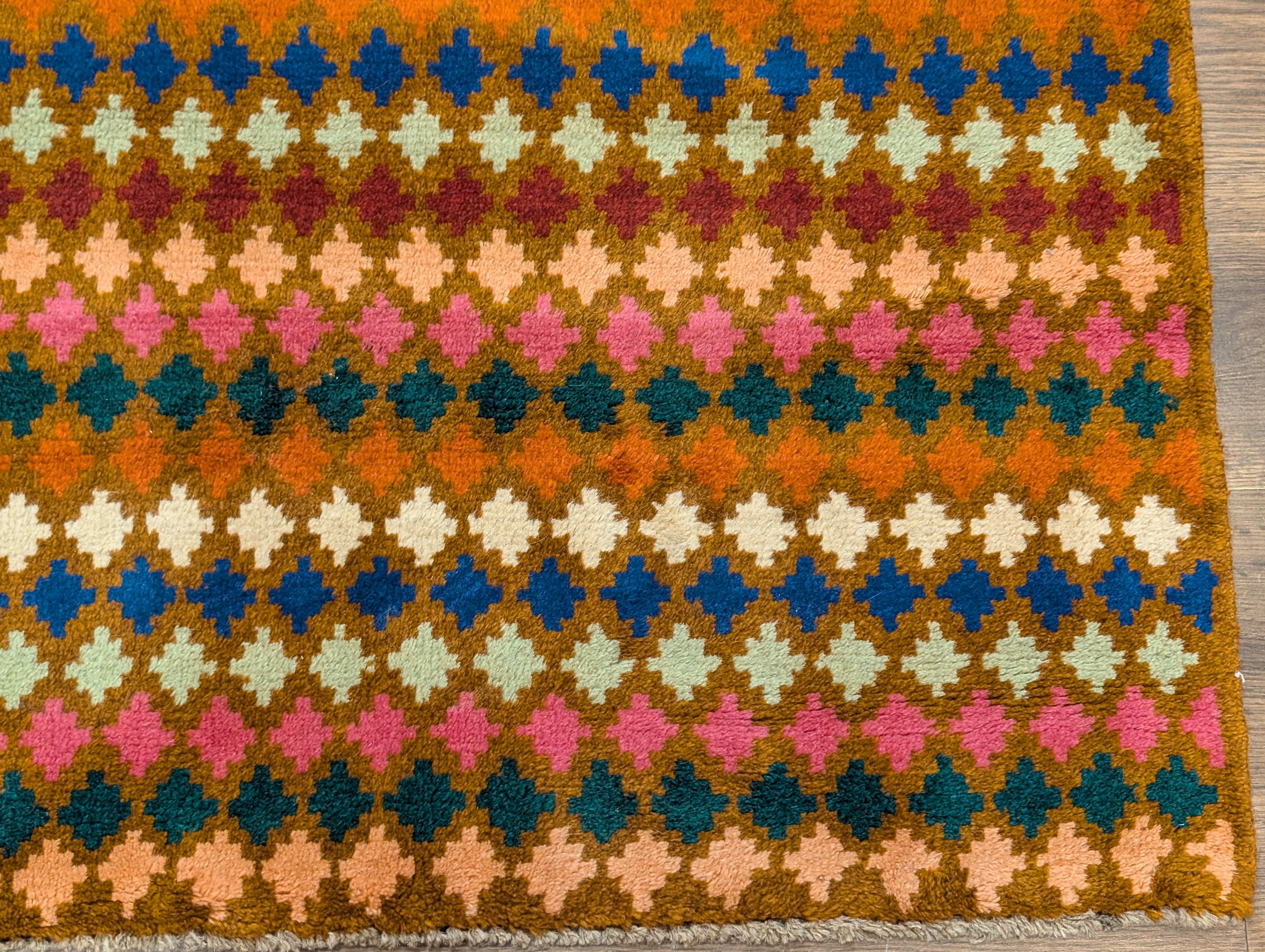 Small Afghan Balouch Rug 3x5, Multicolor, Diamond Pattern, Tribal, Wool