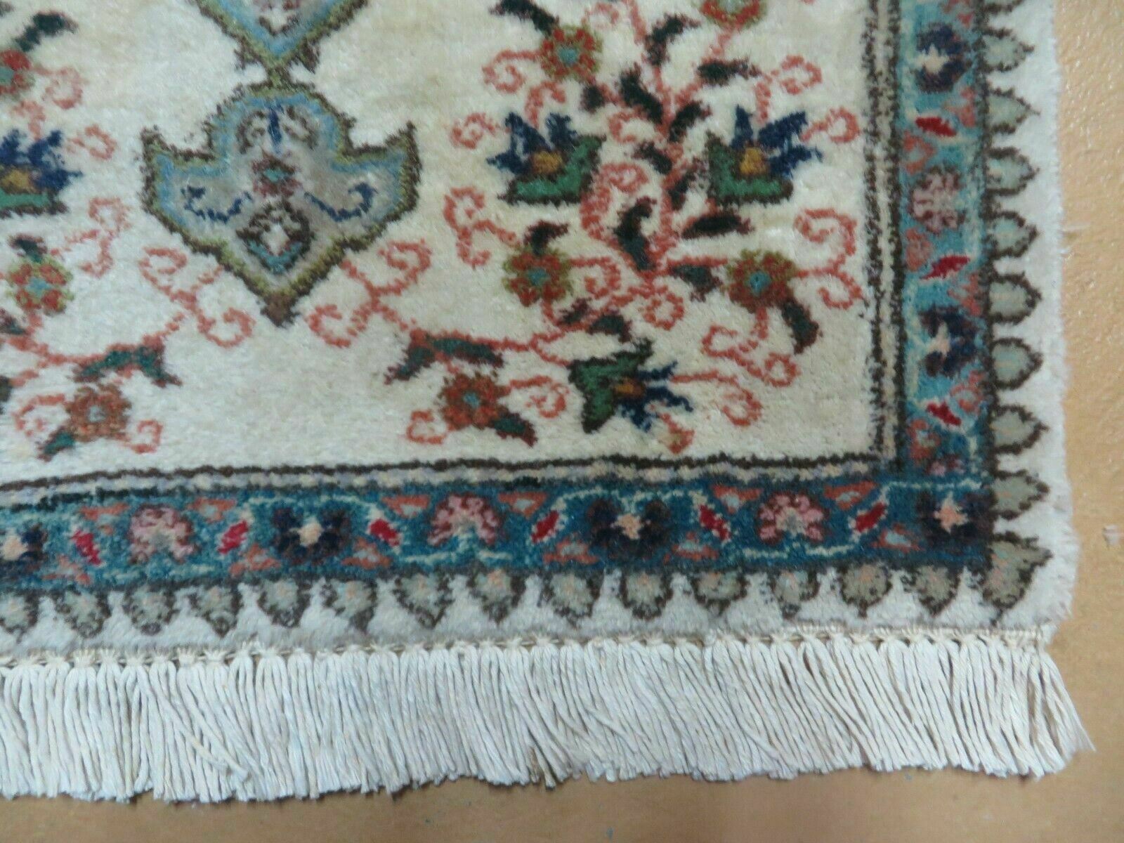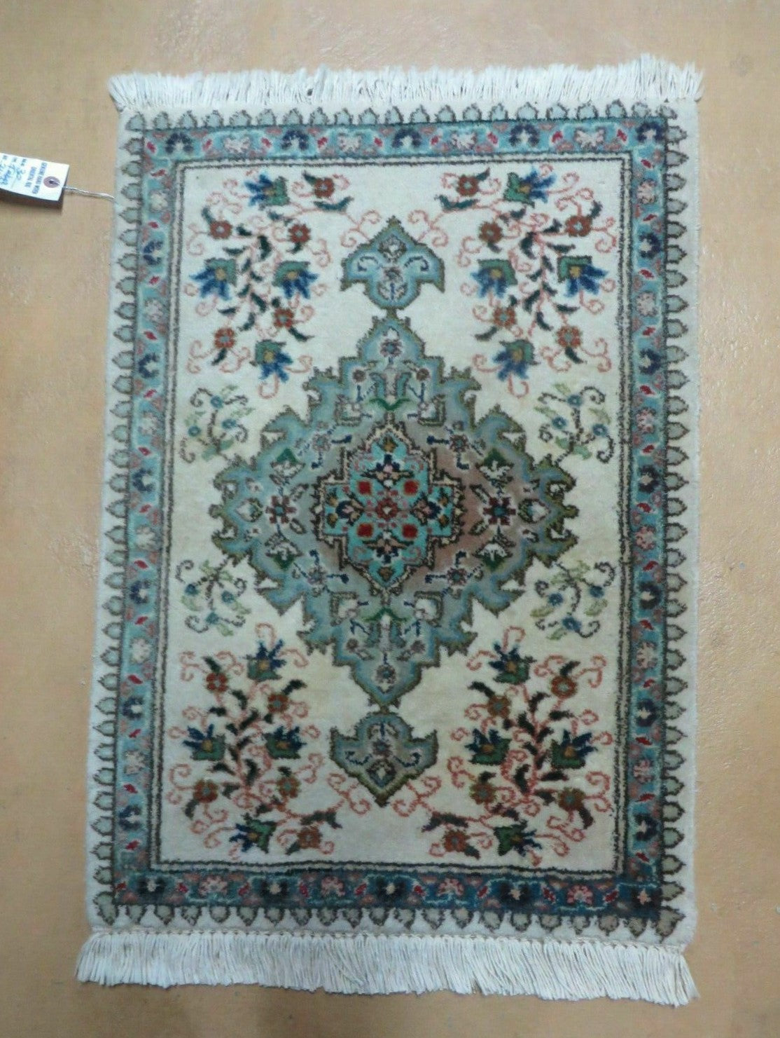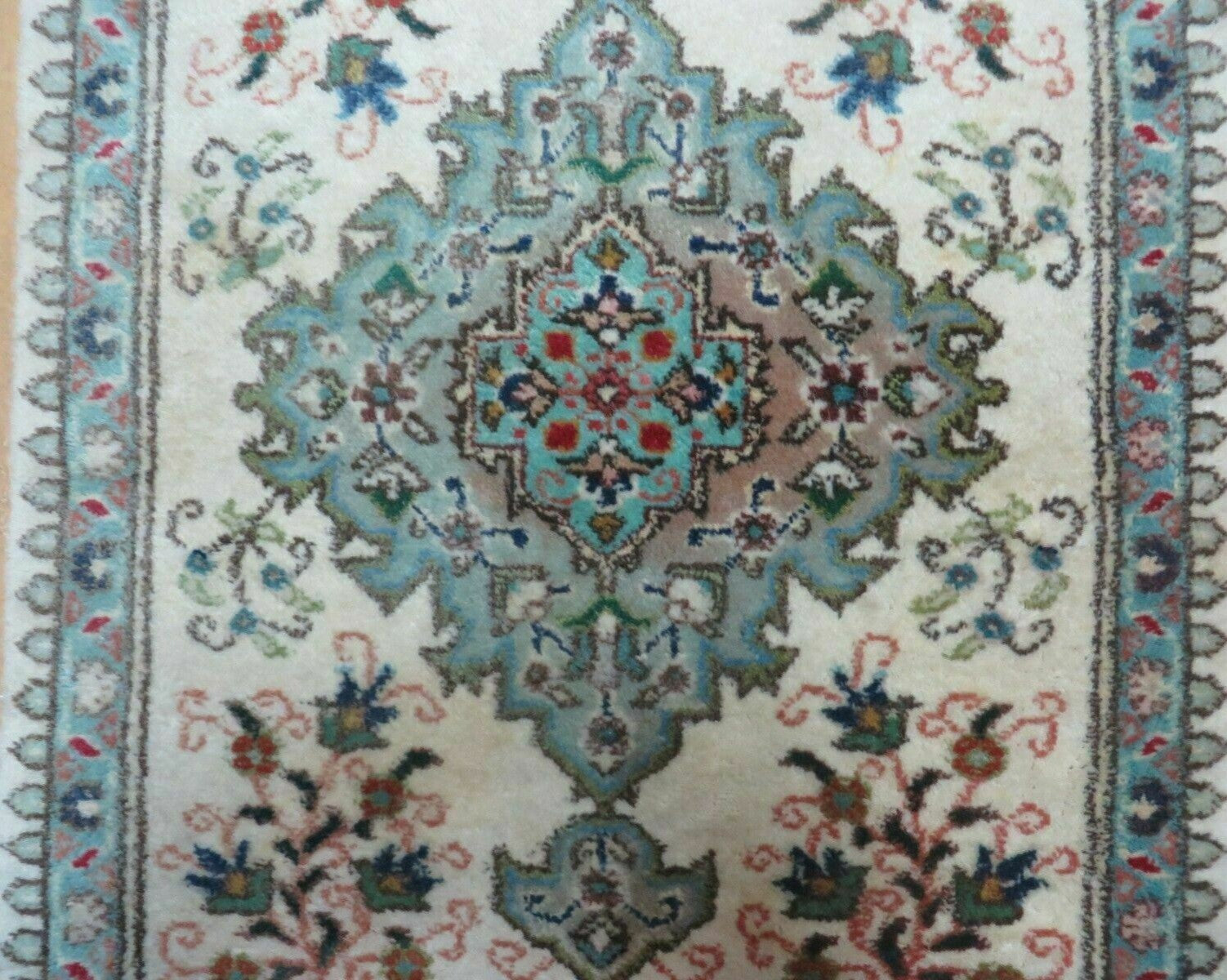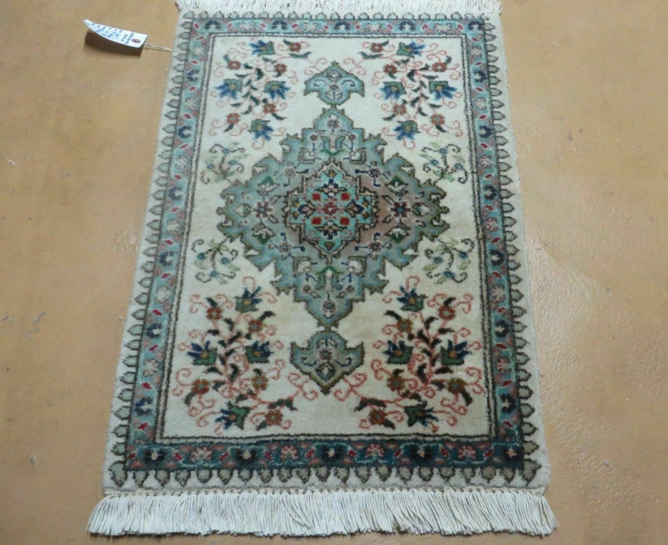 Small Ivory Persian Tabriz Tabatabaie Rug, Handmade, Wool