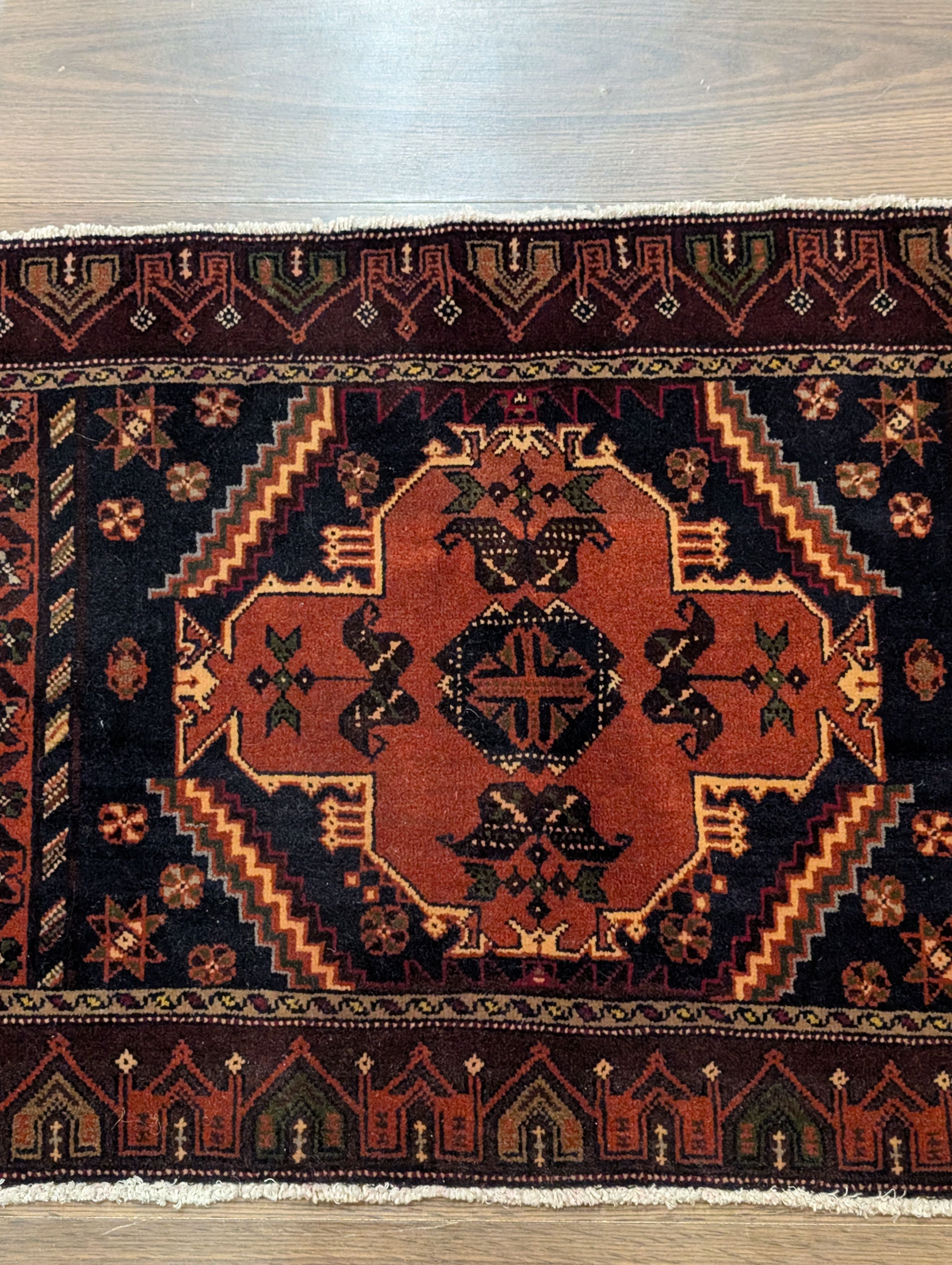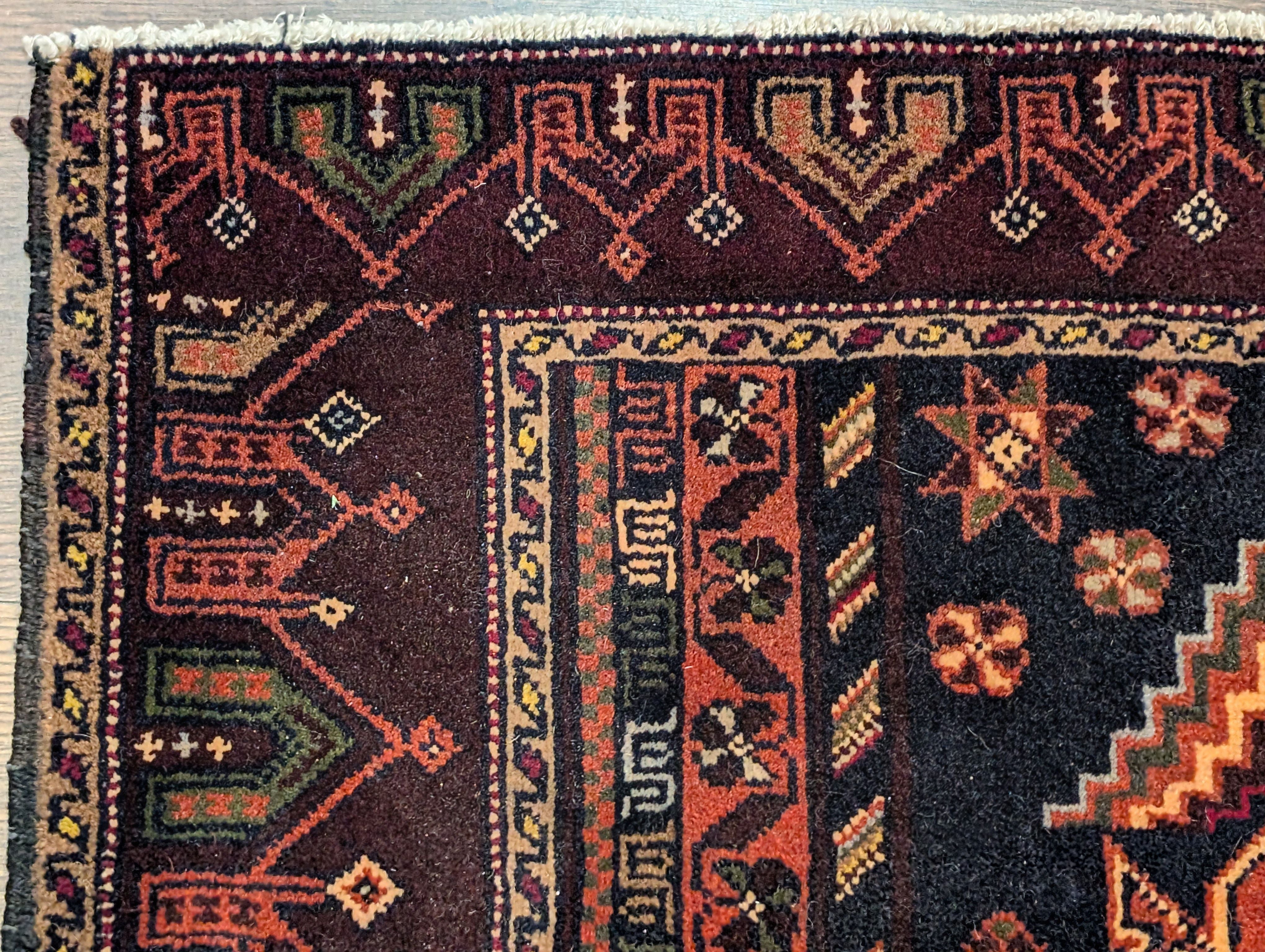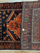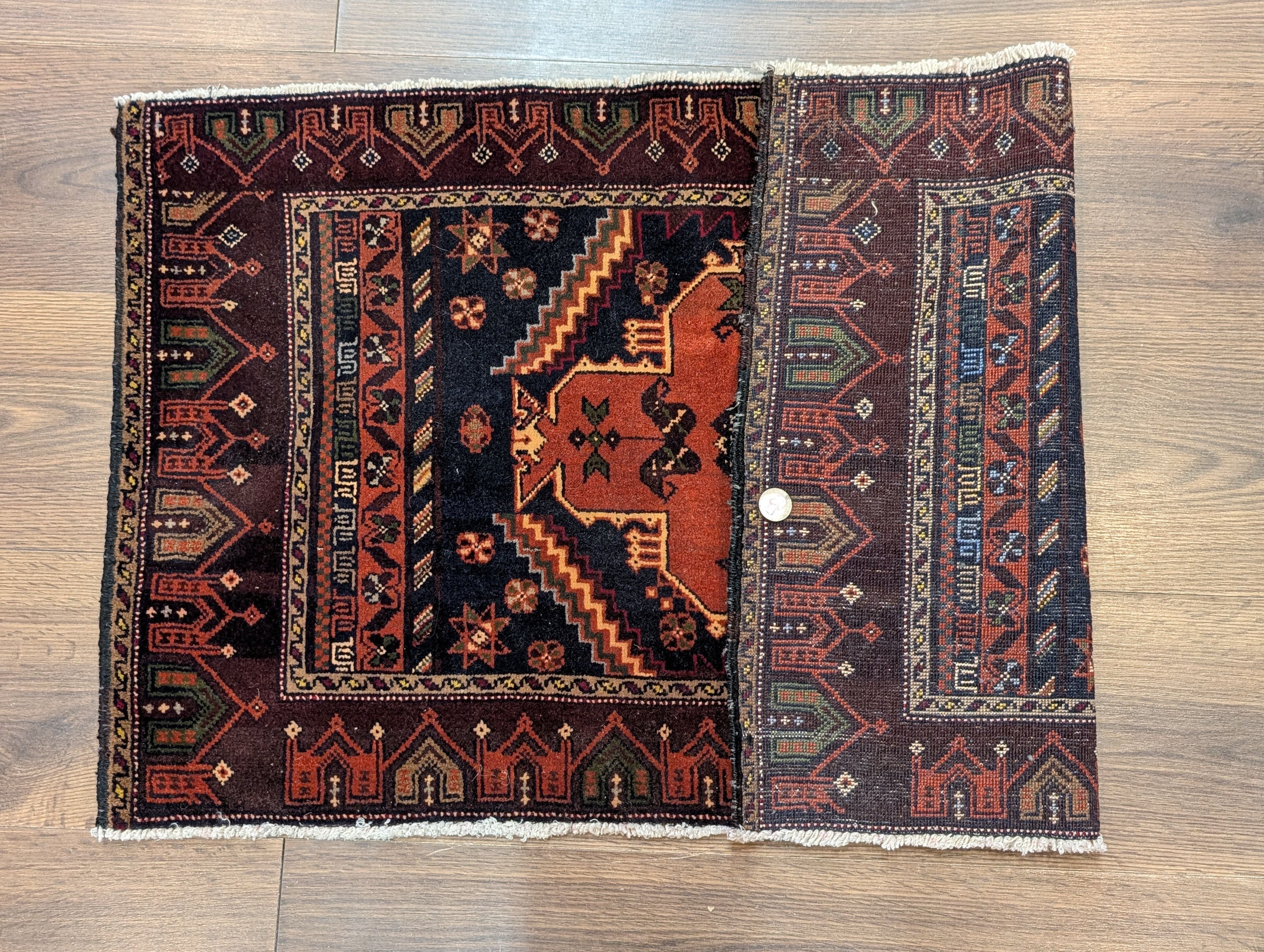Small Persian Baluch Rug 2x3, Geometric Medallion, Wool