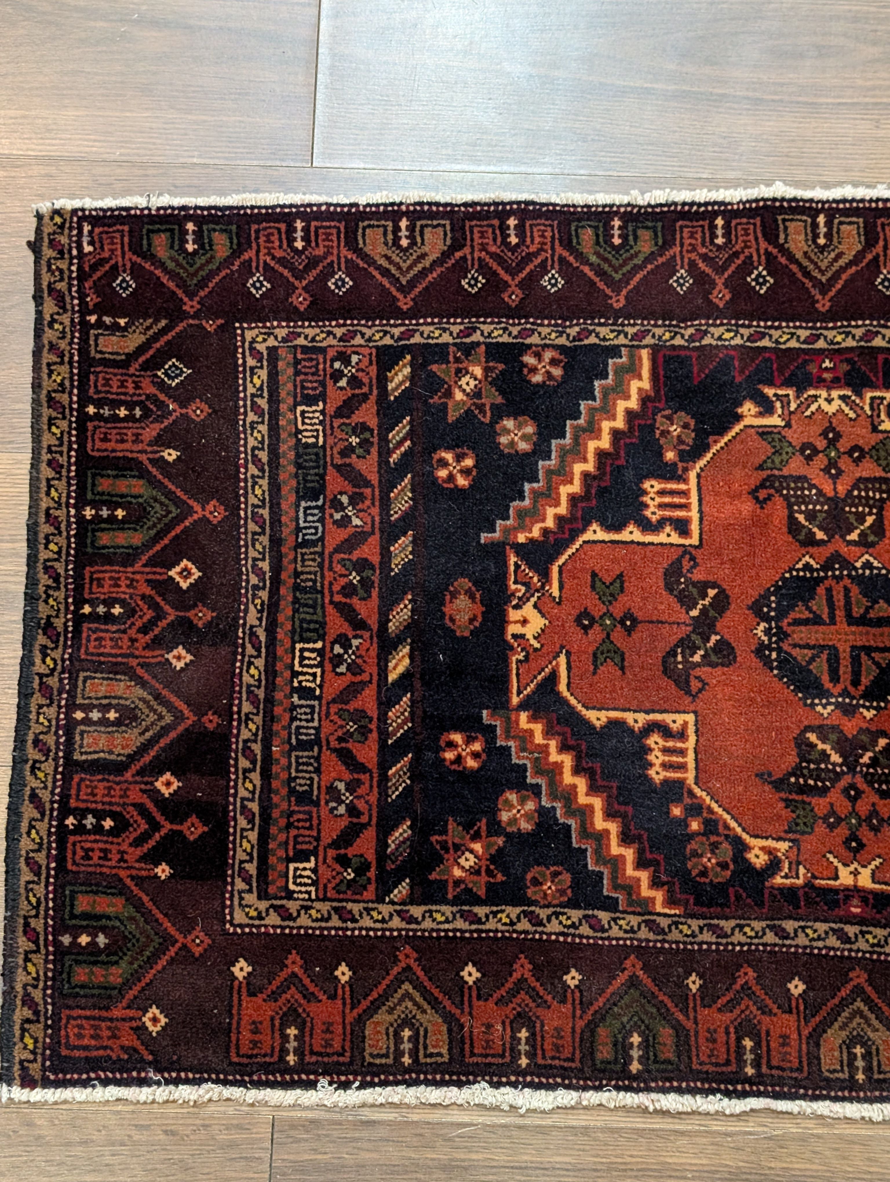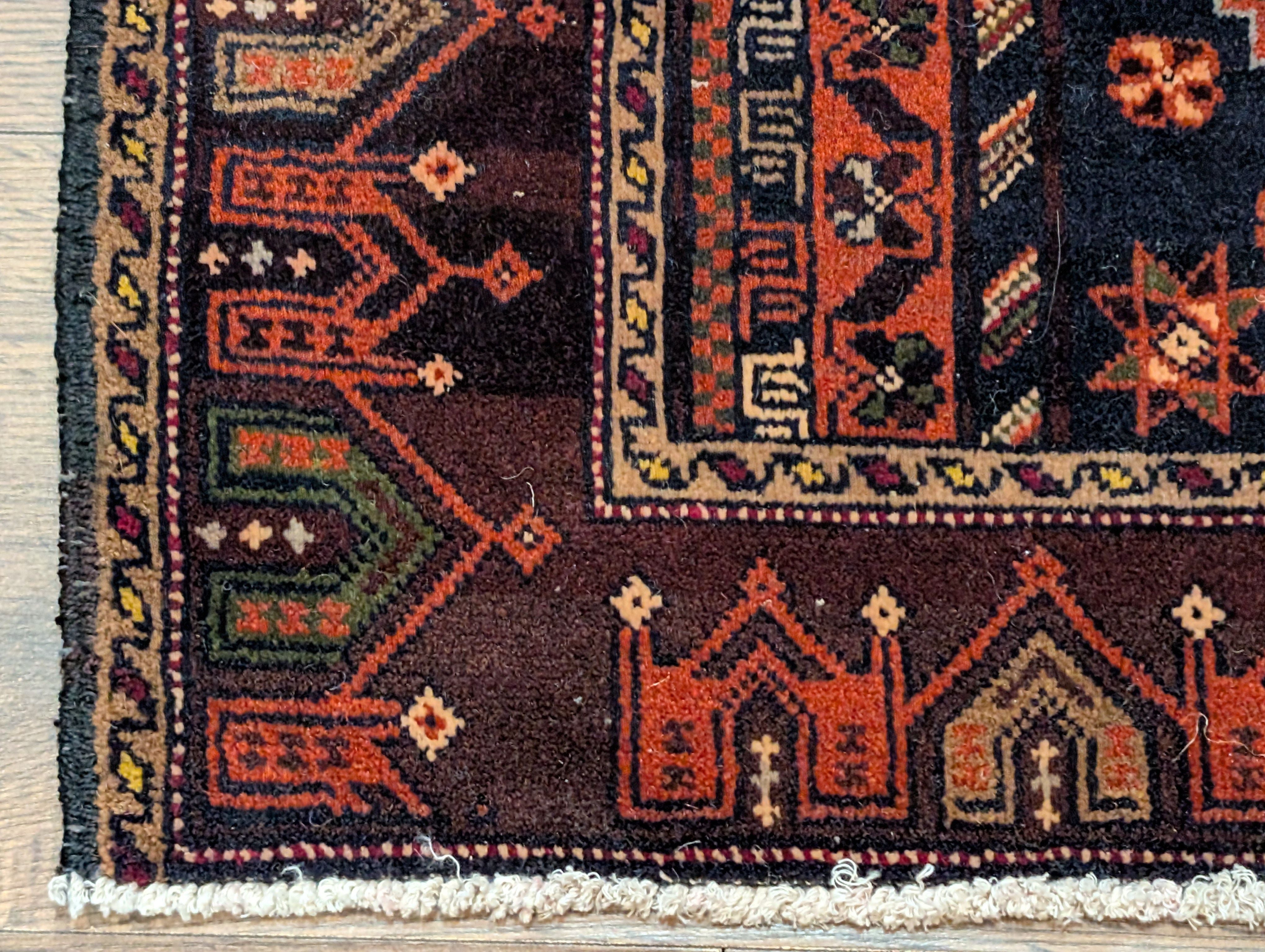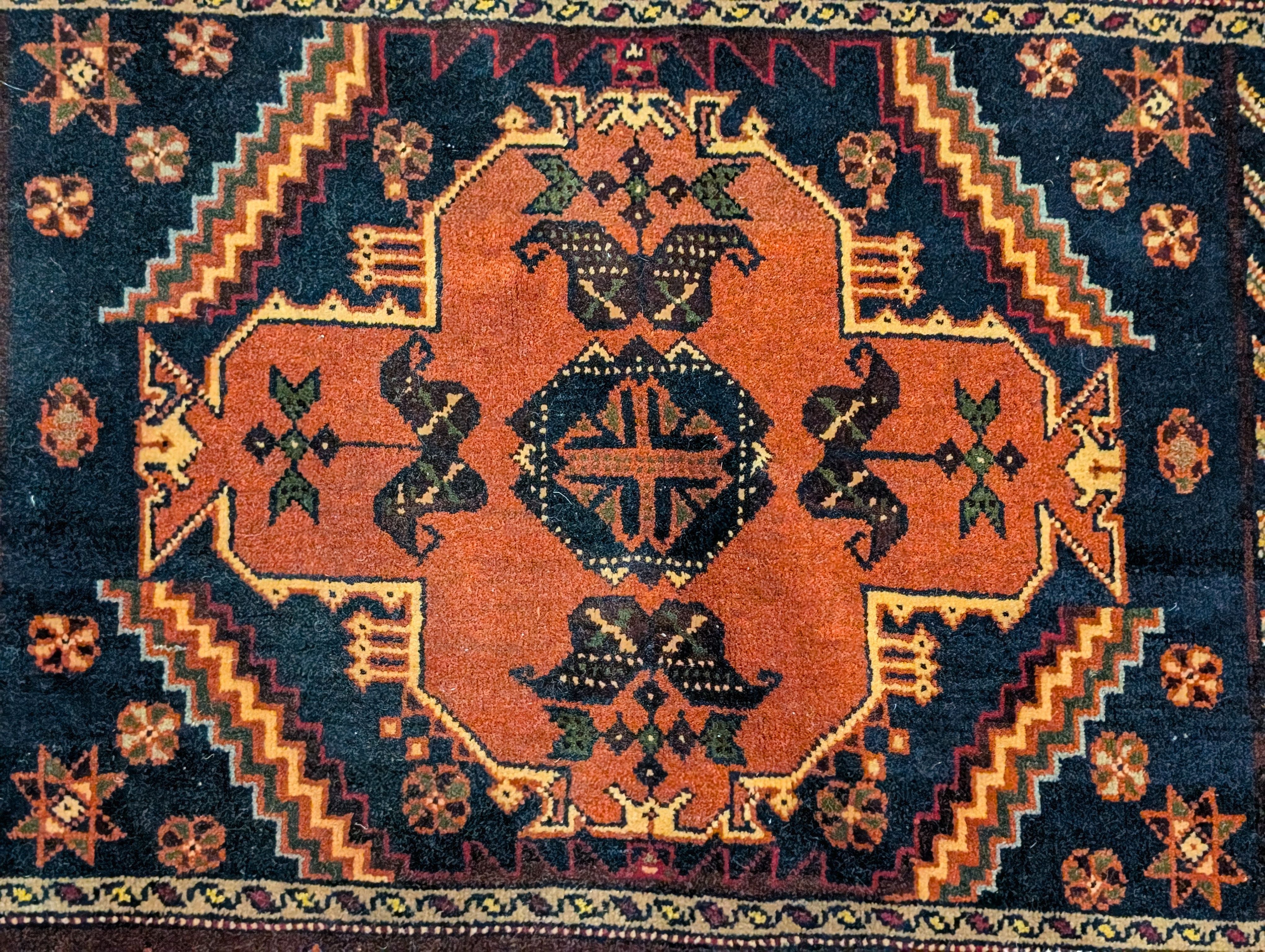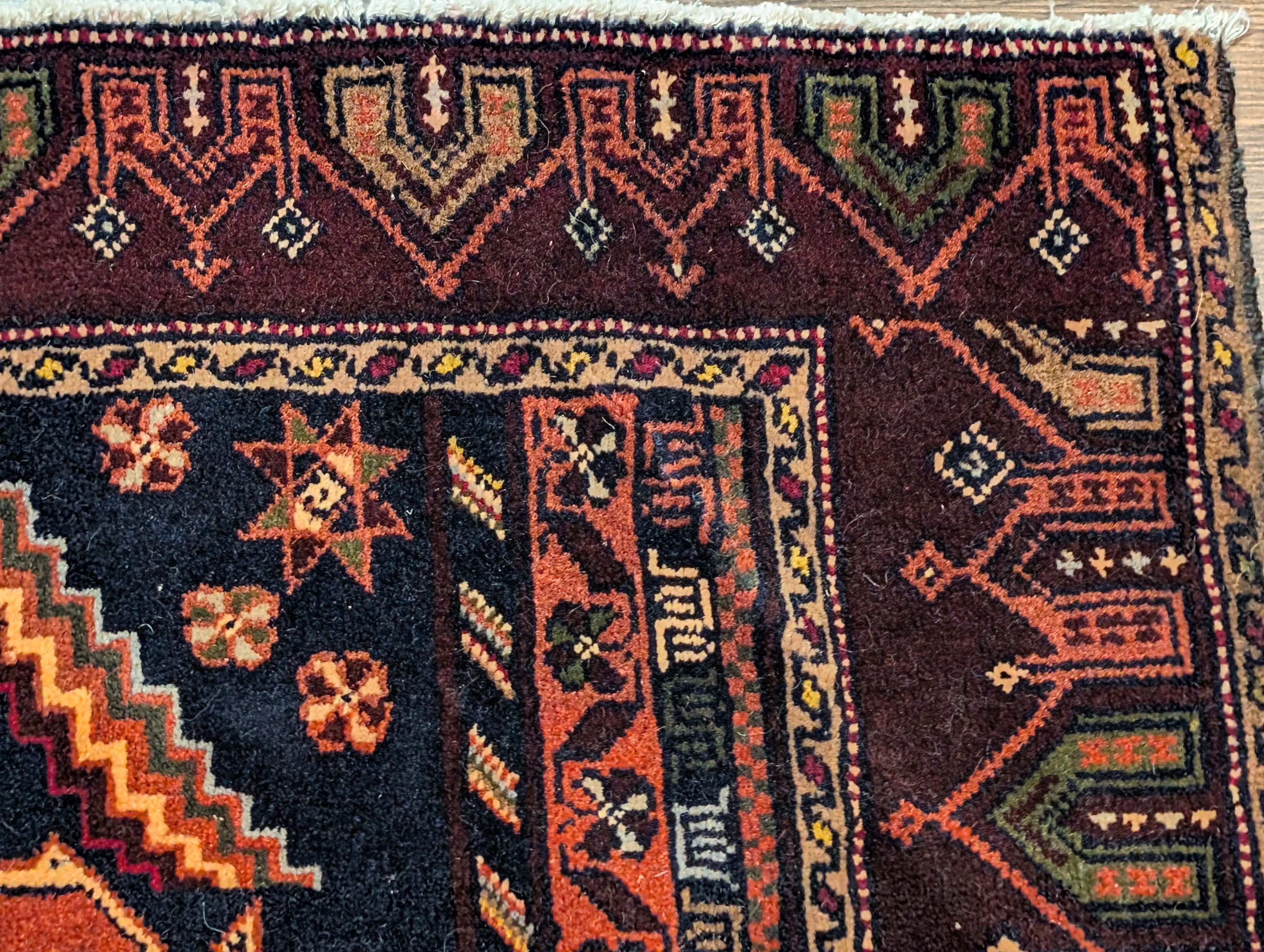 Small Persian Baluch Rug 2x3, Geometric Medallion, Wool
