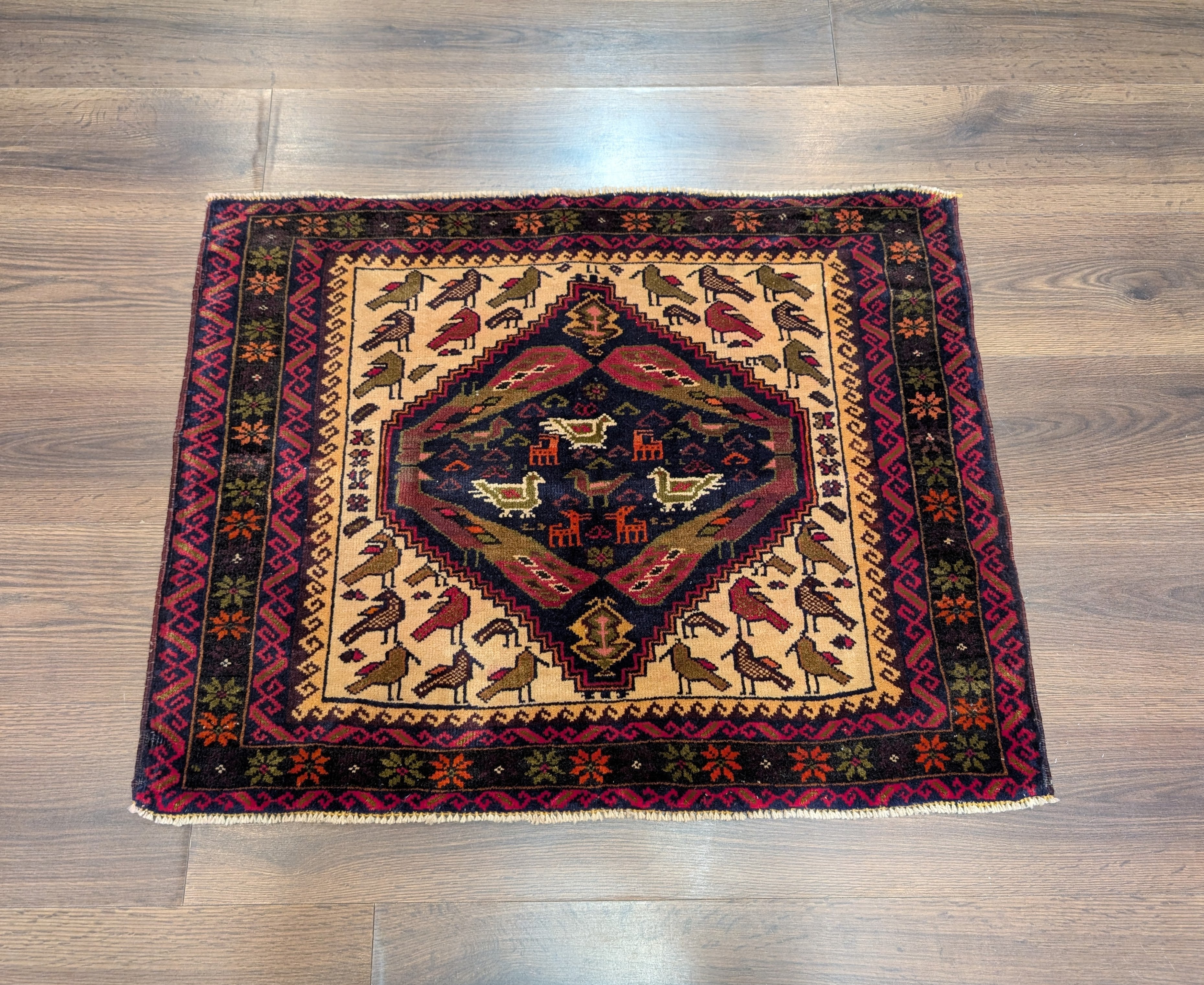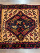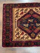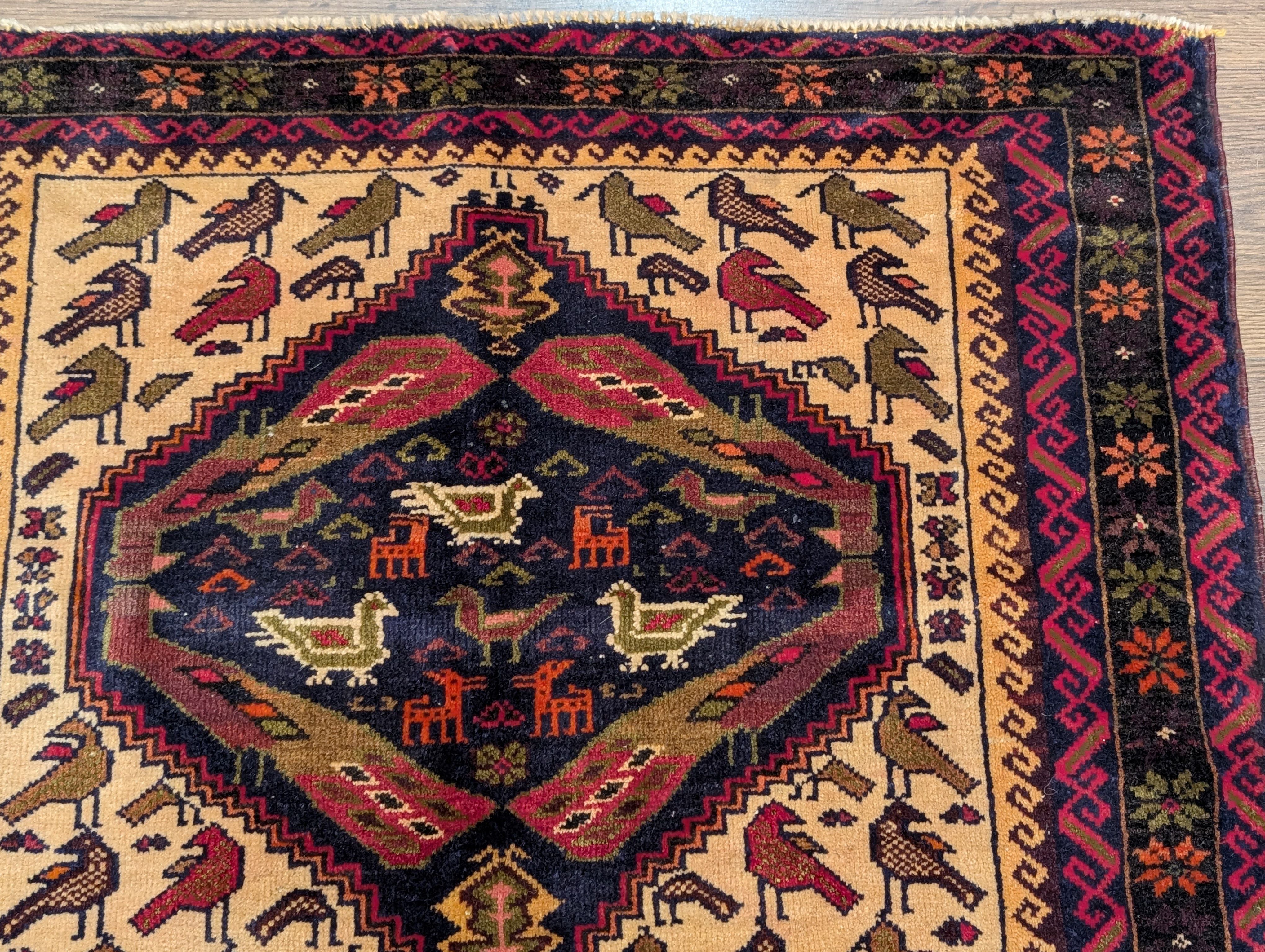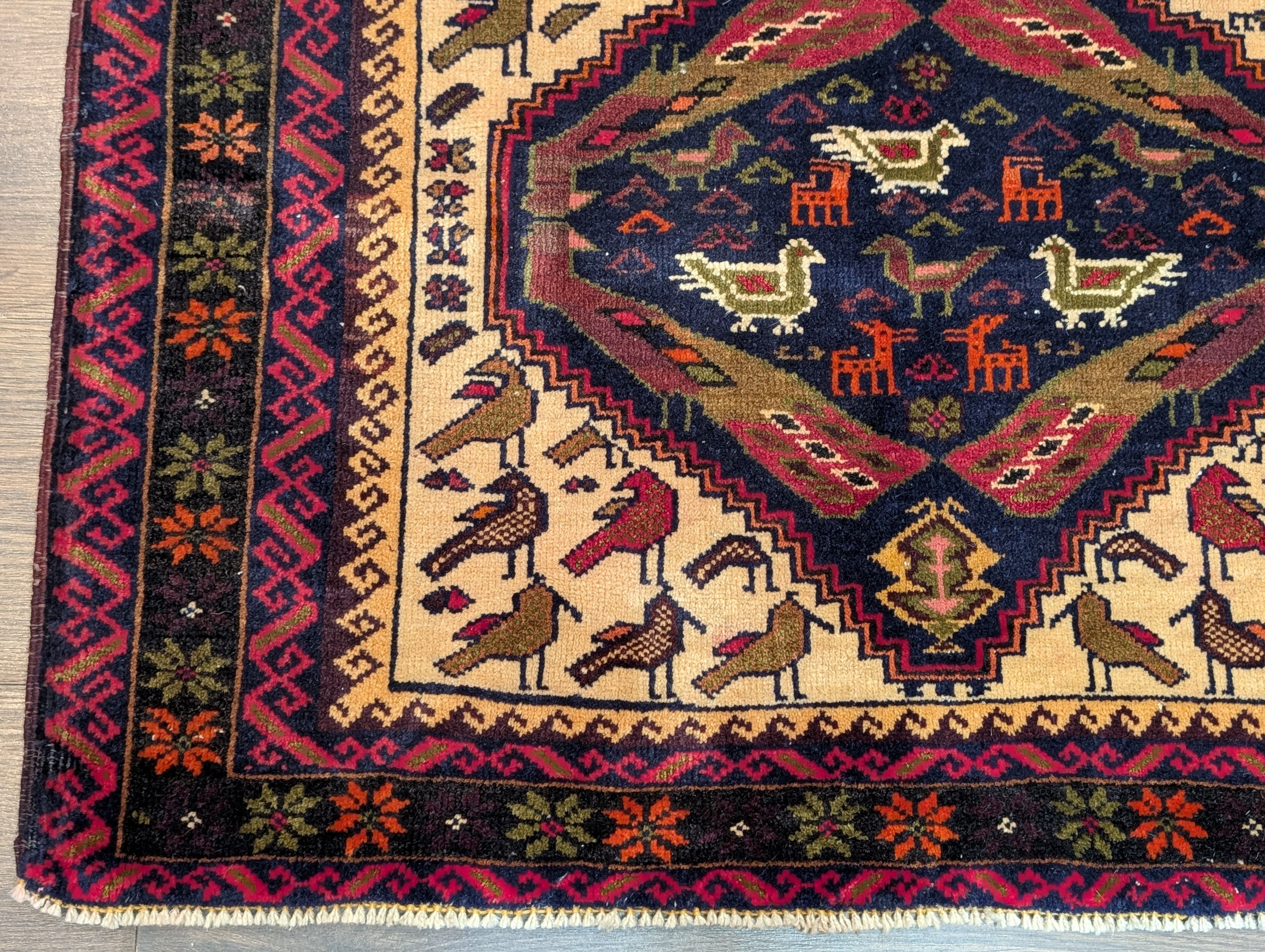 Small Persian Baluch Rug, Tribal Rug, Wool, Bird Pictorials, Unique