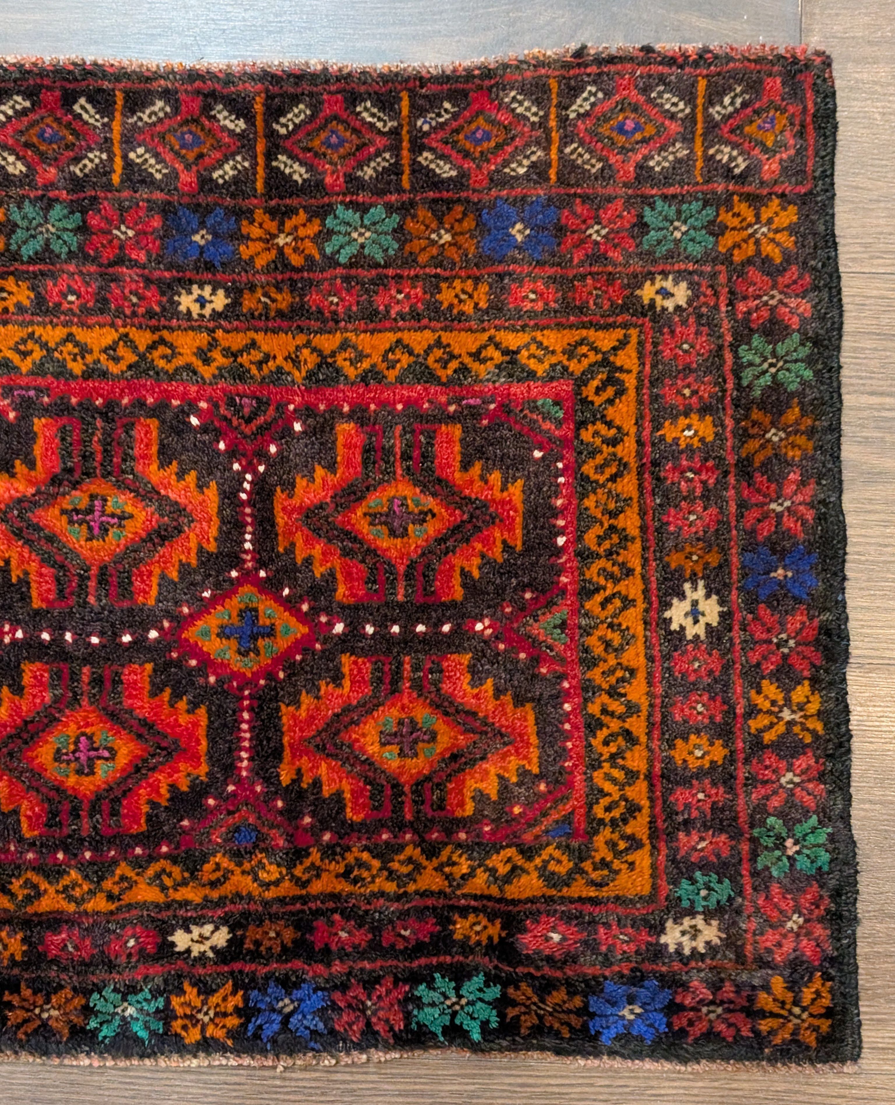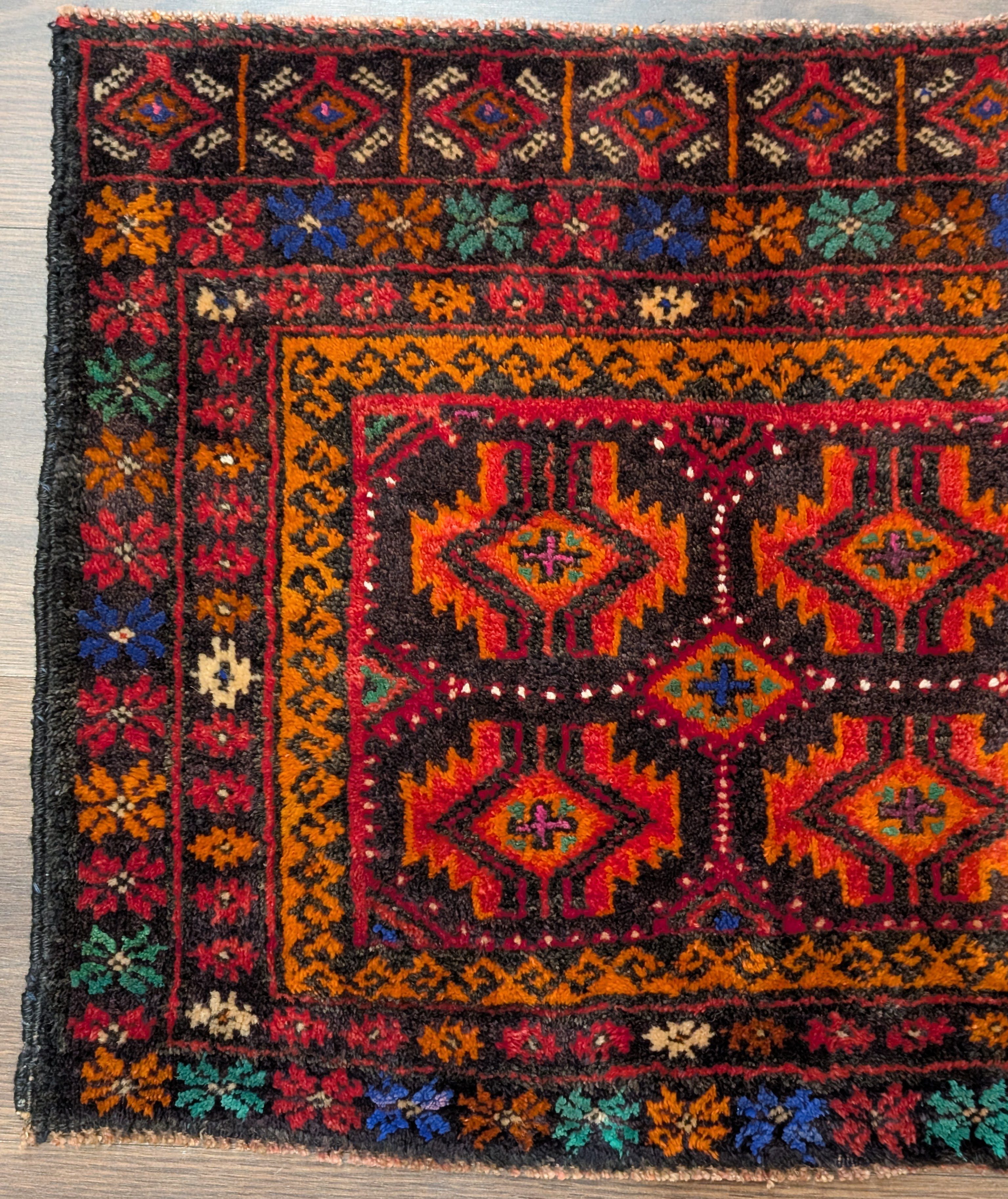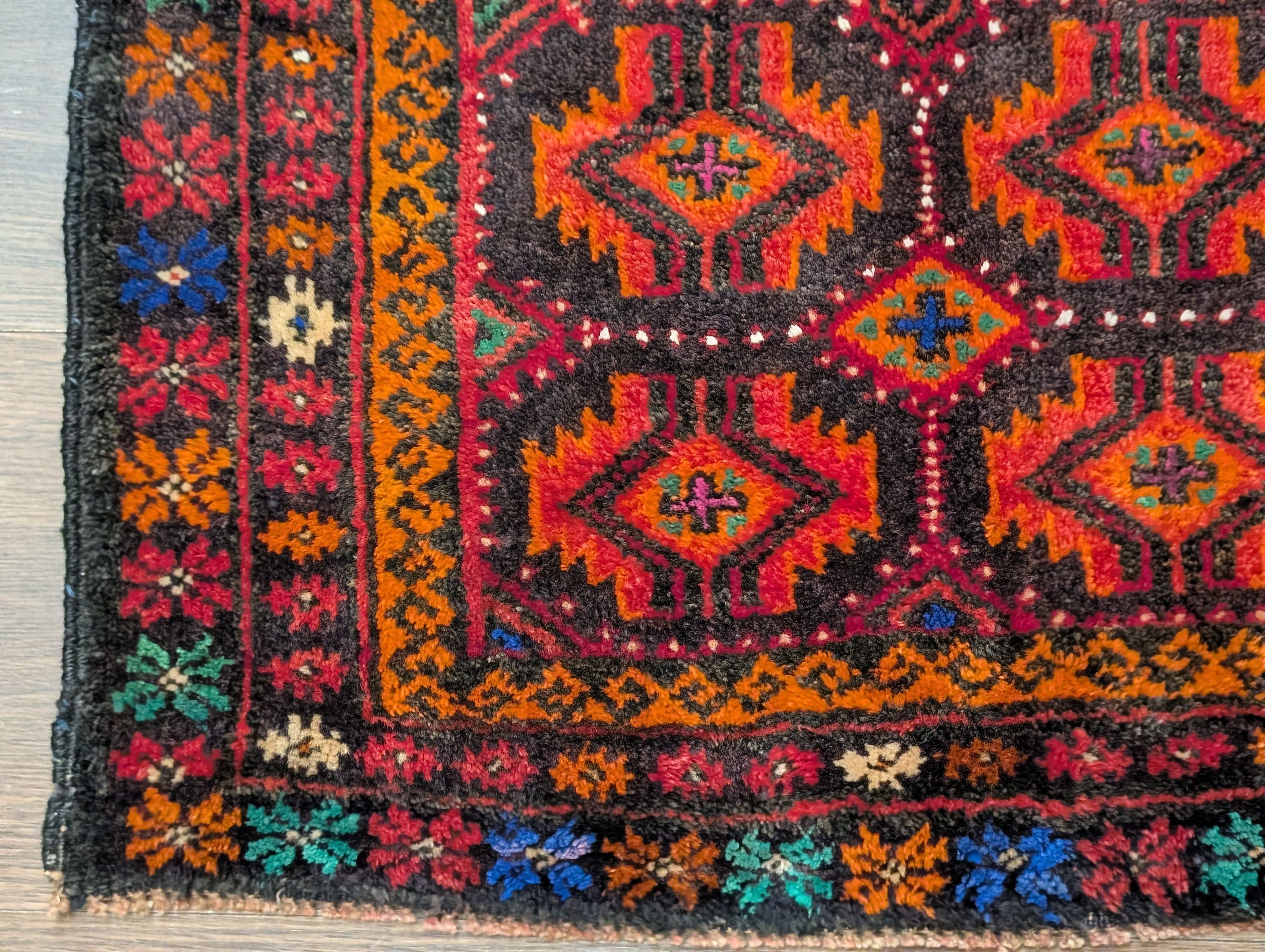 Small Persian Tribal Rug, Hand Knotted, Wool, Geometric, Colorful