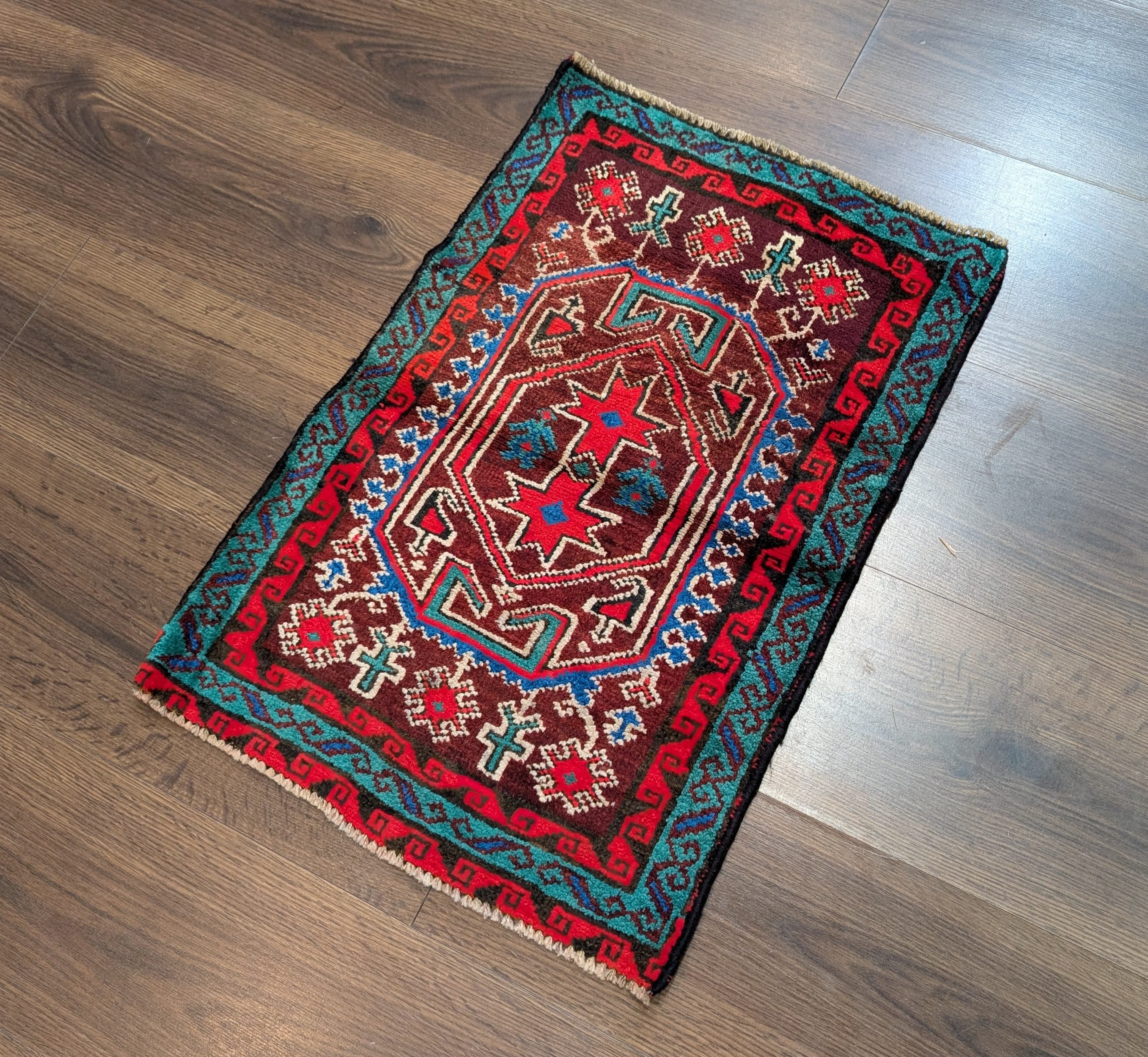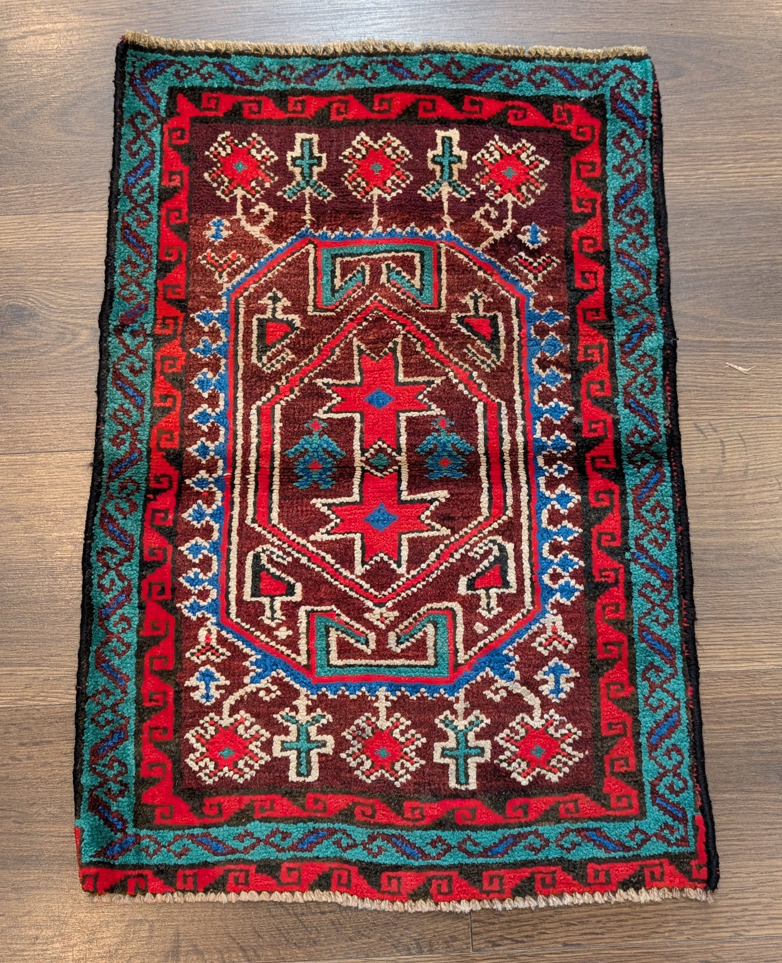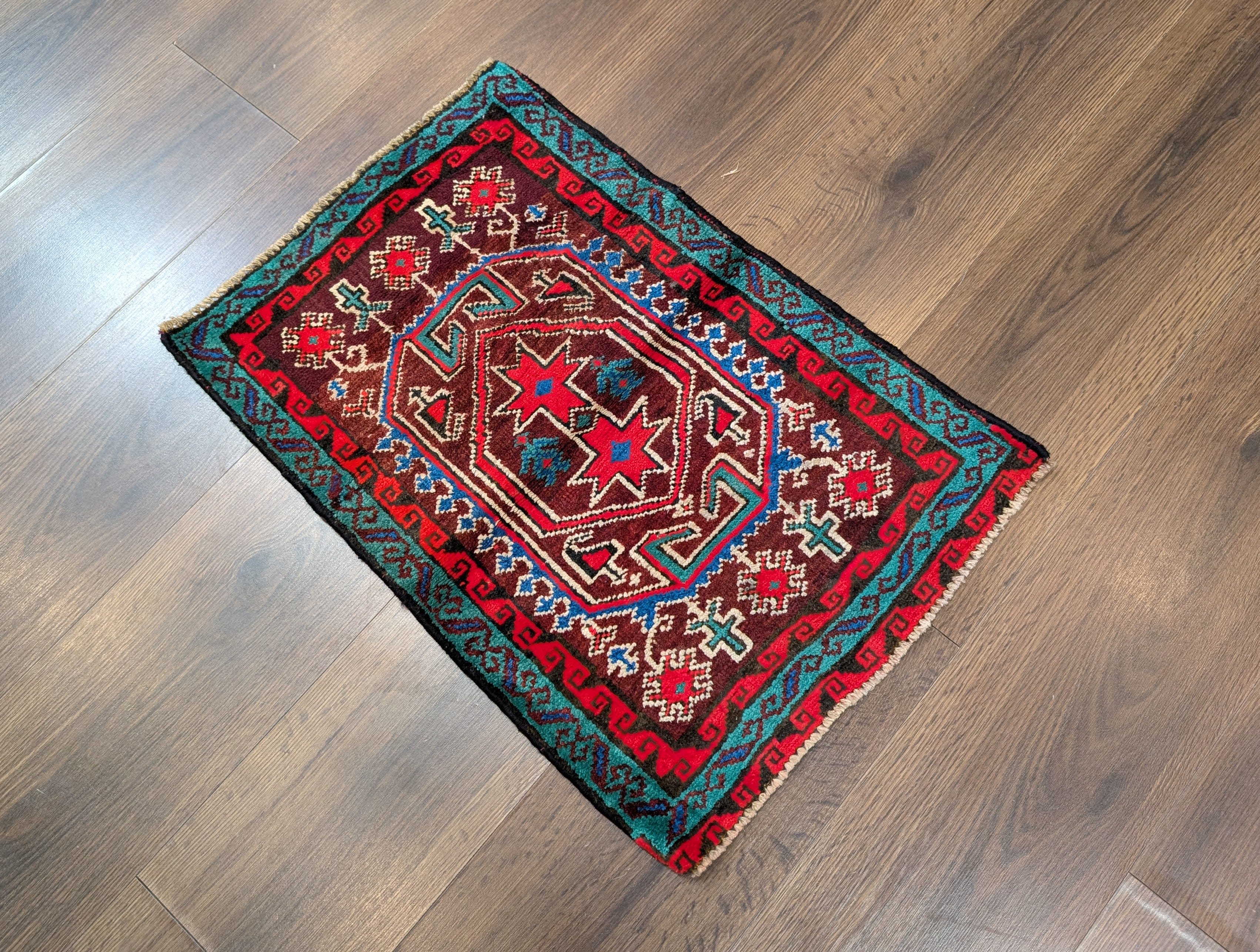 Small Persian Tribal Rug, Wool, Geometric