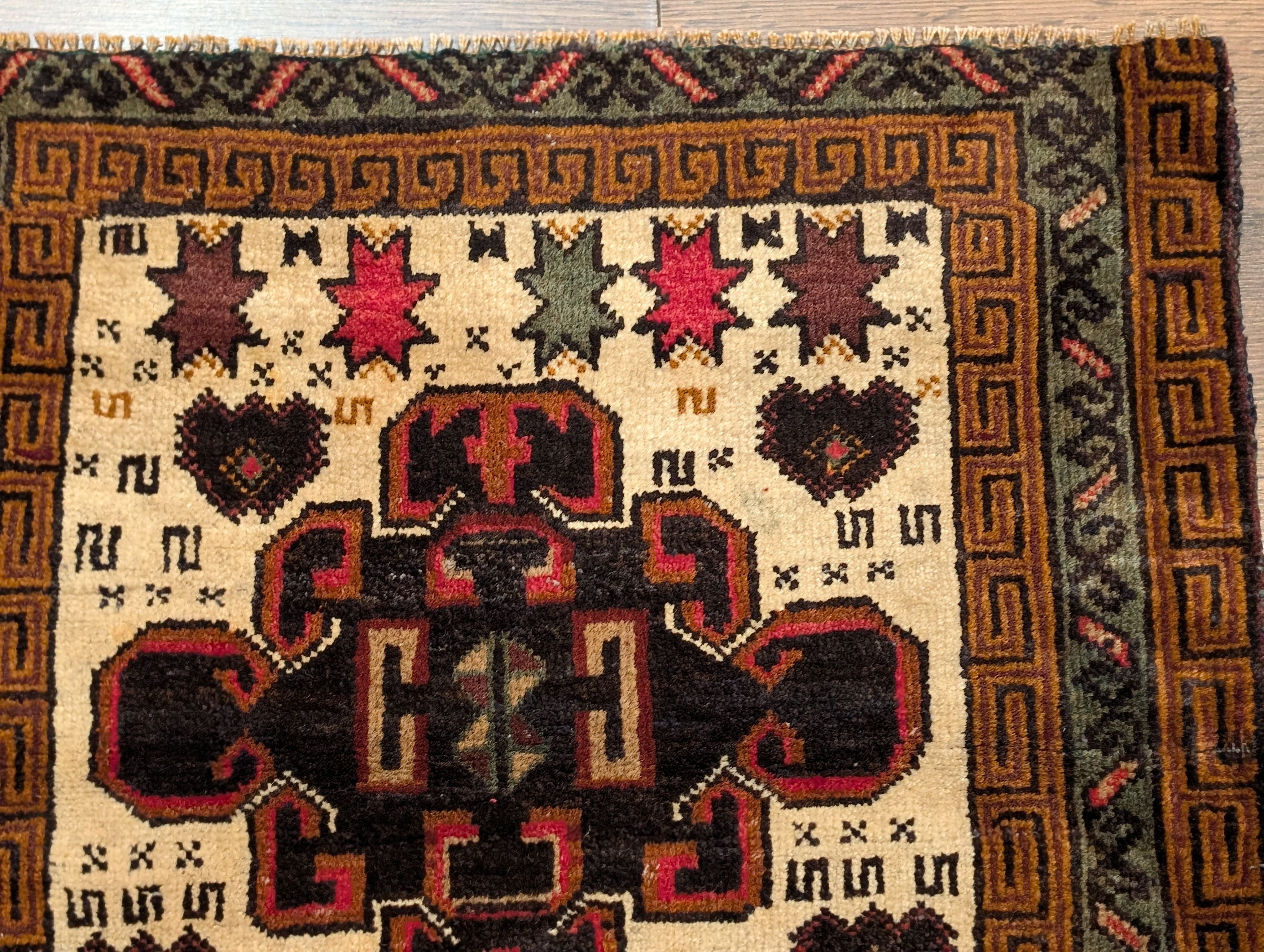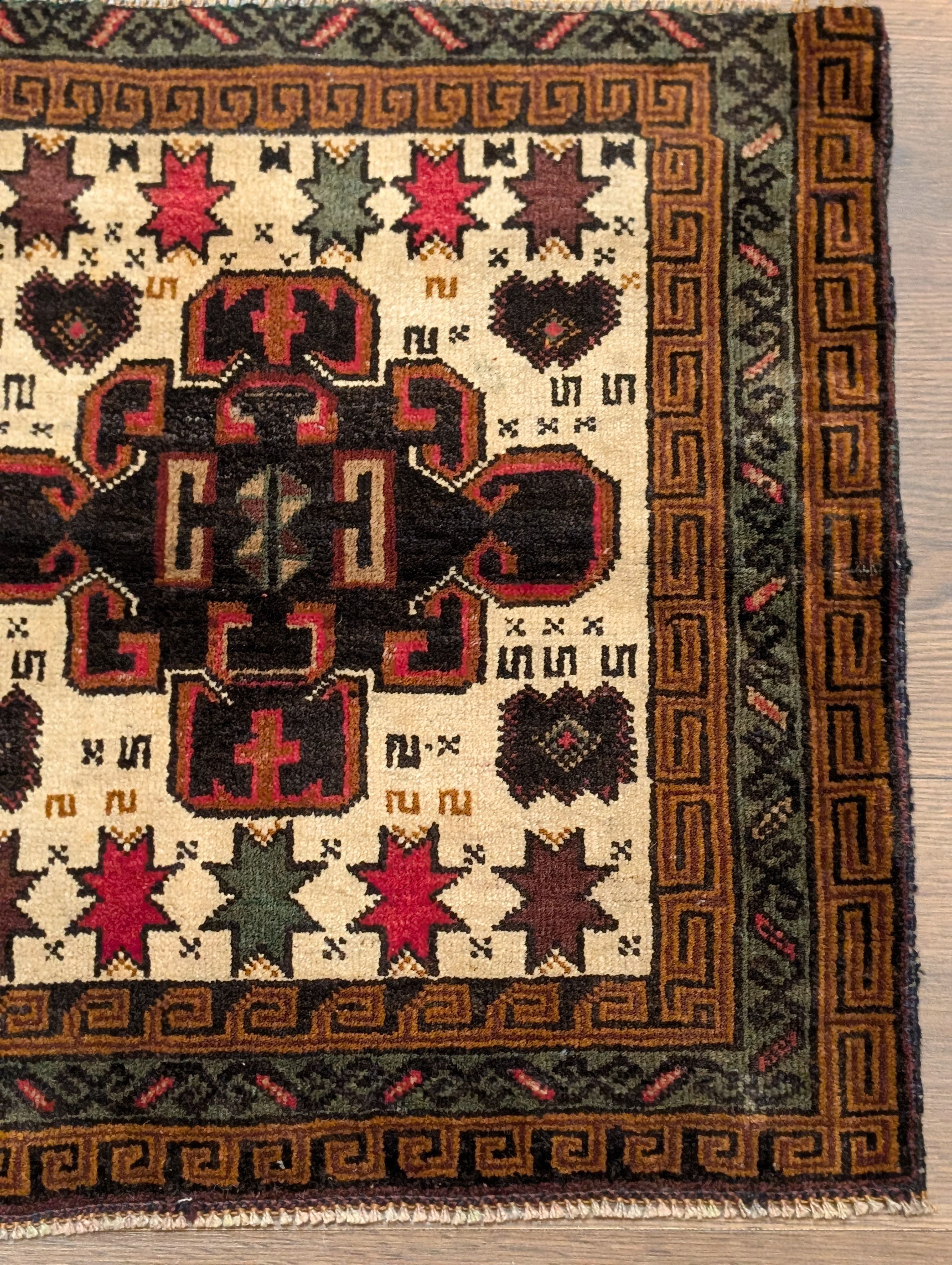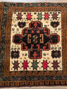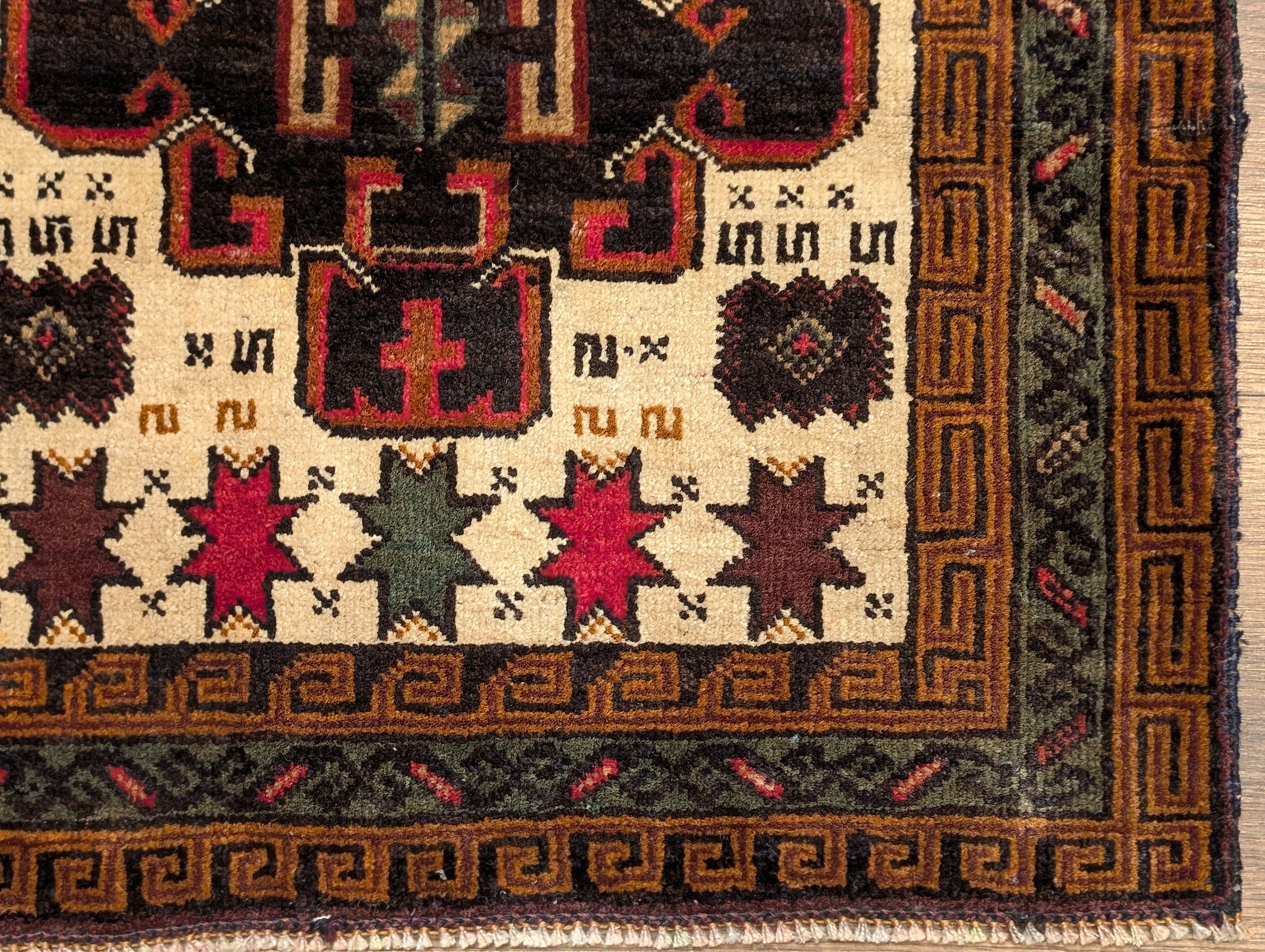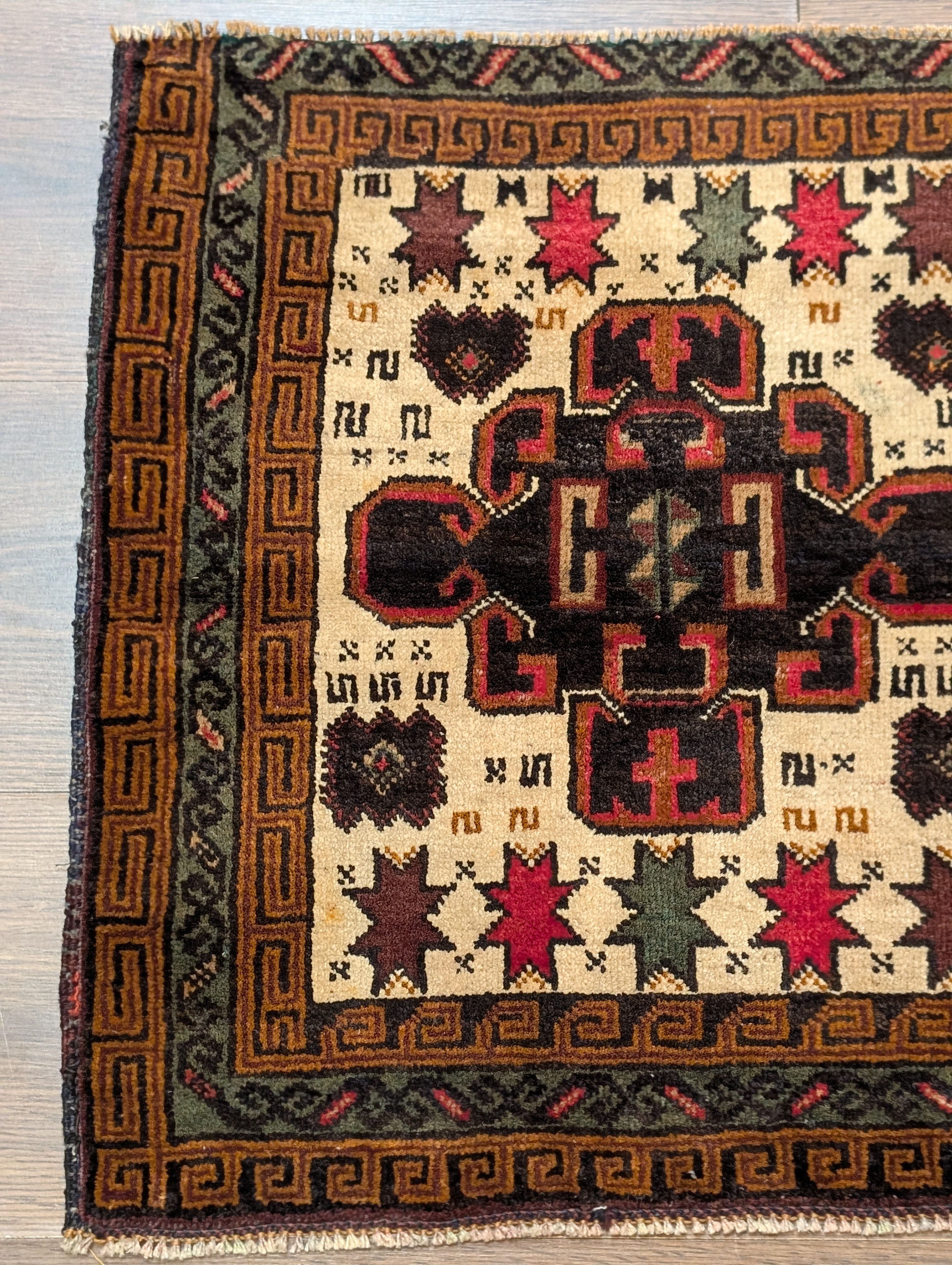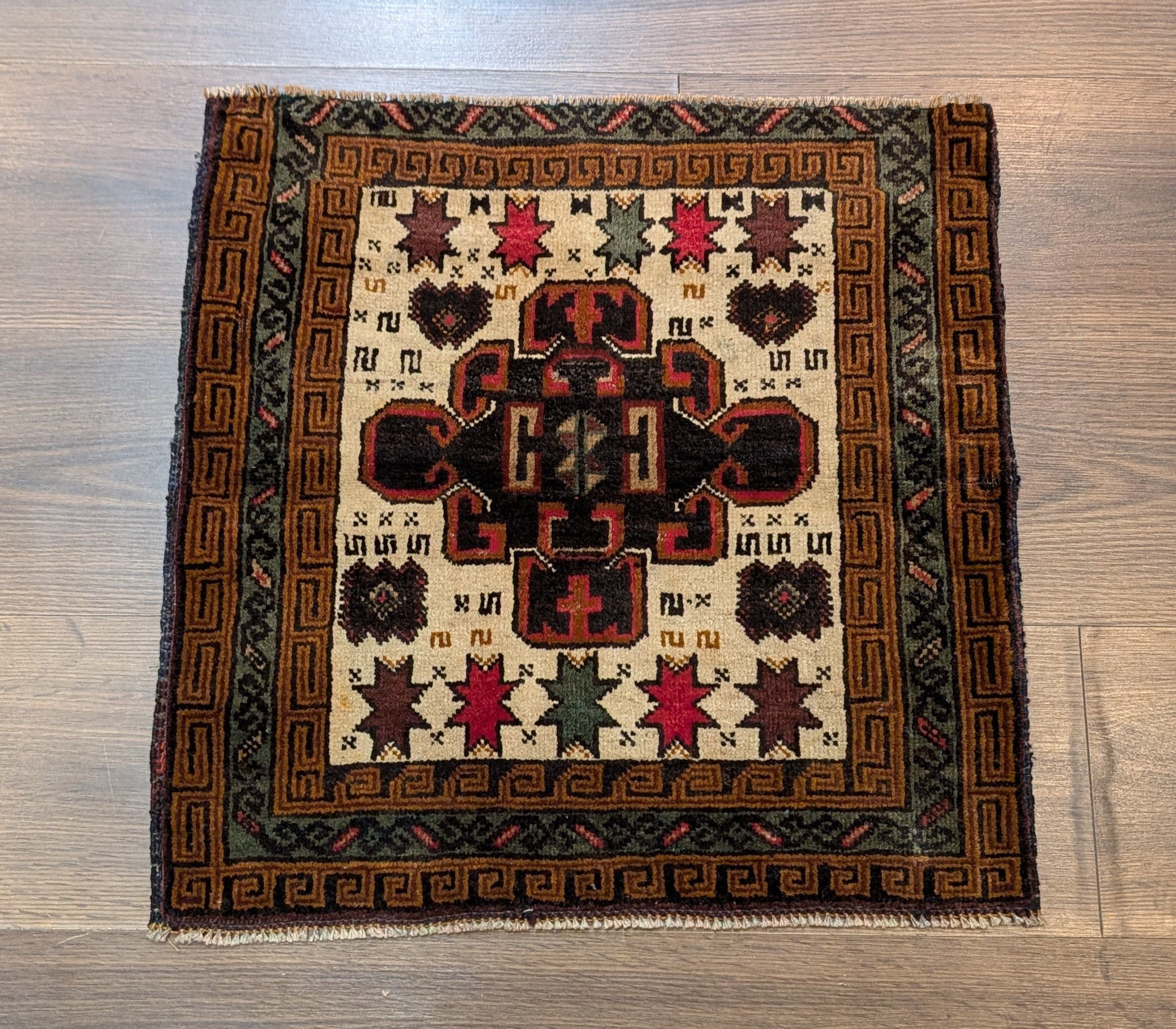 Small Square Persian Tribal Rug 2x2, Geometric Medallion and Stars, Unique, Handmade, New Baluch Rug