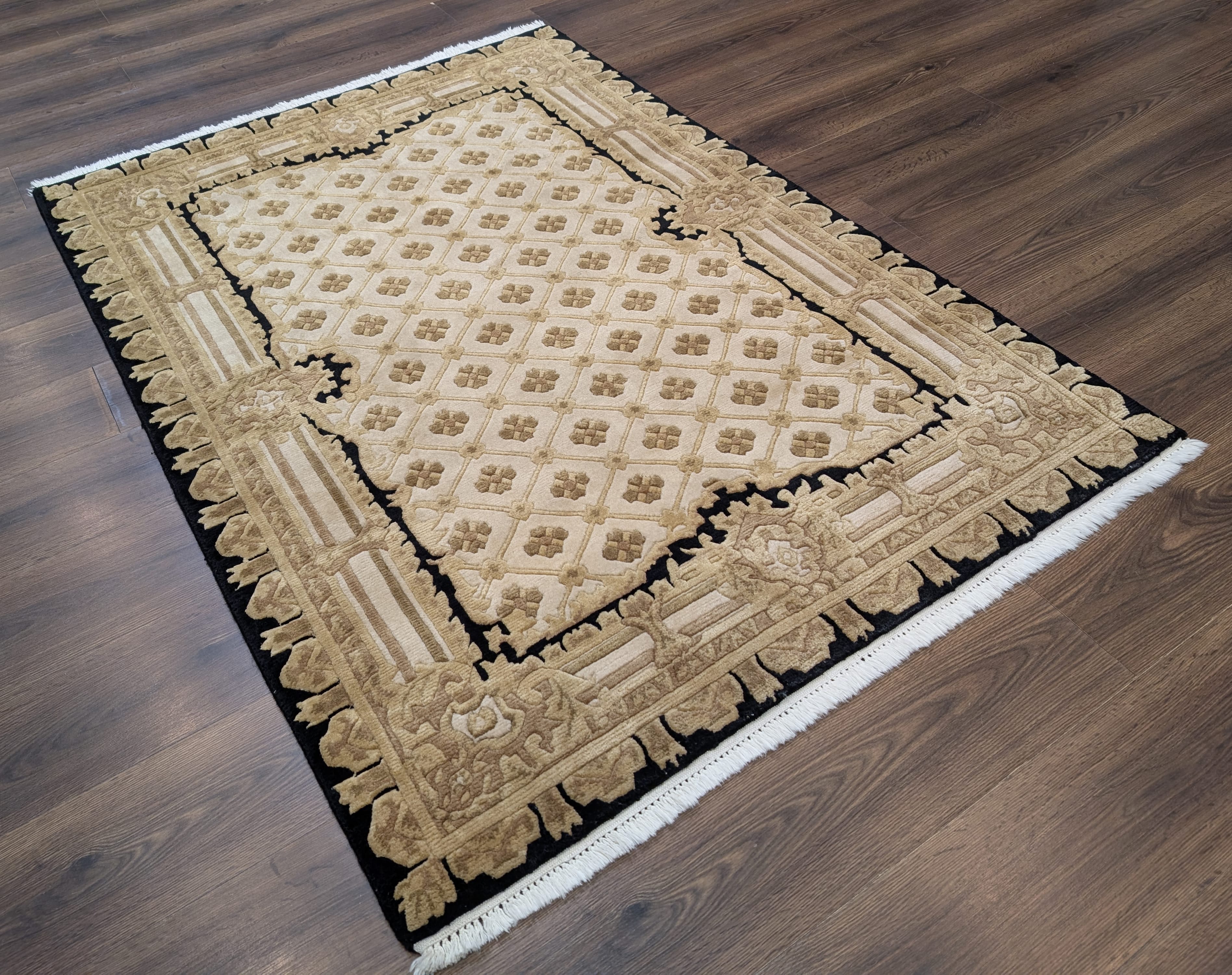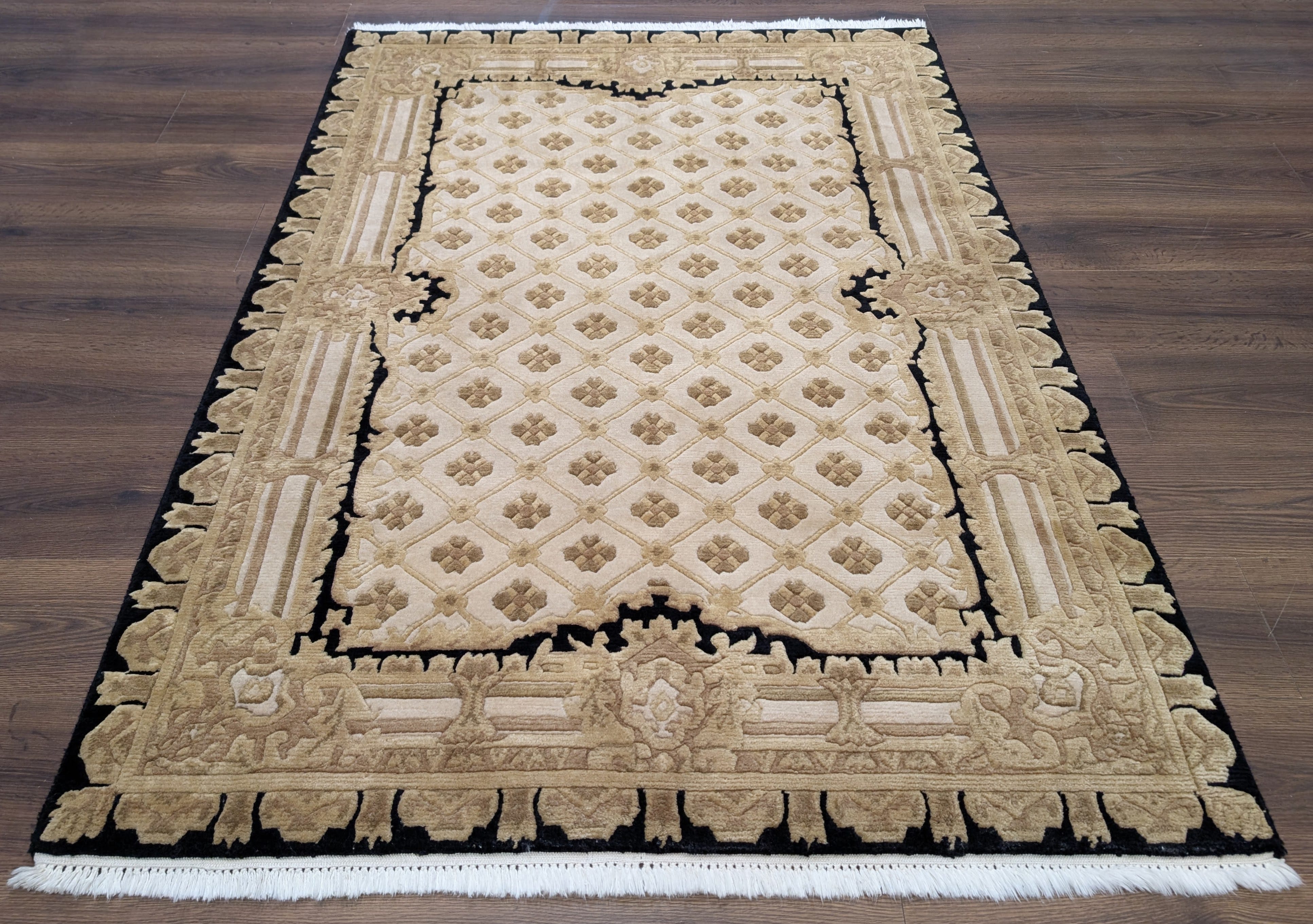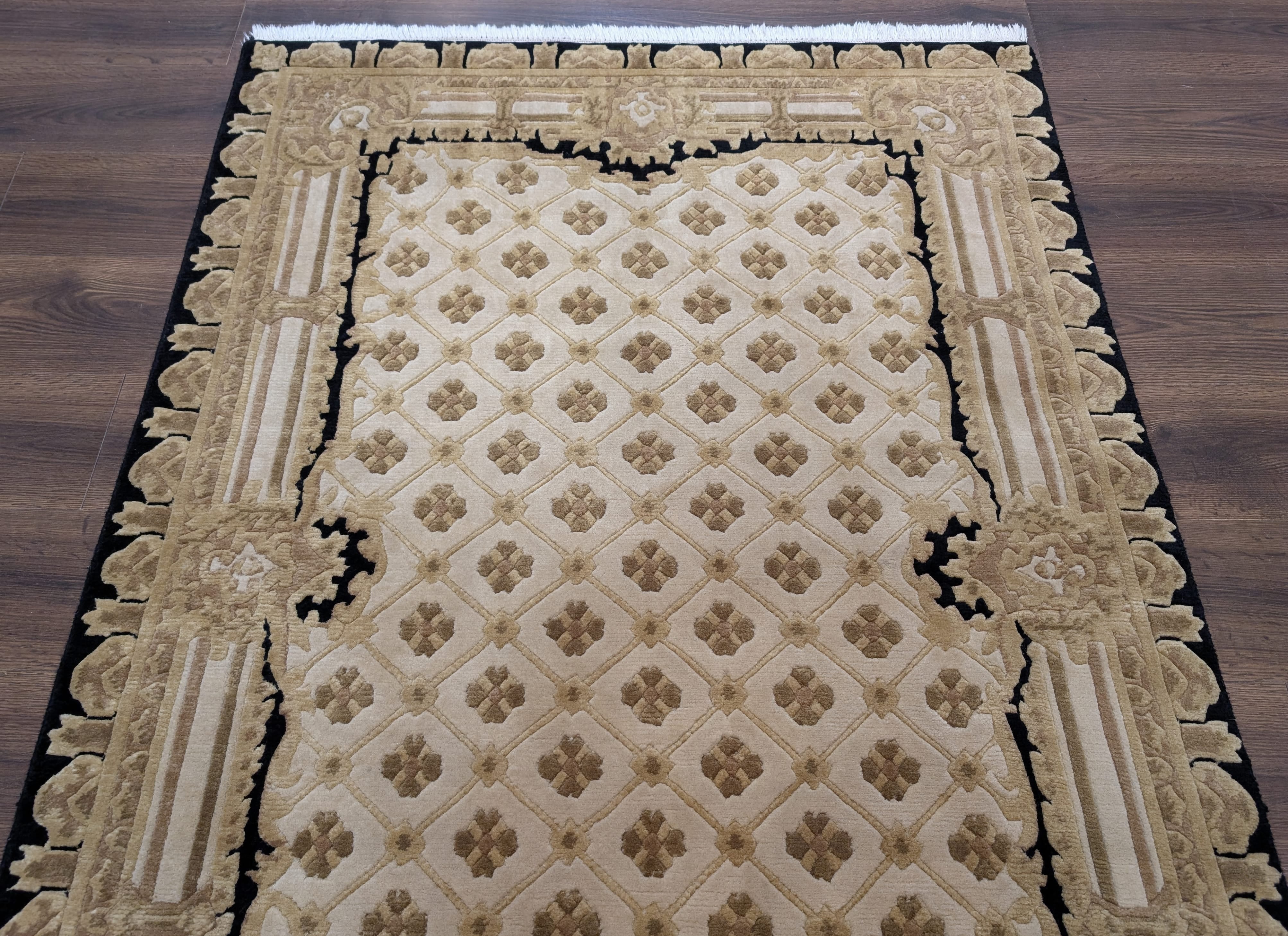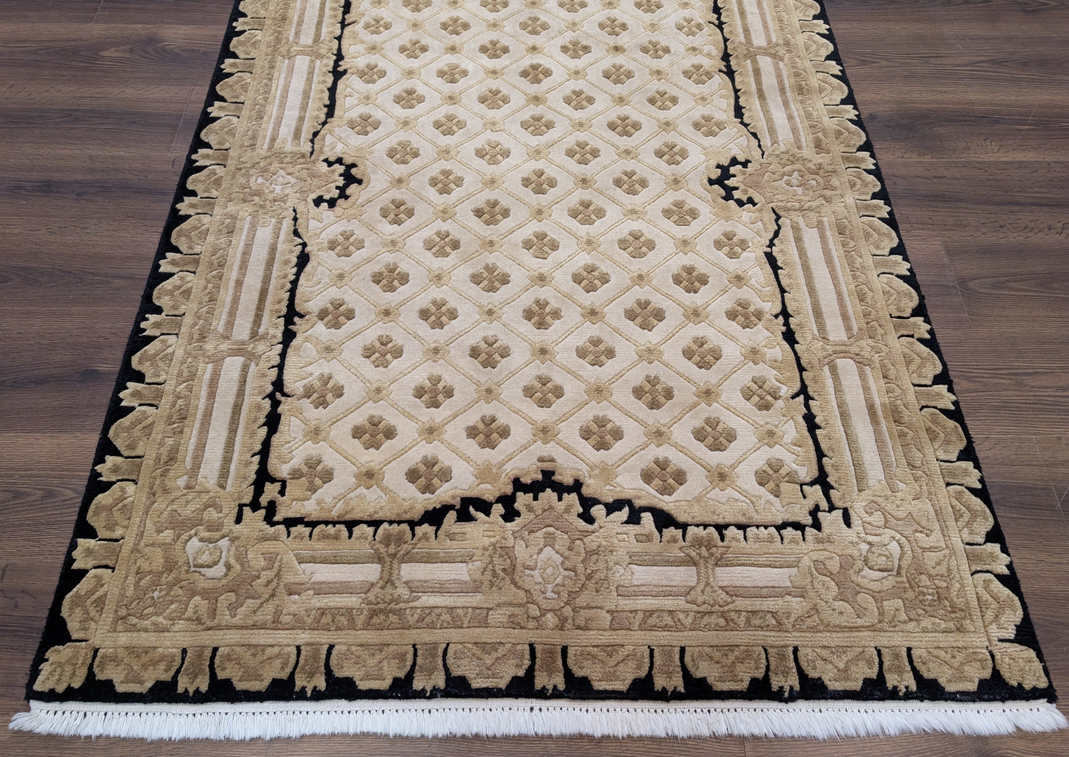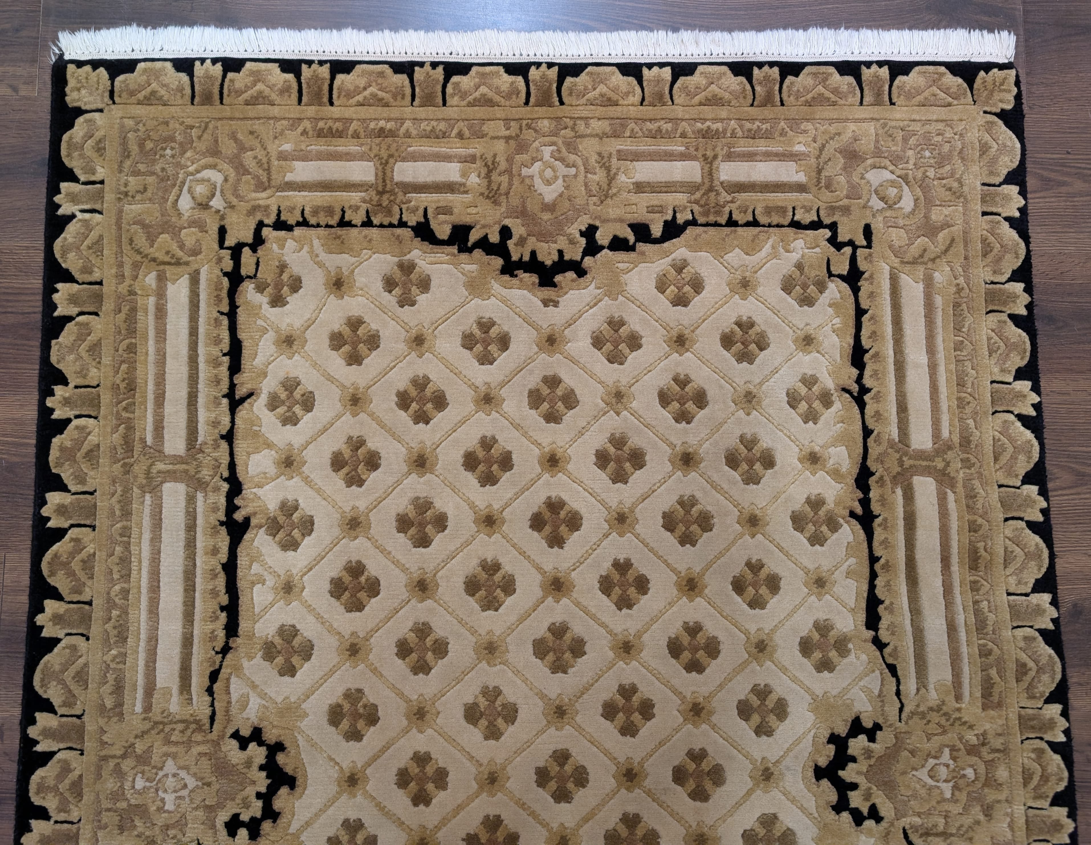 Tibetan Rug 4x6, Beige, Wool, Hand Knotted, Thick Pile