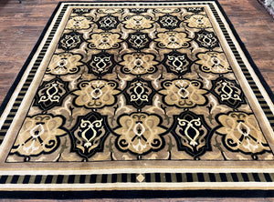Tibetan Rug 8x10, Handmade Wool 8 x 10 Room Sized Area Rug, Black Tan Carpet, Contemporary Rug
