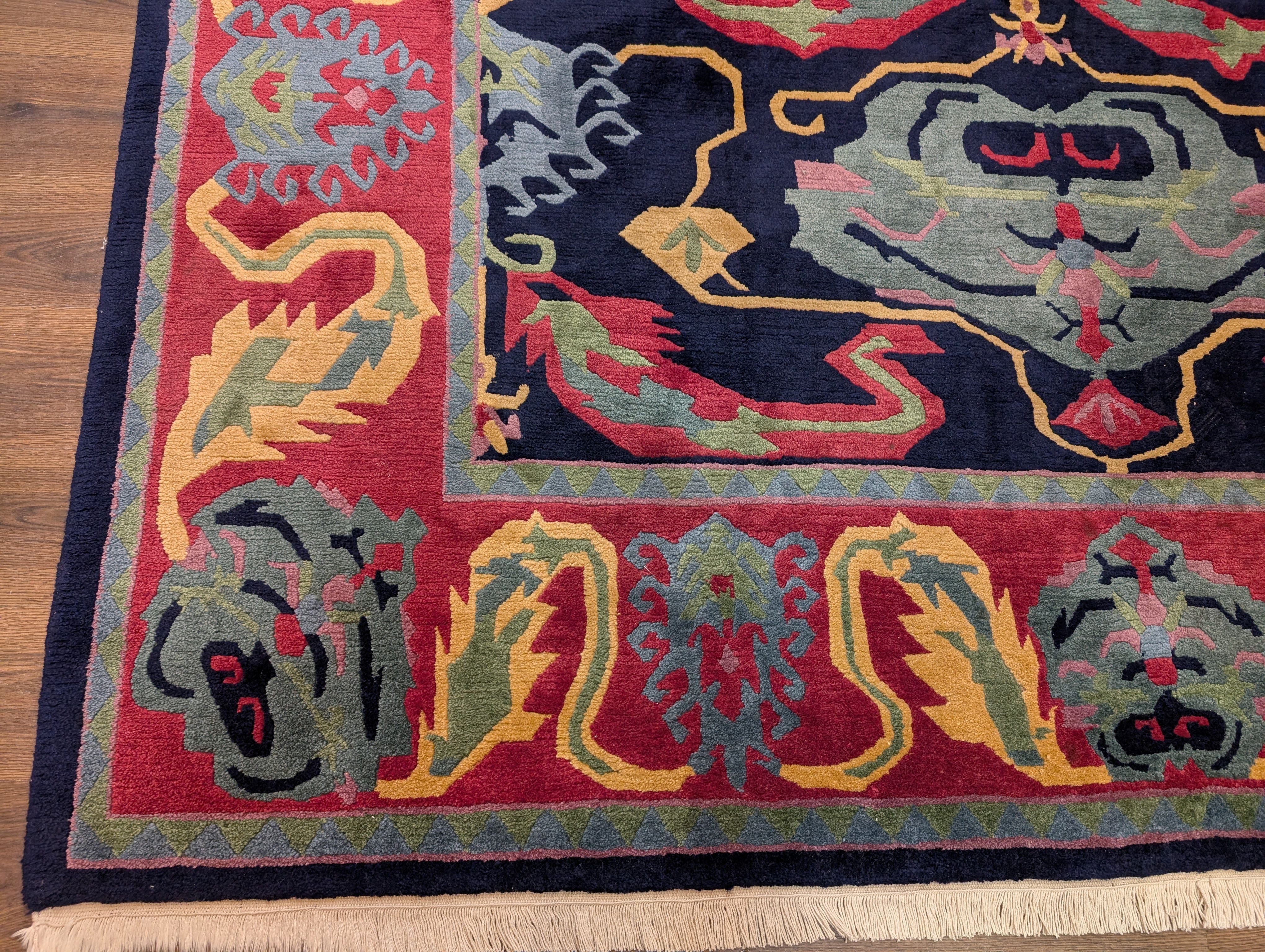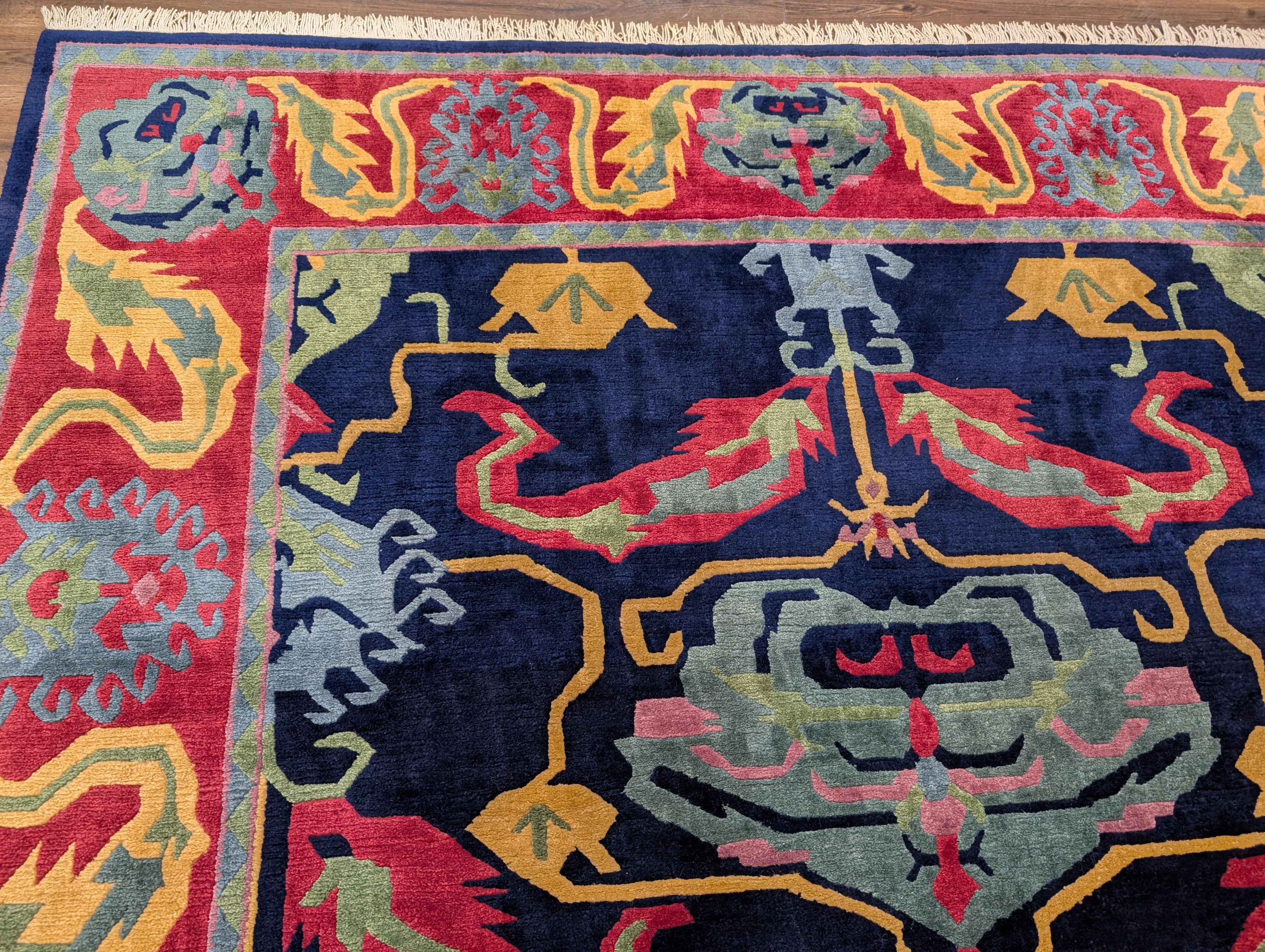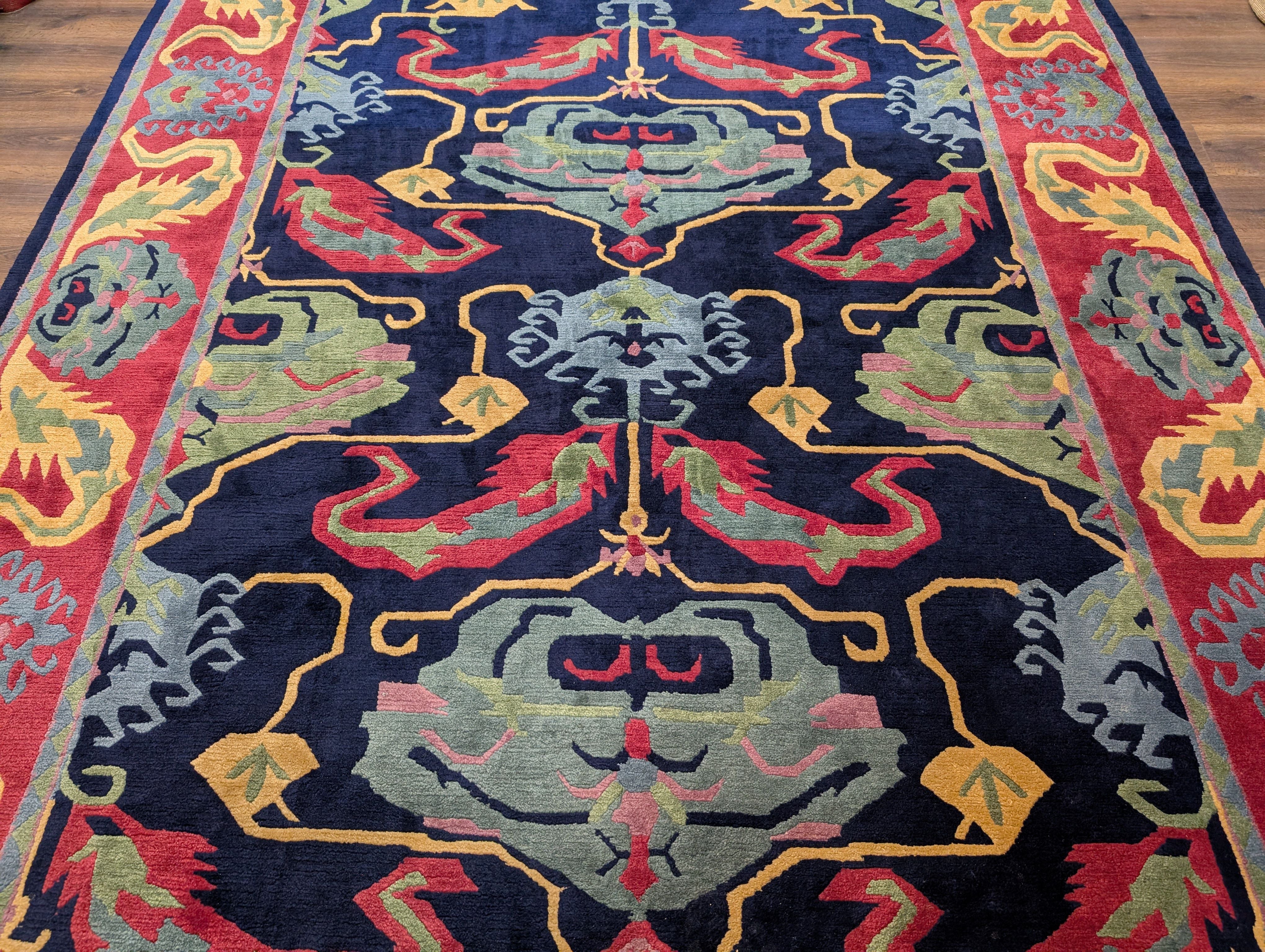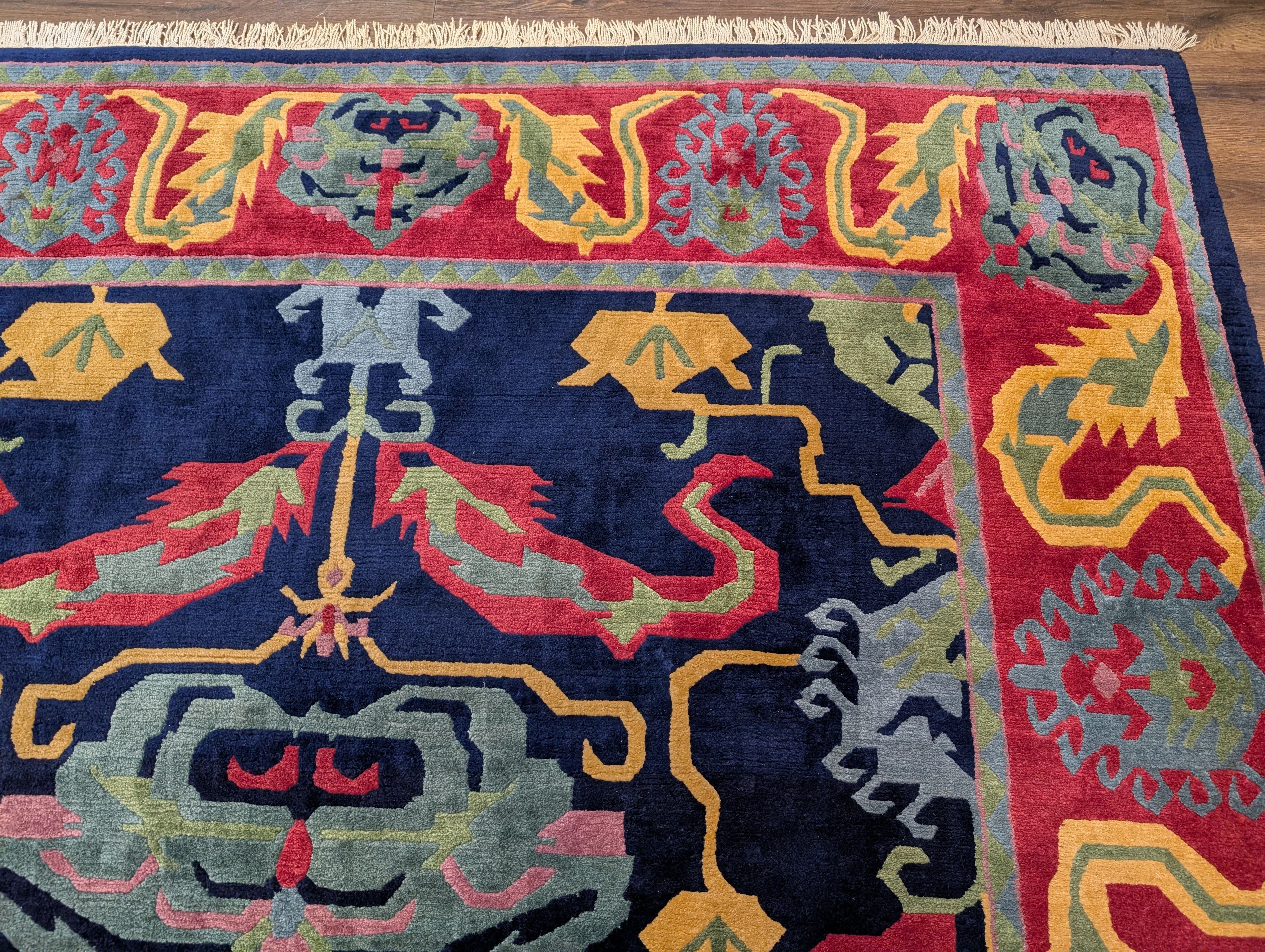 Tufenkian Rug 9x12, Navy Blue and Red, Colorful, Tibetan - Nepali Rug, Thick Wool Pile, Handmade