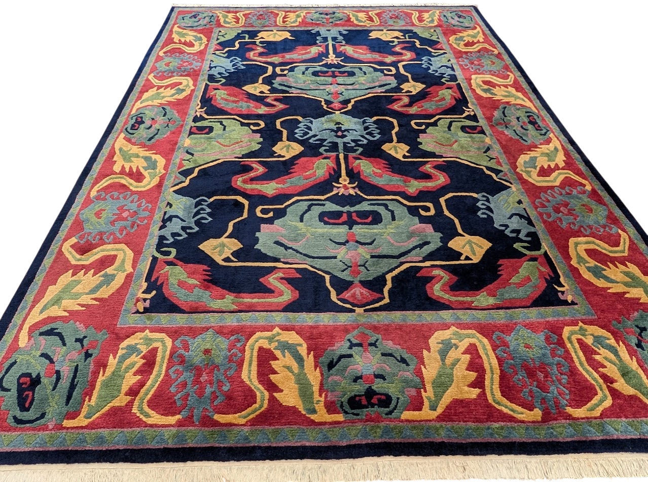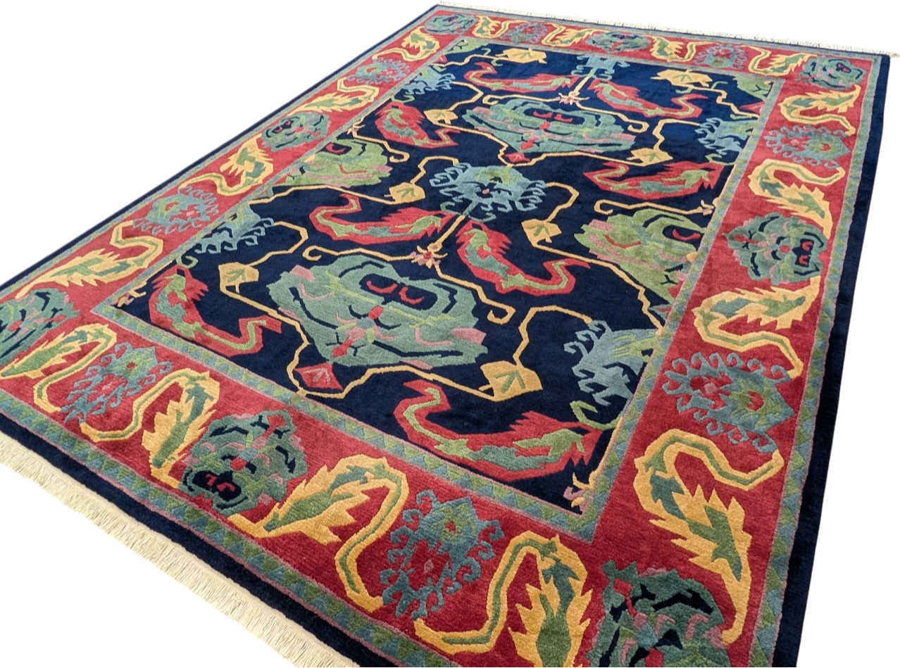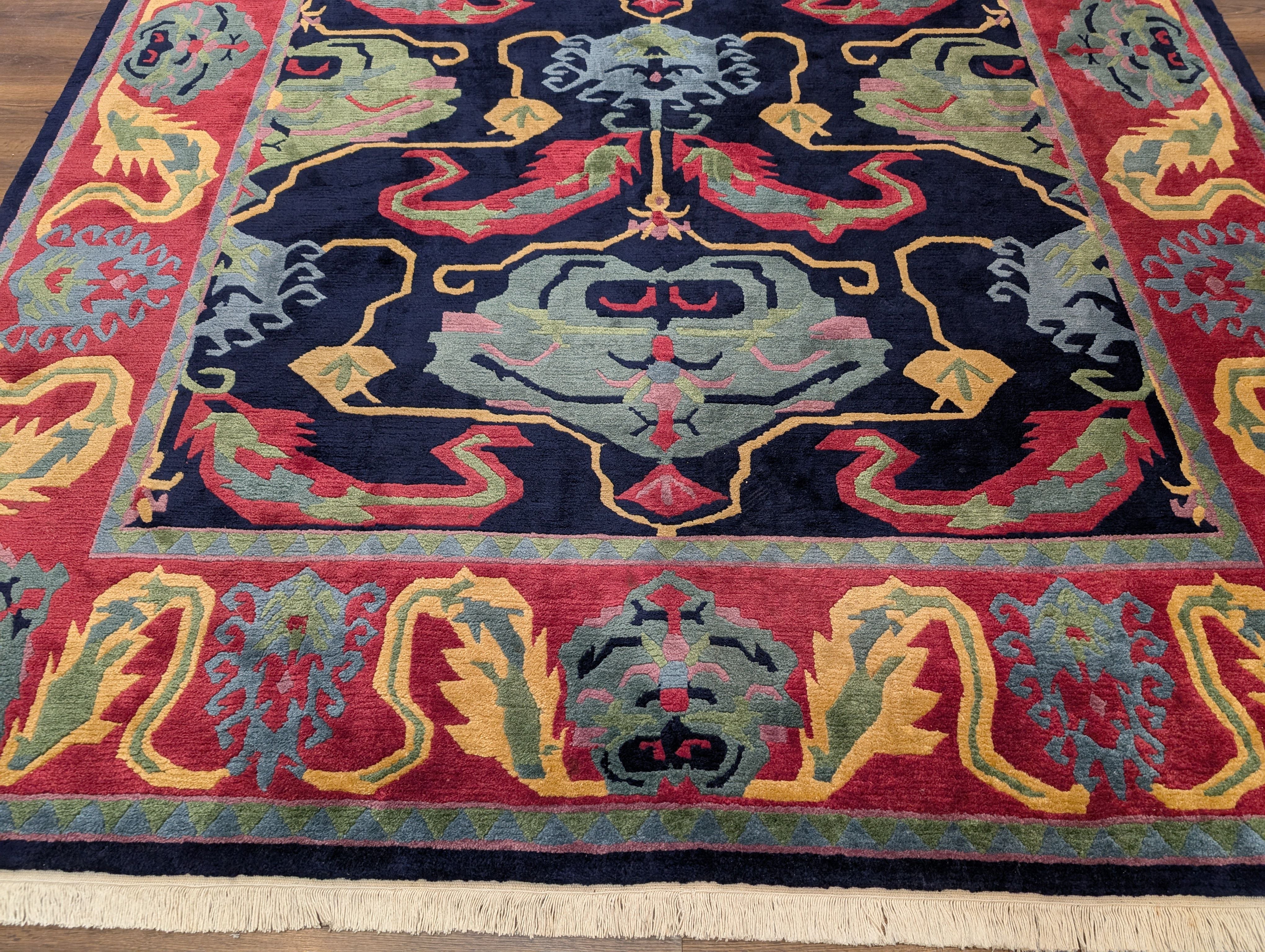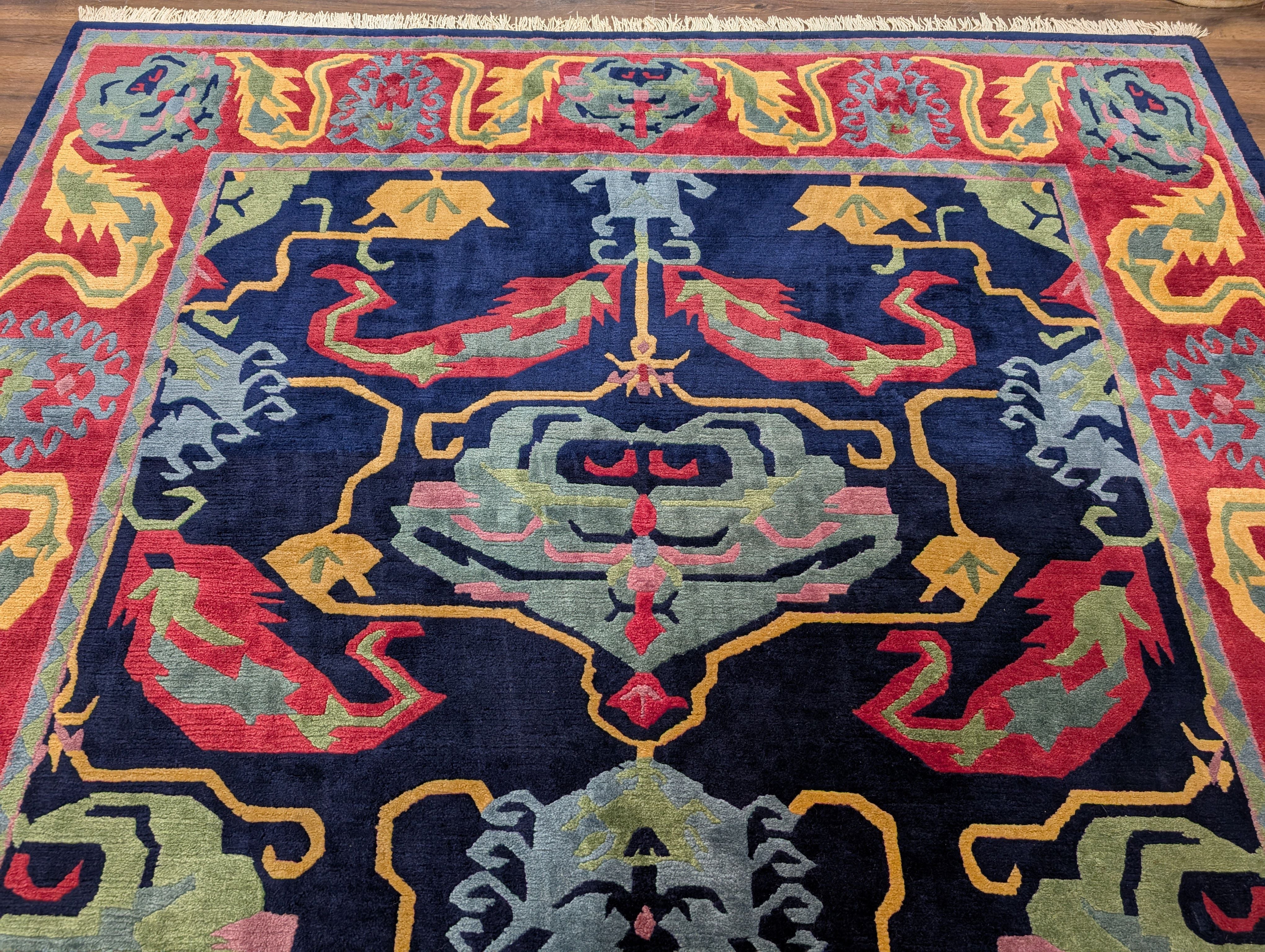 Tufenkian Rug 9x12, Navy Blue and Red, Colorful, Tibetan - Nepali Rug, Thick Wool Pile, Handmade