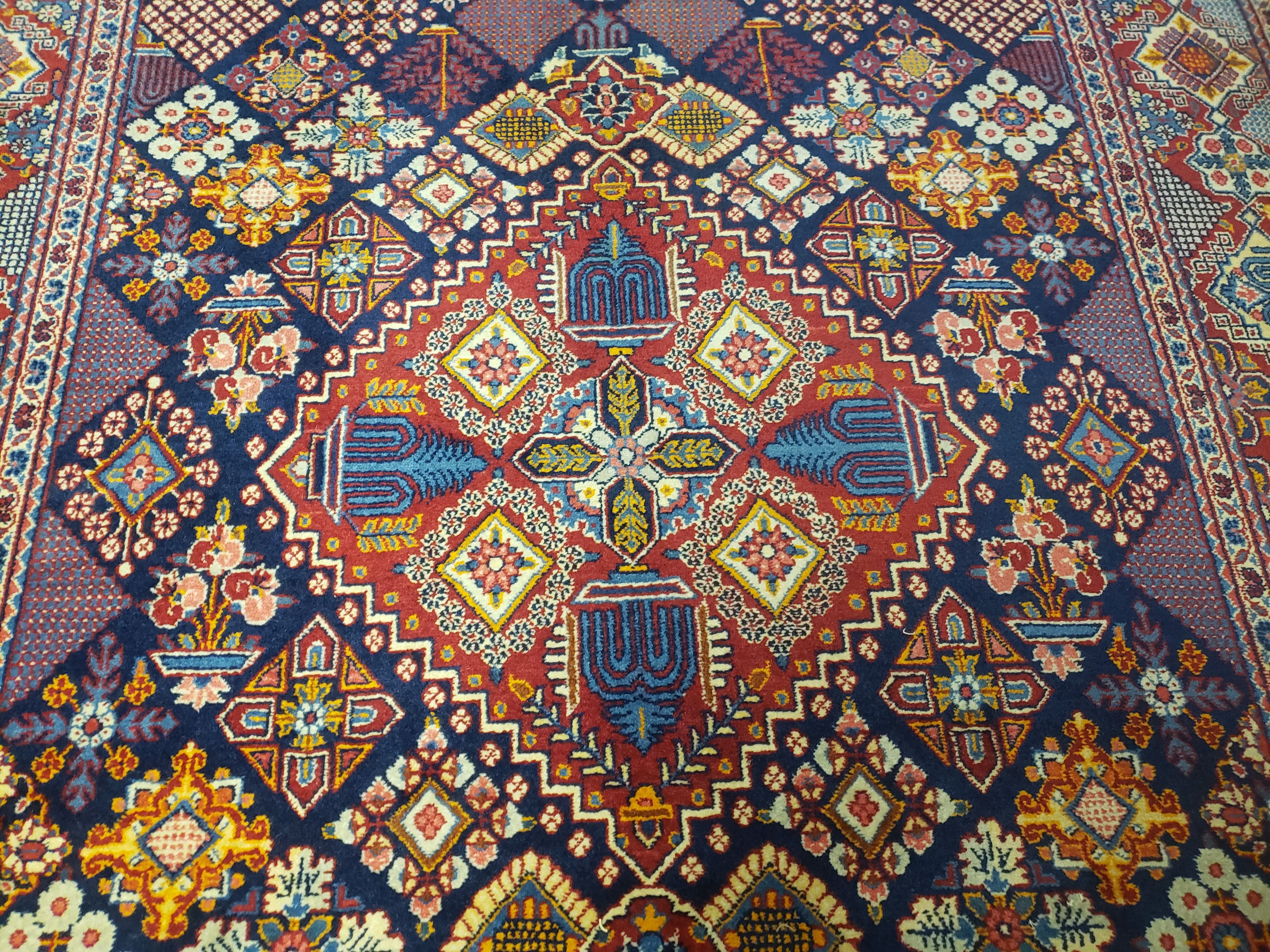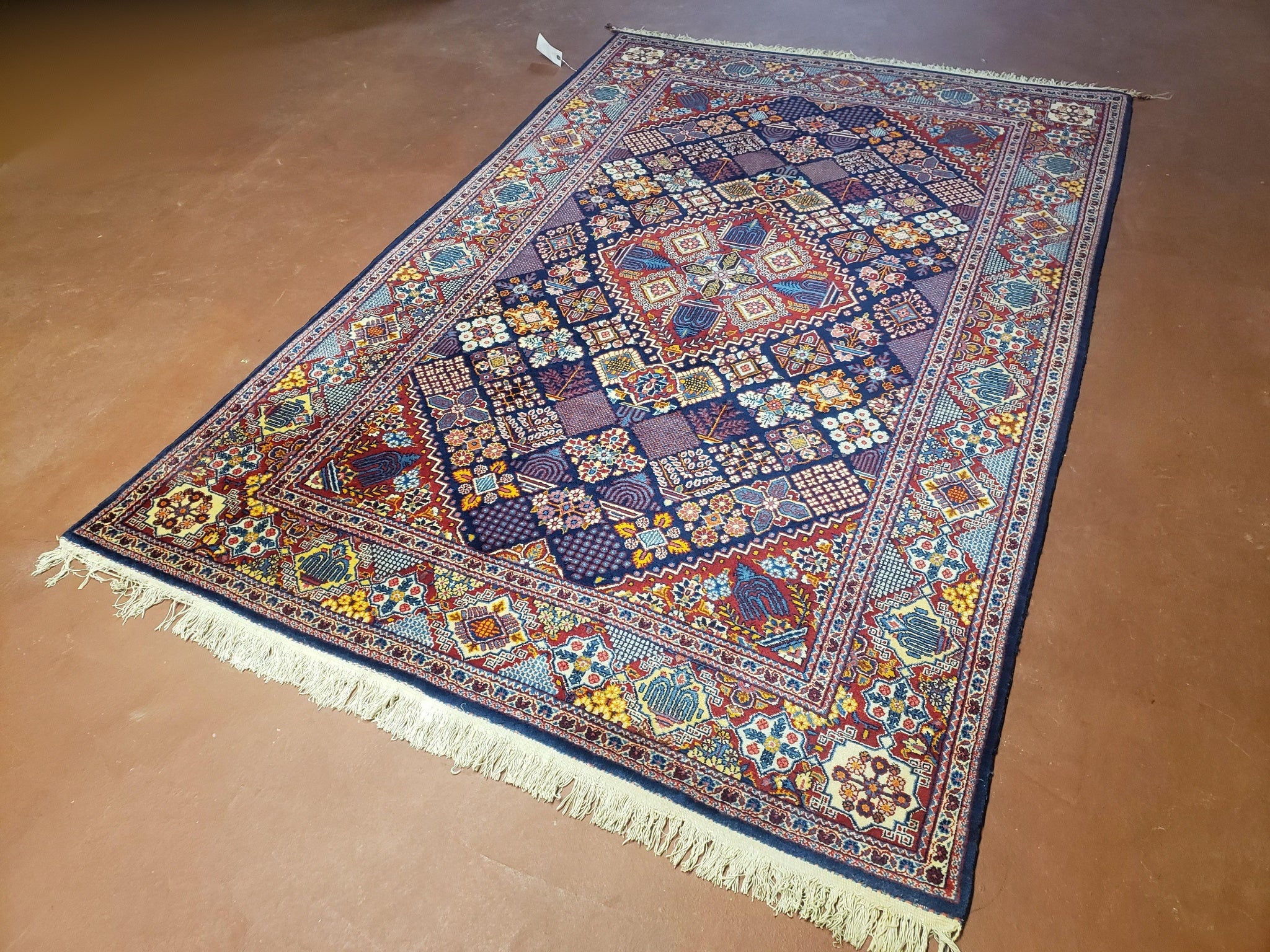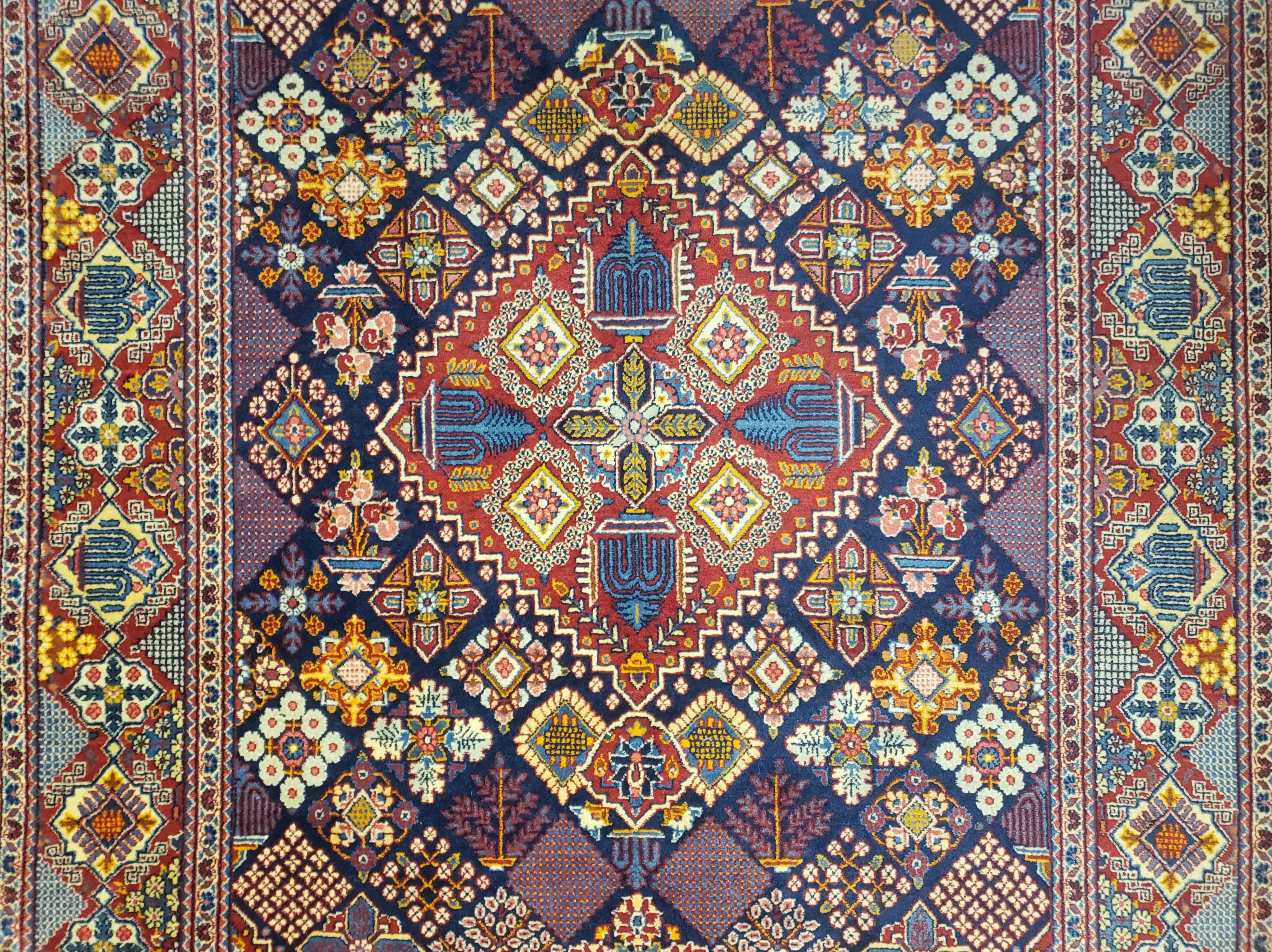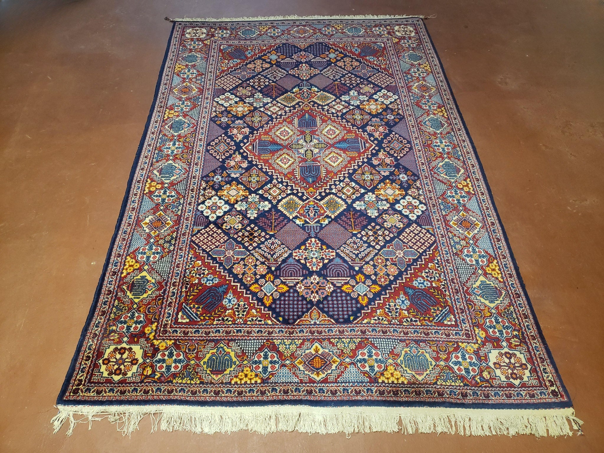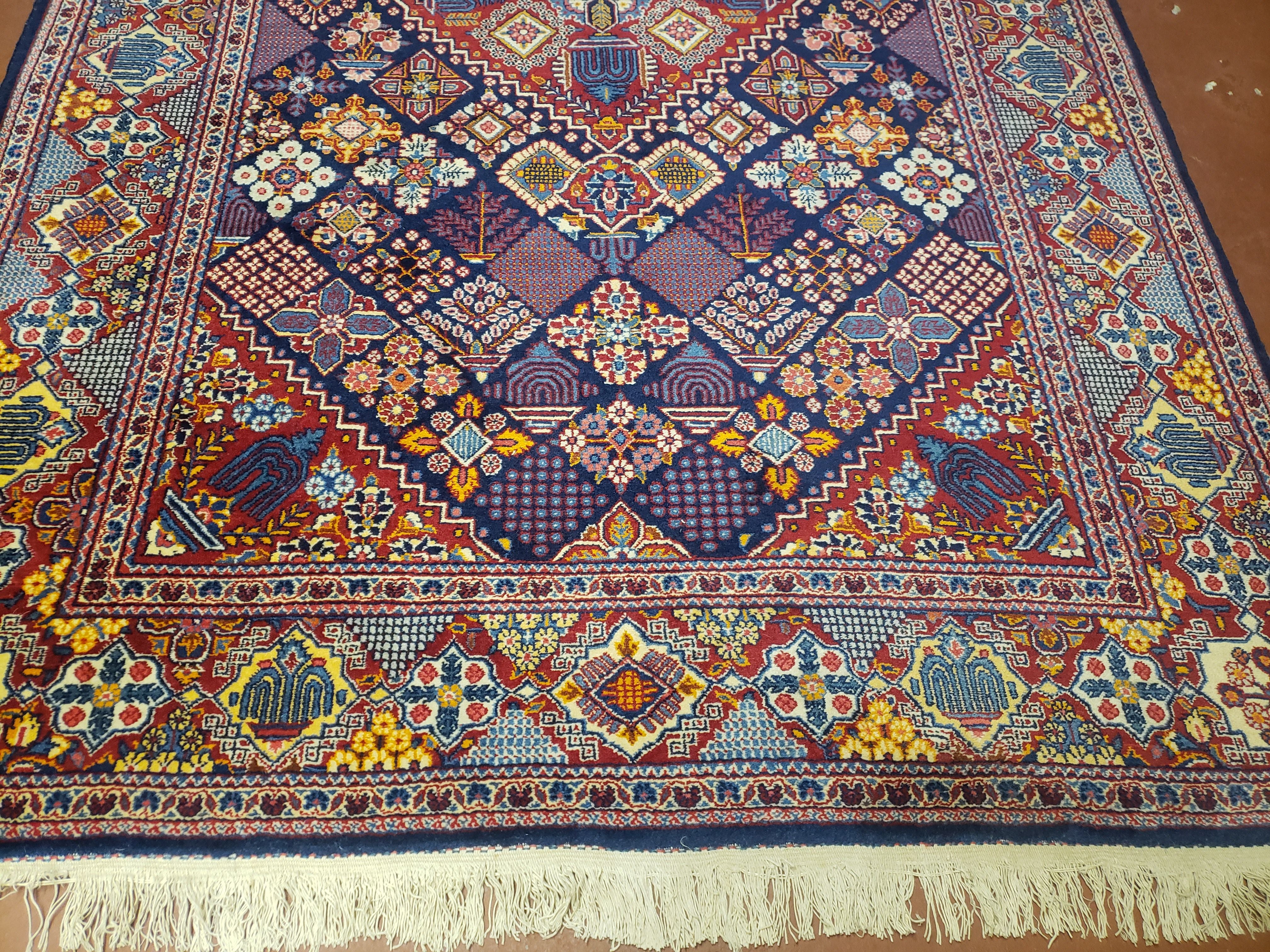 Wonderful Persian Kashan Rug 5x7, Dark Blue, Multicolor Panel Design, Wool Hand Knotted